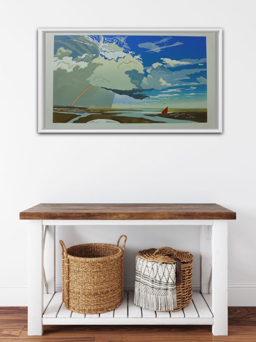 Colin Moore Holkham Weather Limited Edition of 150 works. The work has been made in a 3 Block Colour Linocut Print. The Image Size: H 45cm x W80cm Sheet Size: H 57cm x W 90cm The work is sold unframed (Please note that in situ images are purely an indication of how