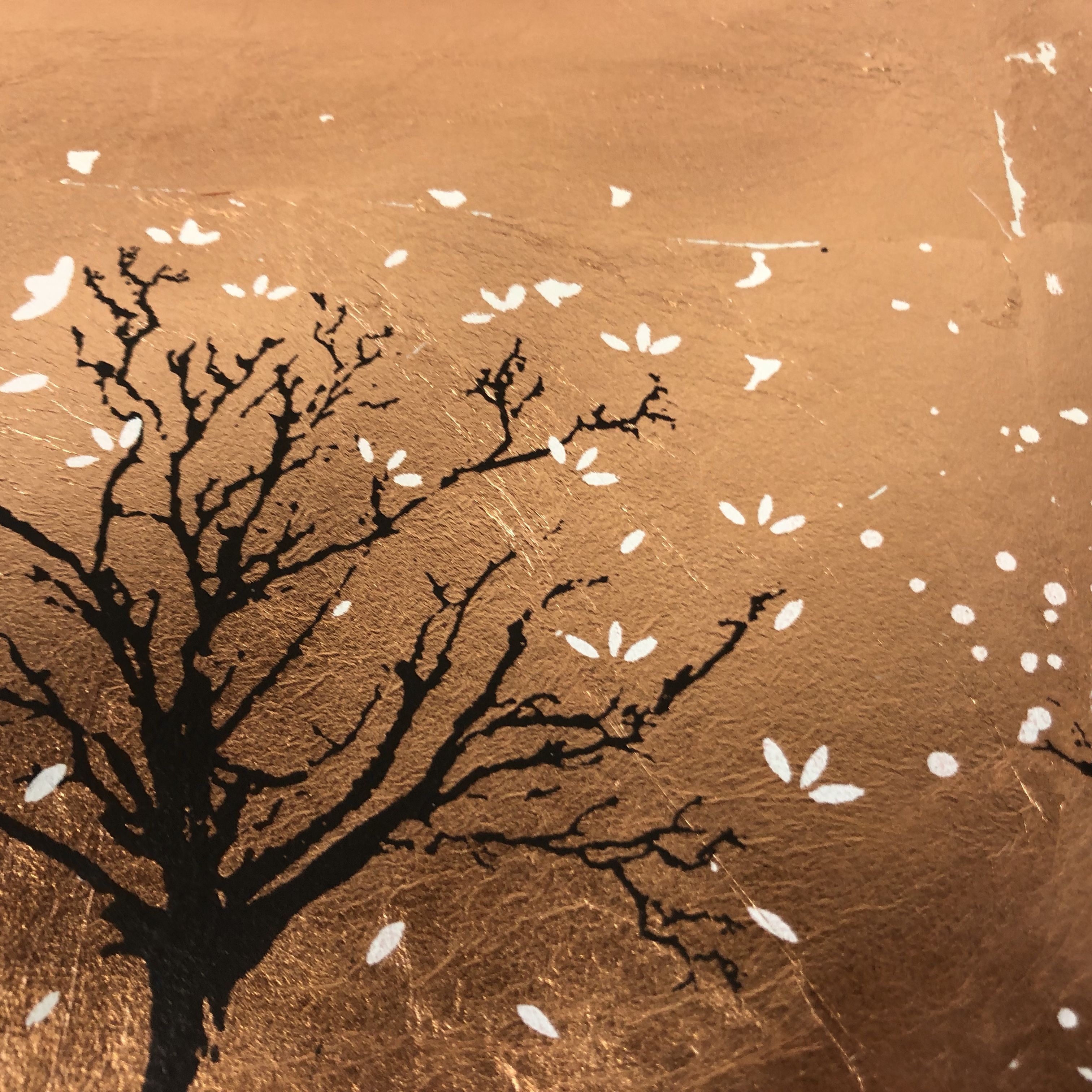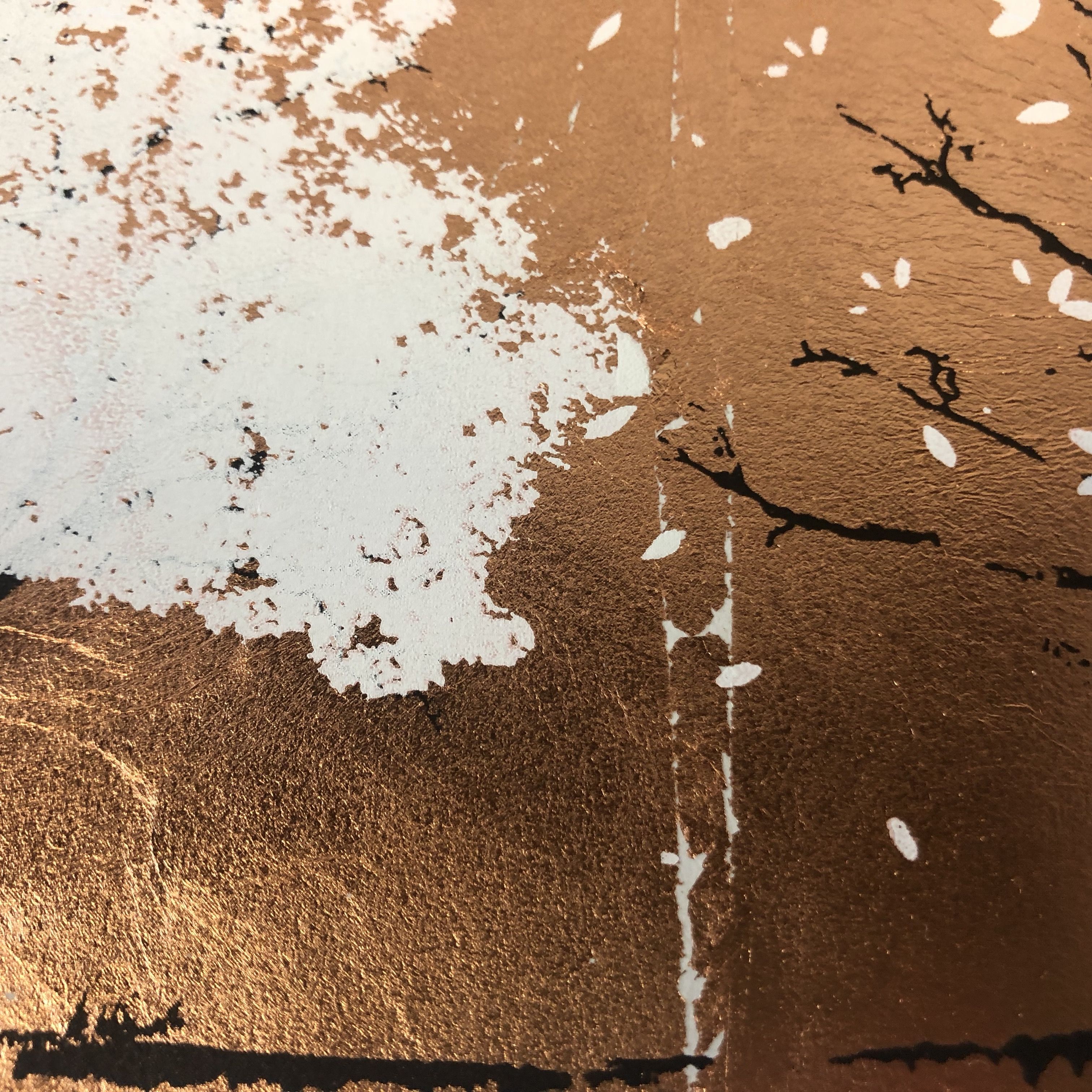 THIS WORK IS NOW OUT OF STOCK. PLEASE SEE OTHER WORKS BY KATIE EDWARDS. Copper Seasons, Katie Edwards Limited Edition Original Silkscreen Print of 10 Signed by the artist Mounted Size: H 56cm x W 71cm Image size: H 37cm x W 51.5cm Copper Seasons'Original Handmade Silk Screen Print of