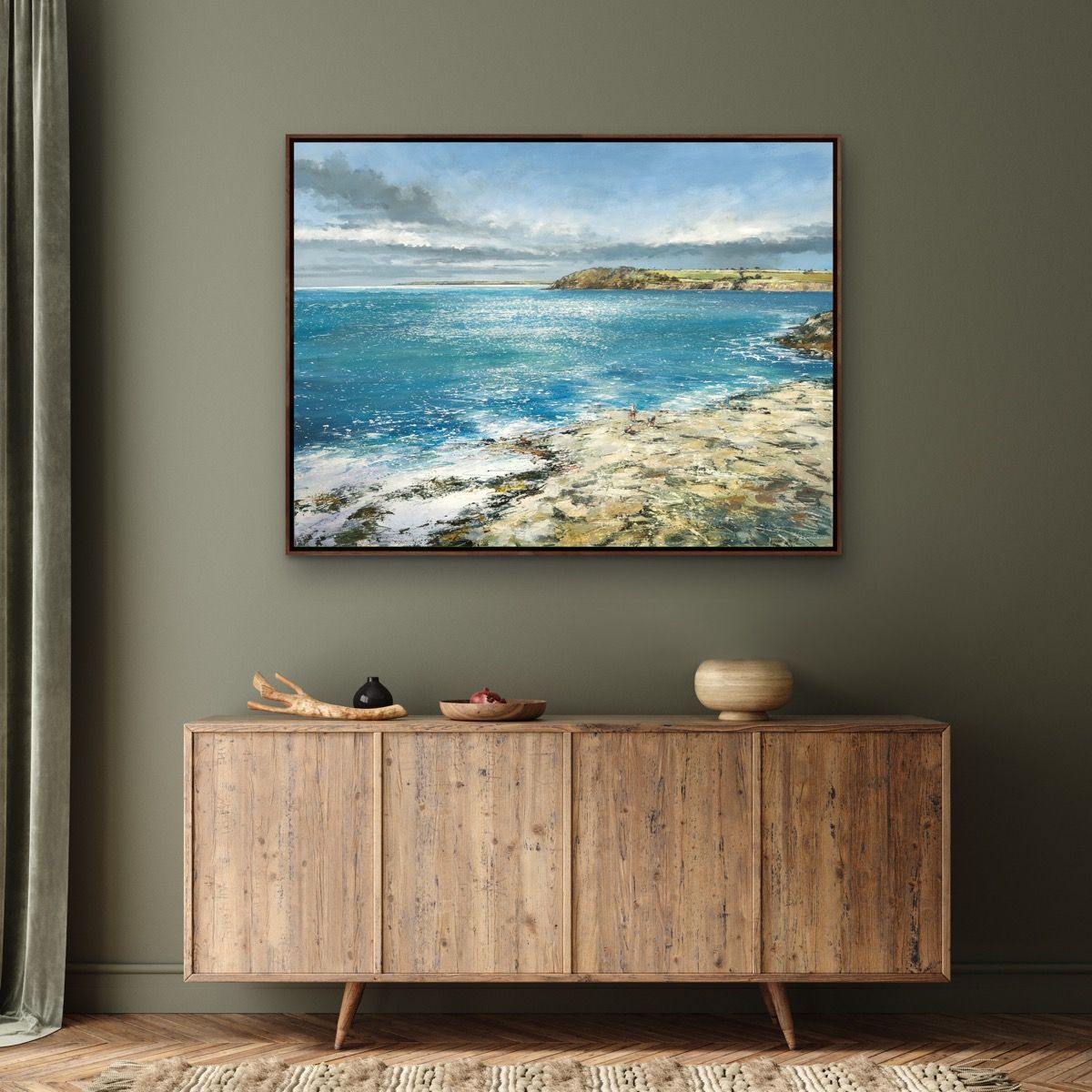 An original mixed-media painting by Michael Sanders. Cornish Headland is 76 x 101 cm deep edge canvas painted around the edges and ready to hang.
