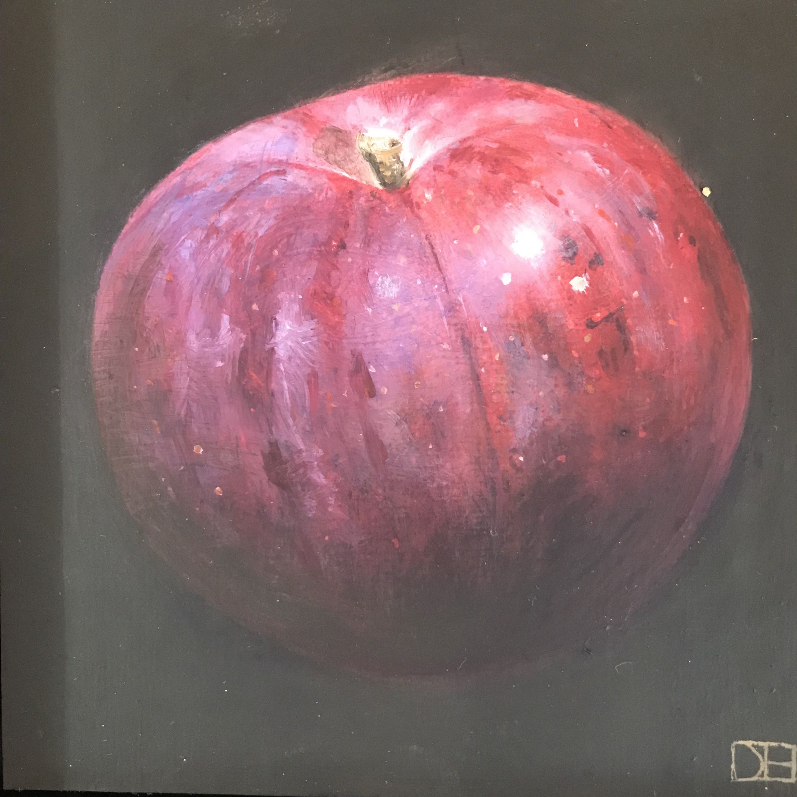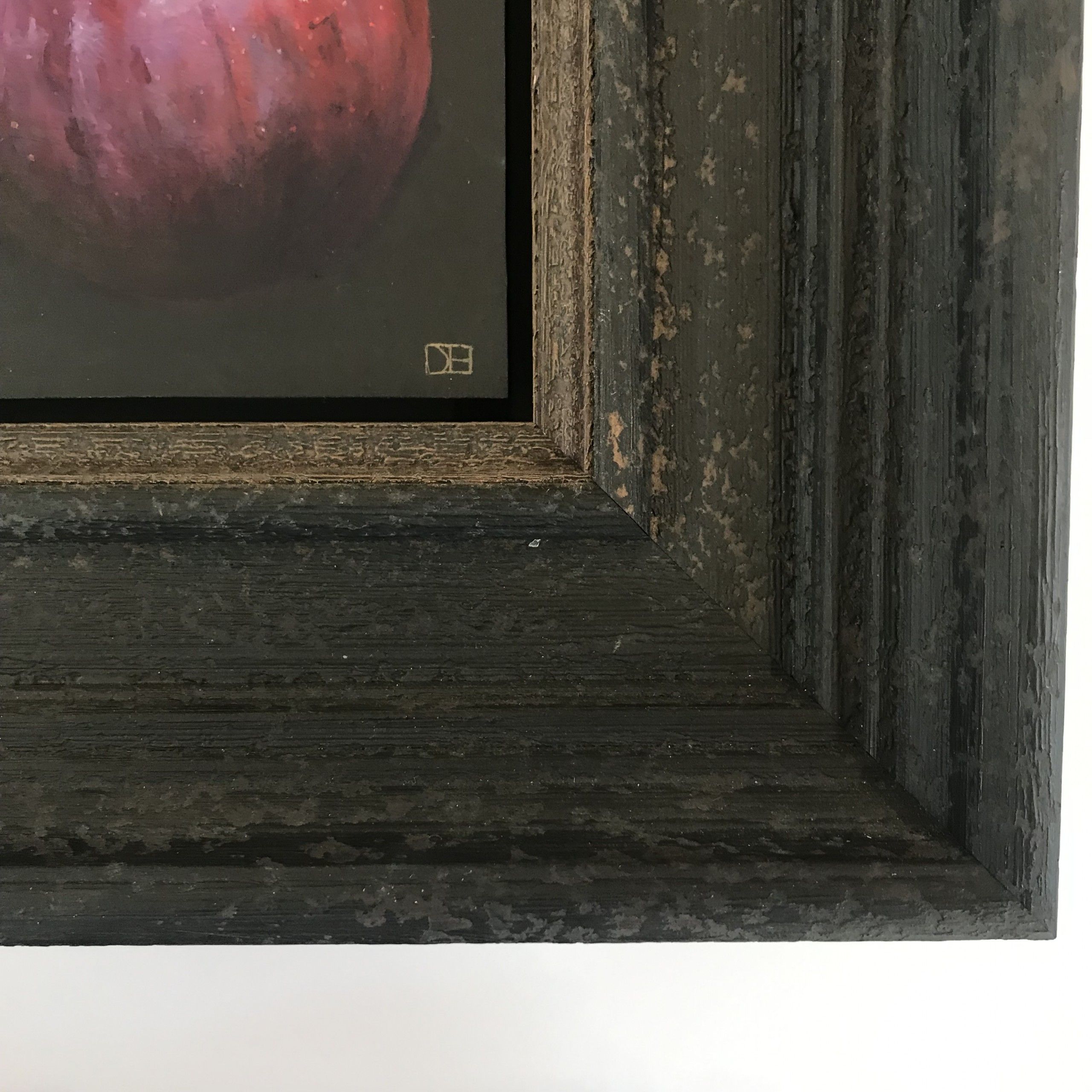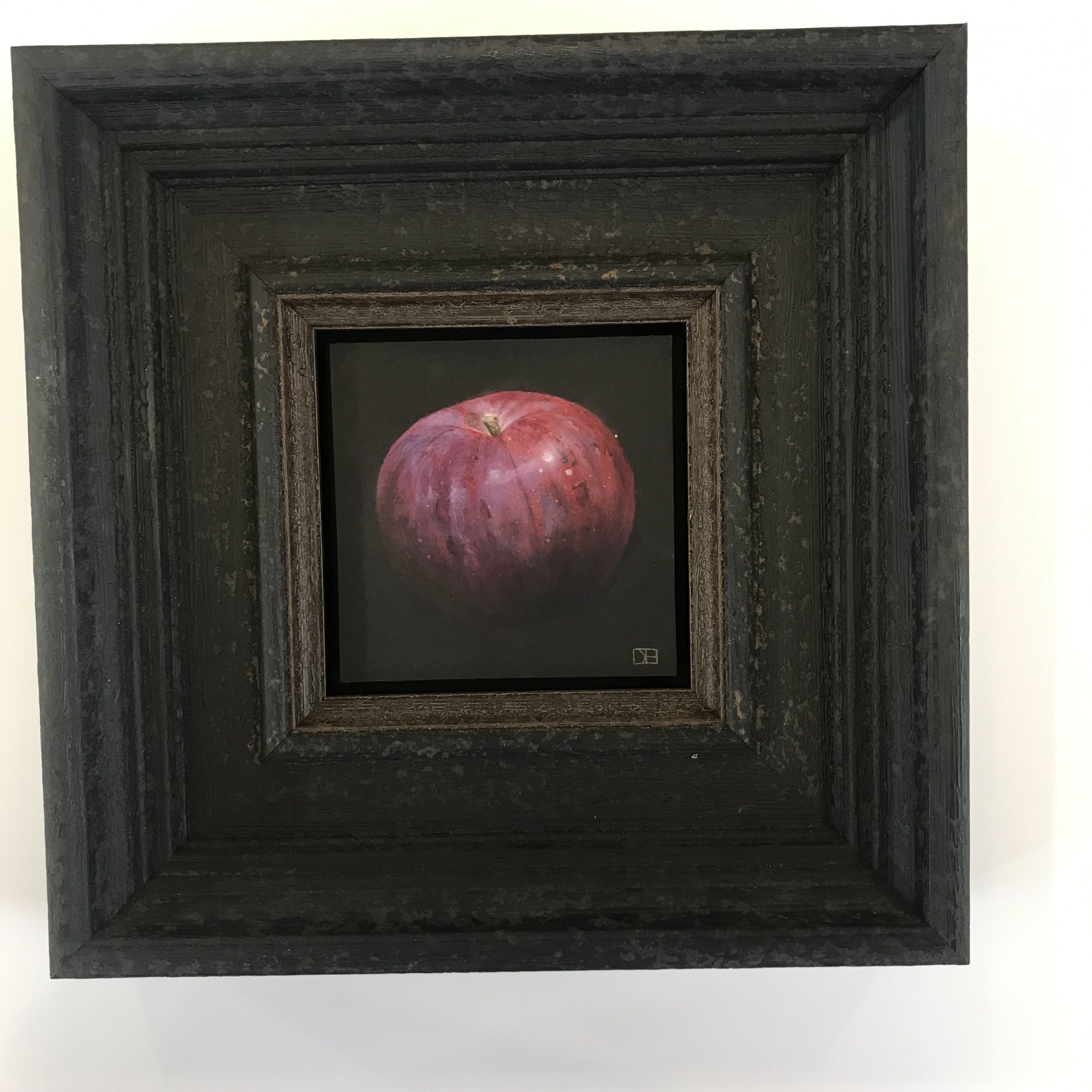 Crimson Plum is an original still life oil painting by Dani Humberstone. The rich and varied tones of the ripe plum give the work a decadent classical feel. Dani's realist painting style makes you feel as if you could pluck the fruit from the canvas.