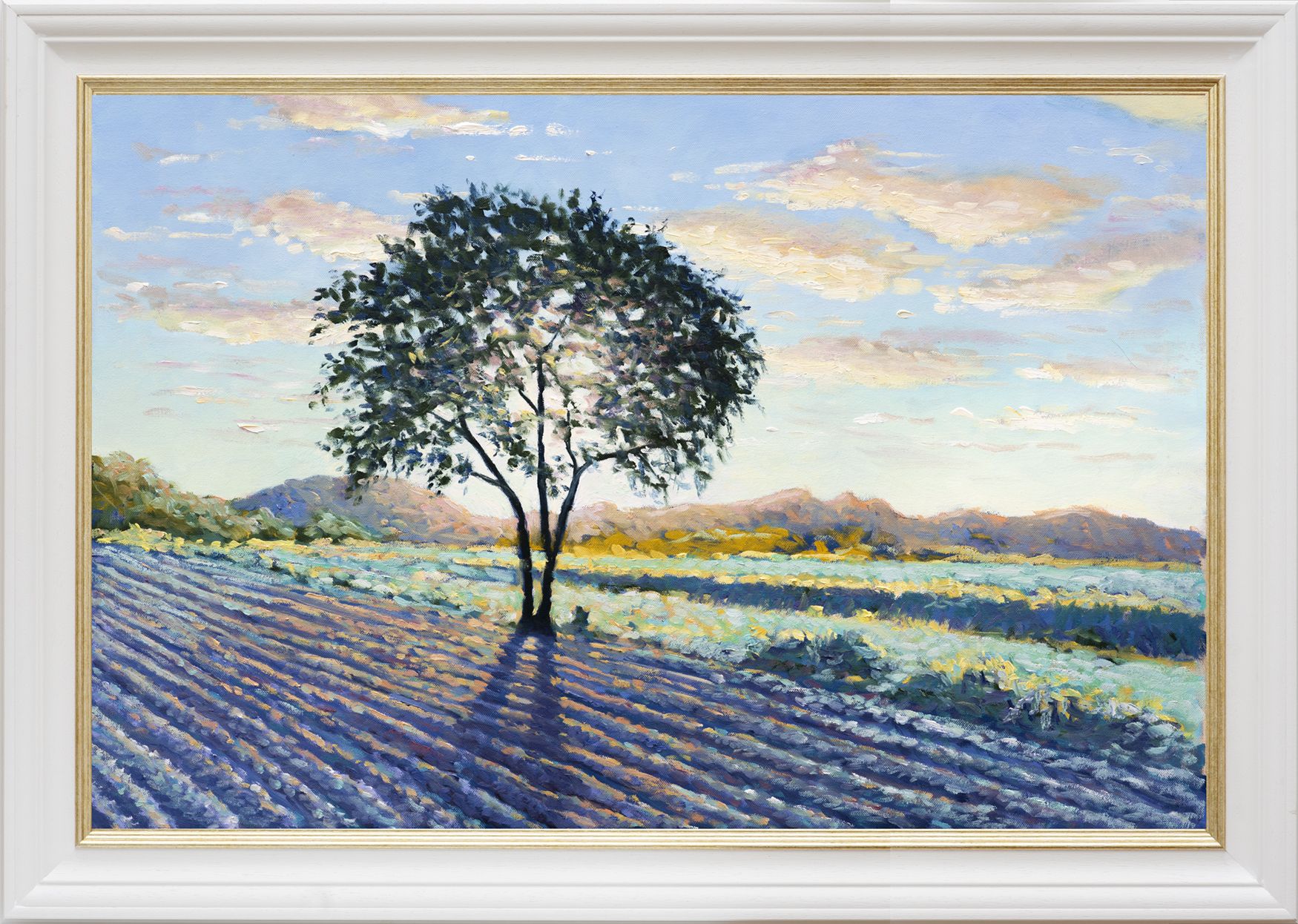 Lee Tiller has developed quite a reputation for his ability to capture the effects of light on the landscape, and in particular using the contre-jour effect of light through the canopies and leaves of trees. His impressionist style harks back to that of the 19th Century French impressionists, a style