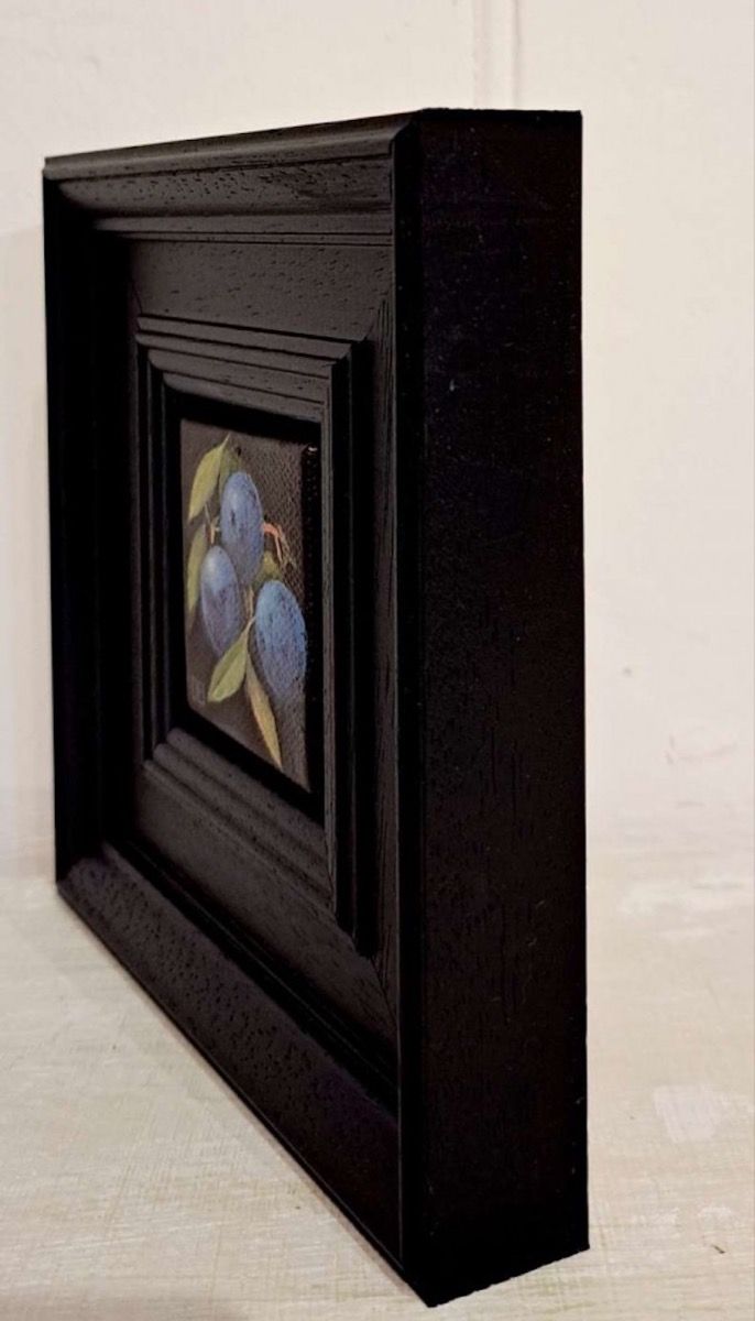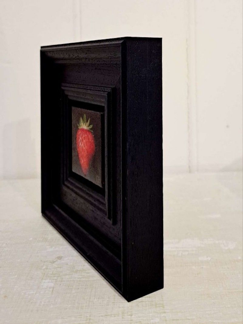 Original painting of a strawberry and sloes. Painting by Dani Humberstone In a black frame Small scale art, still-life painting