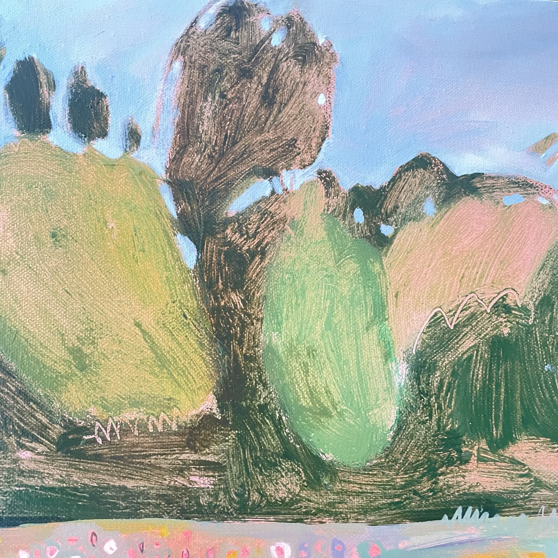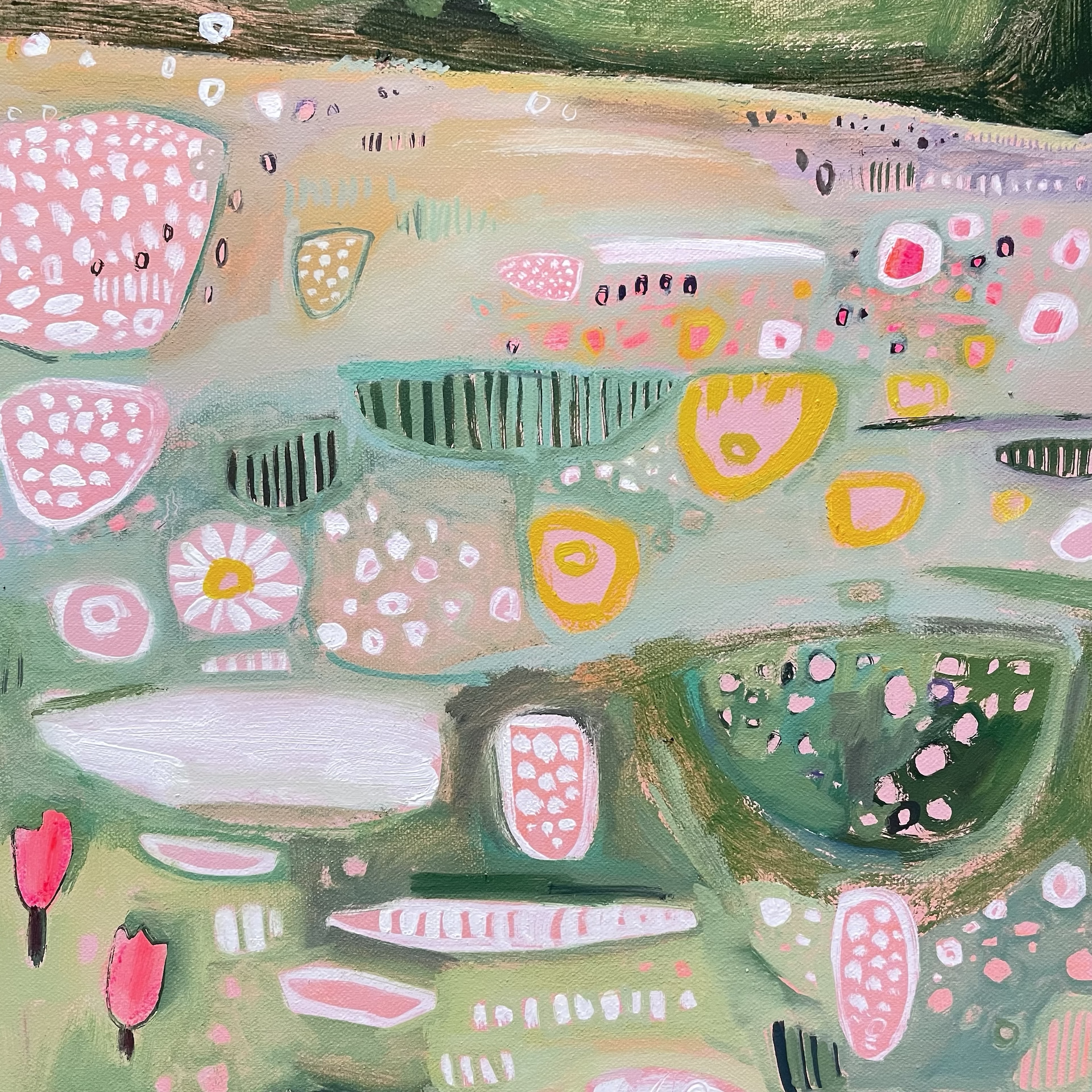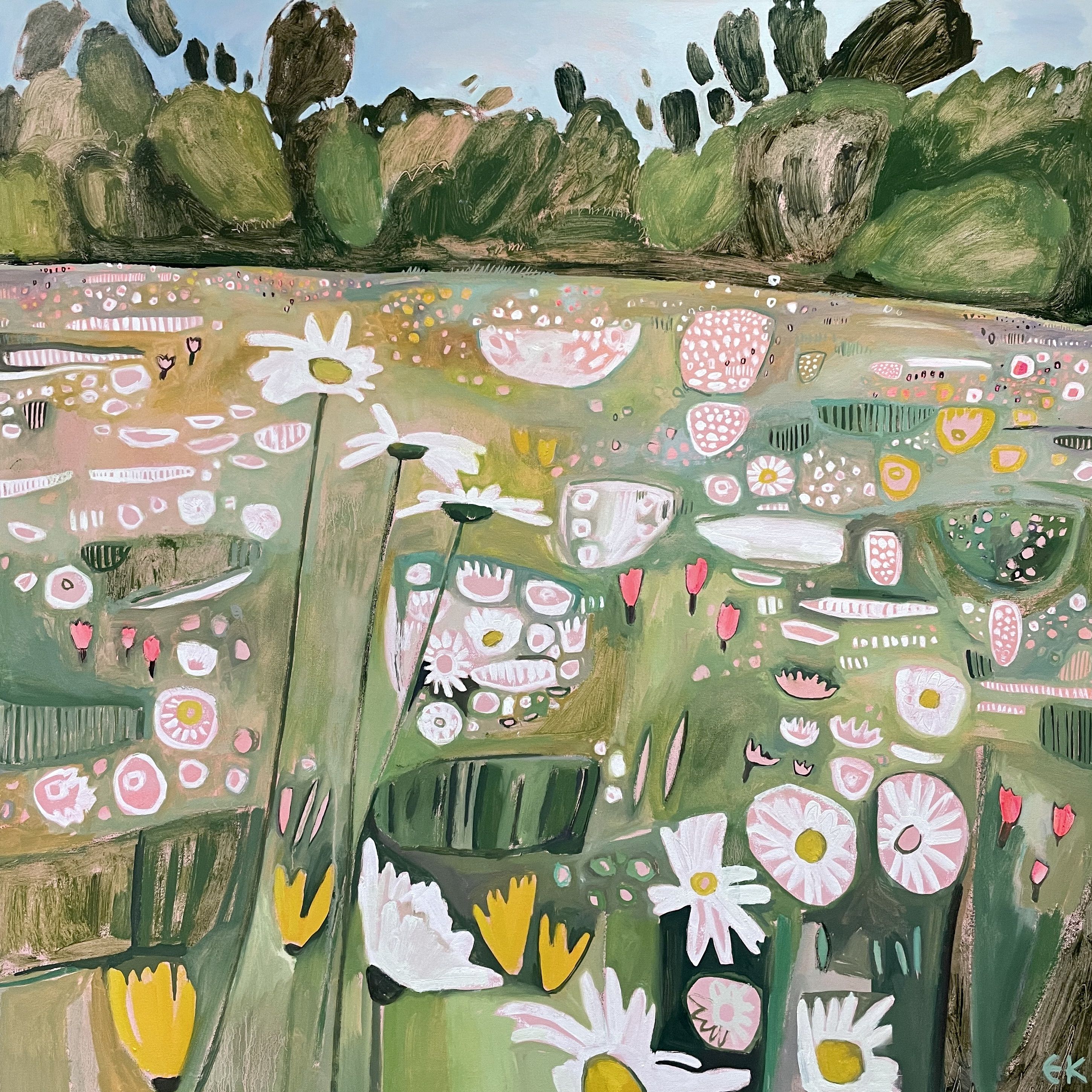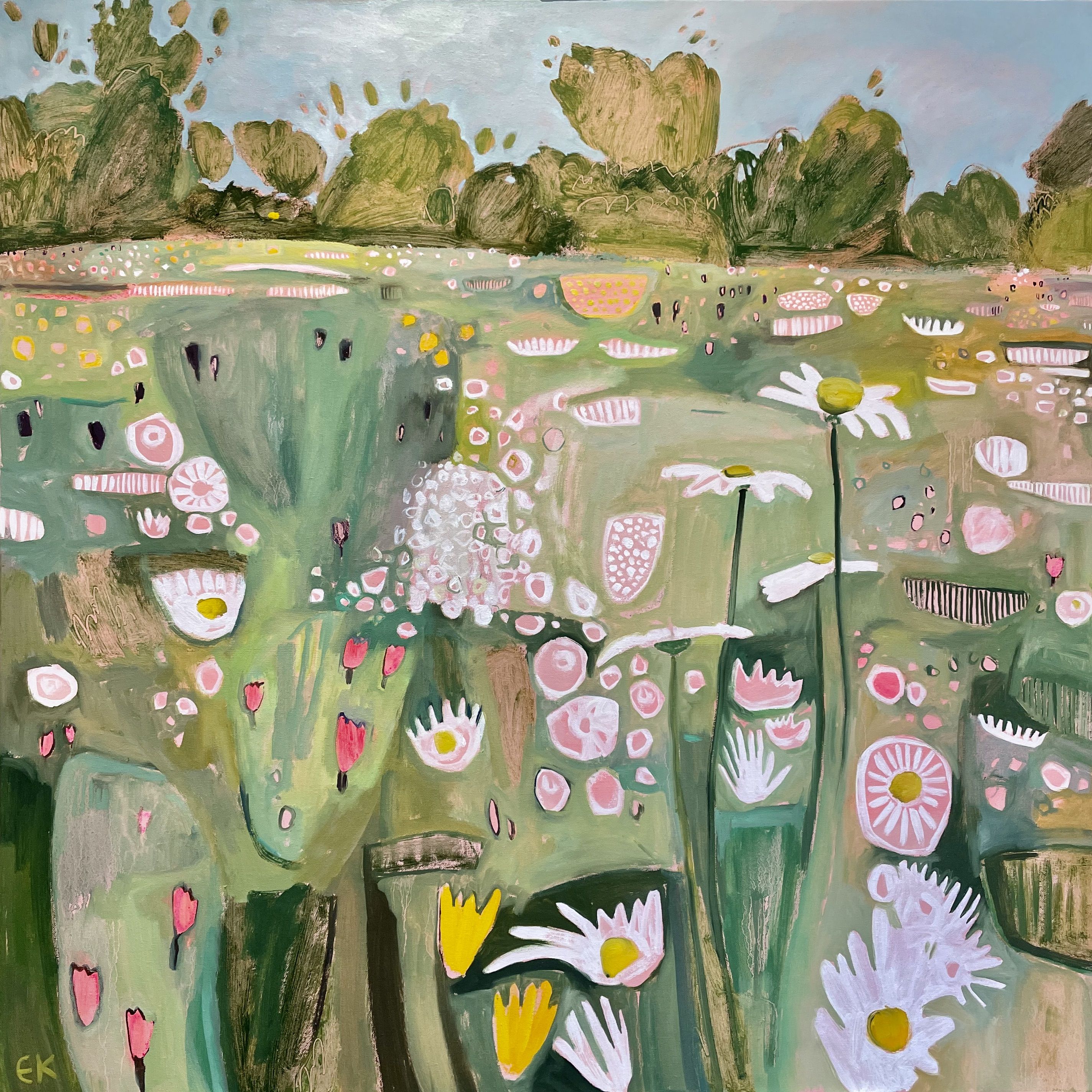 This work comprises two panels depicting a traditional wildflower meadow in full bloom. Although the paintings could be made available separately, they form a continuous landscape when hung side by side. They also compliment one another if placed on different walls within the same interior. The colours are drawn from