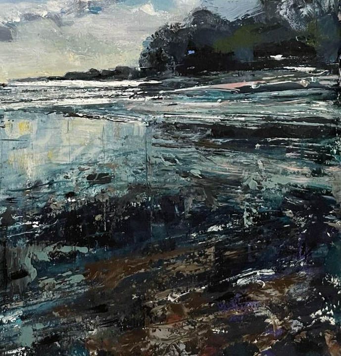 EBBING TIDE | Image size 20CM X 20CM | OIL ON PAPER | WHITE BOX FRAME