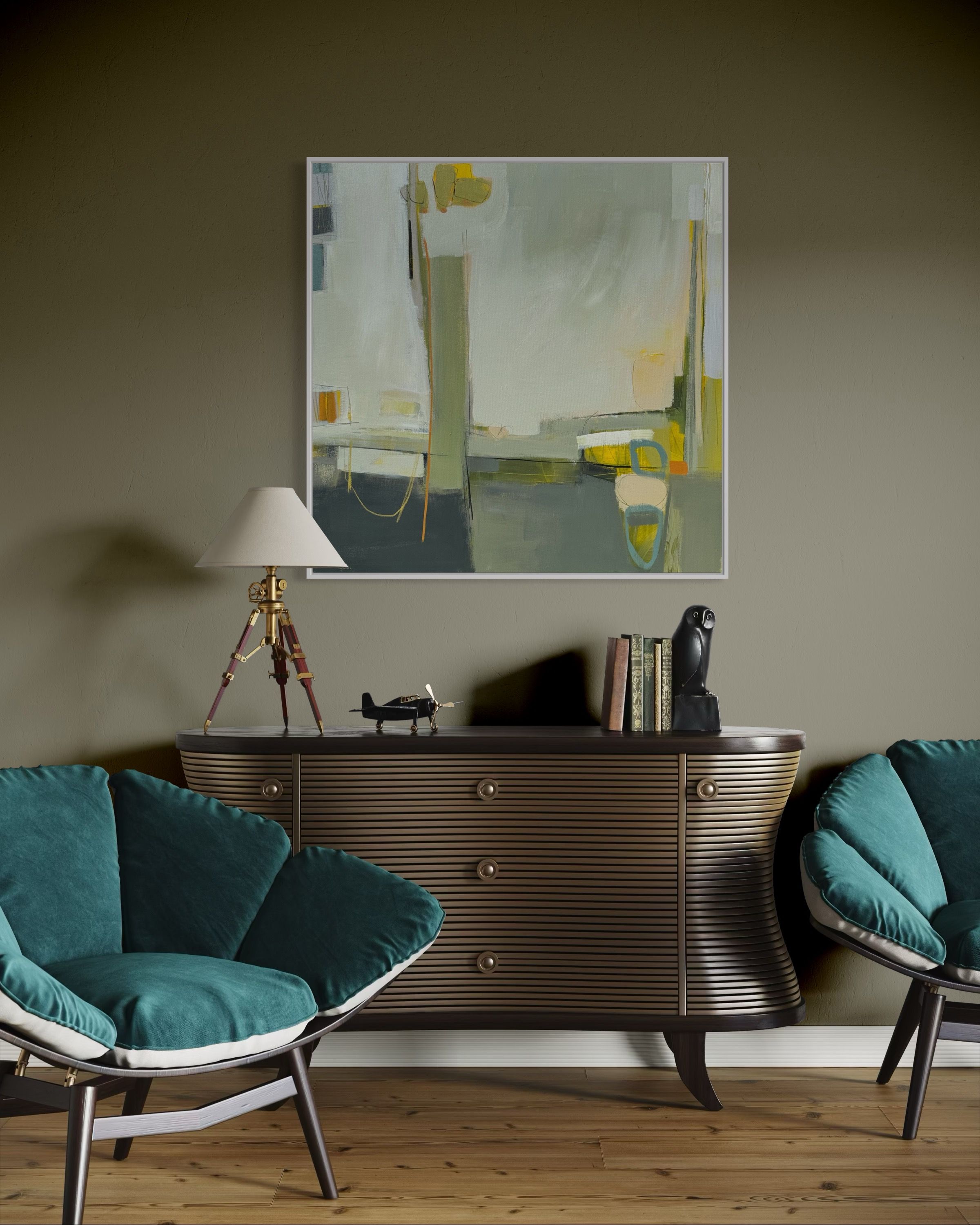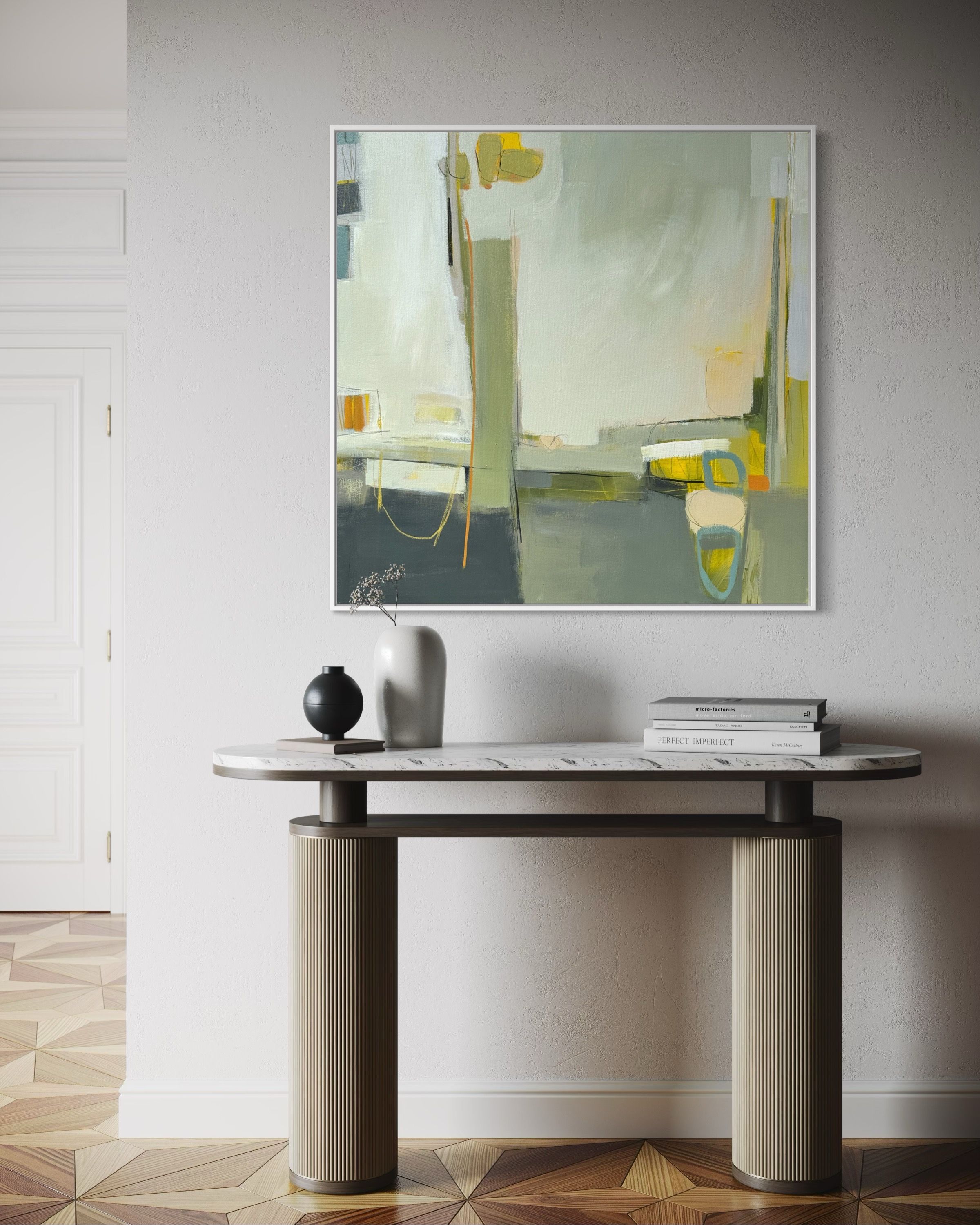 CAMILLA CLARK - My abstract paintings are often an expression of a feeling or an emotion and using the paint to describe on the canvas. The soft gentle hues and subtle geometry of this piece express calmness bringing a wonderful atmosphere to any room. ECHOES - Original acrylic and mixed