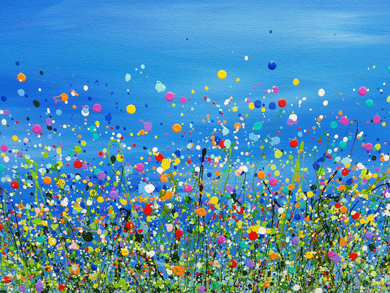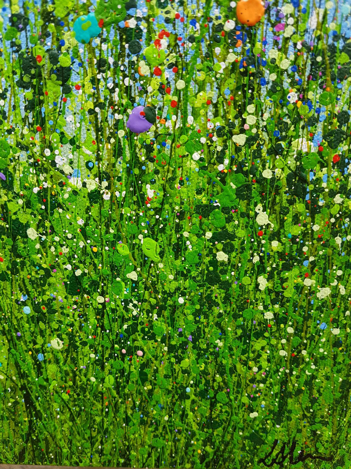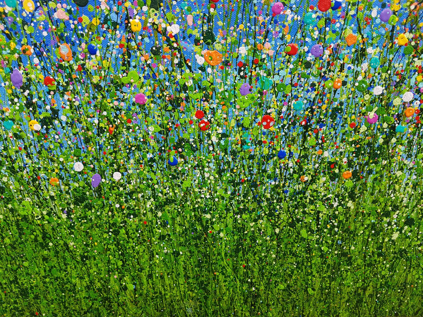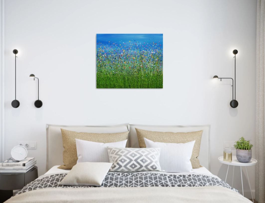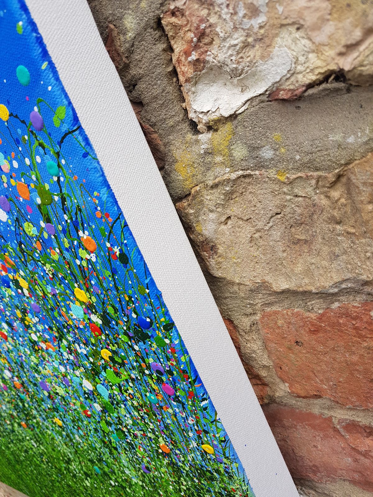 Original semi-abstract painting by Lucy Moore. Using her signature string grass technique Lucy has created a night time view of her classic meadow paintings. With an abstract twist I’ve created a vibrant statement meadow. This piece would brighten any home or office, bring a little of the outside inside. If
