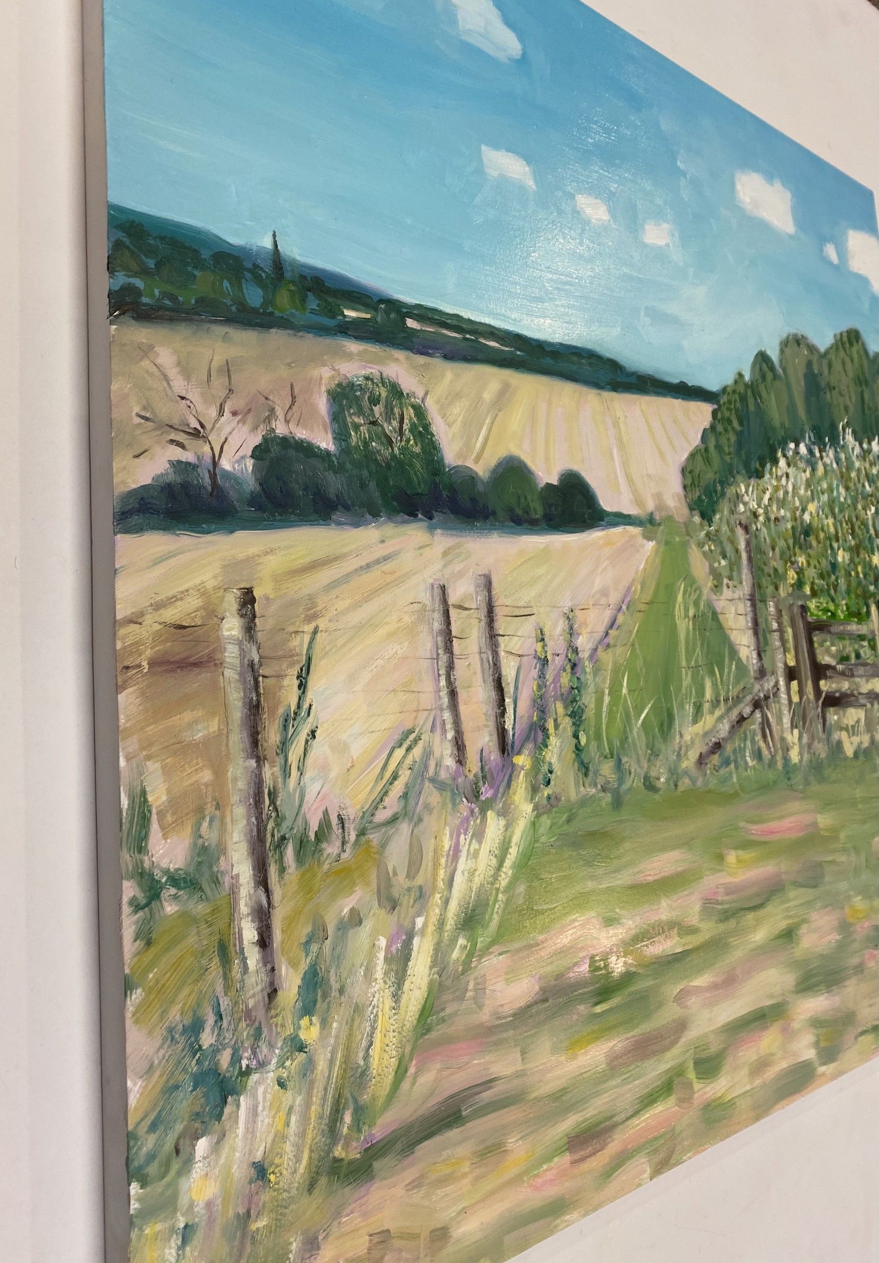 Walking out from Aynho by Eleanor Woolley Original and hand signed by the artist Gesso on Board Image Size: H61cm x W:61cm Complete size of unframed work: H:61cm x W:61cm x D:1cm Sold unframed Please note that insitu images are purely an indication of how a piece may look Walking out from Aynho is