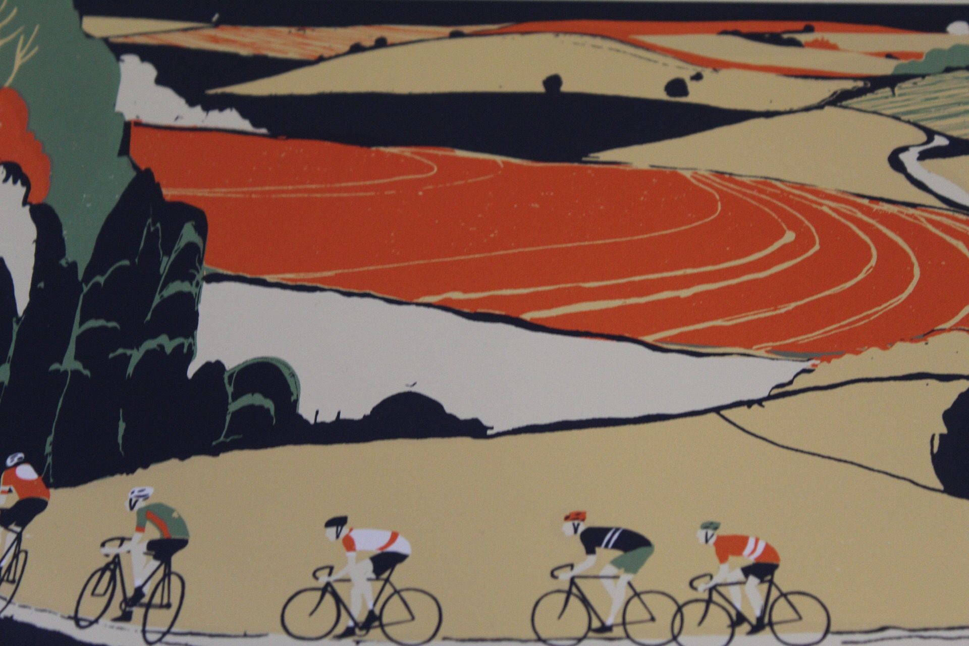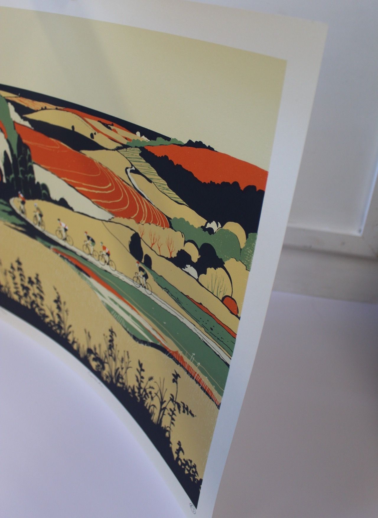Gironde Eliza Southwood Cycling Print Screen Print Inspired by the beautiful landscape near Bordeaux 50 x 50 cm Screen print on Colourplan 270 gsm Edition of 30 only