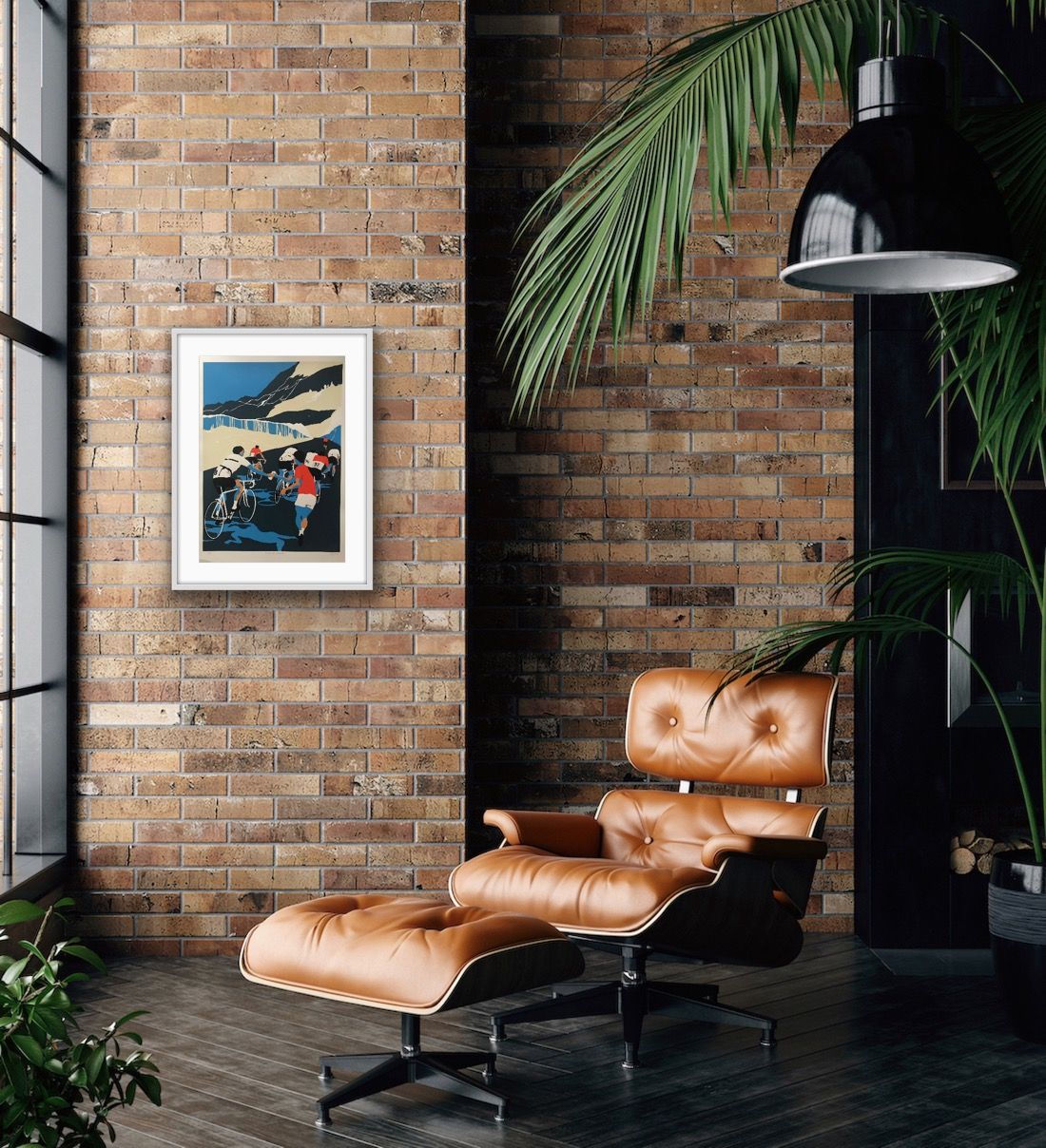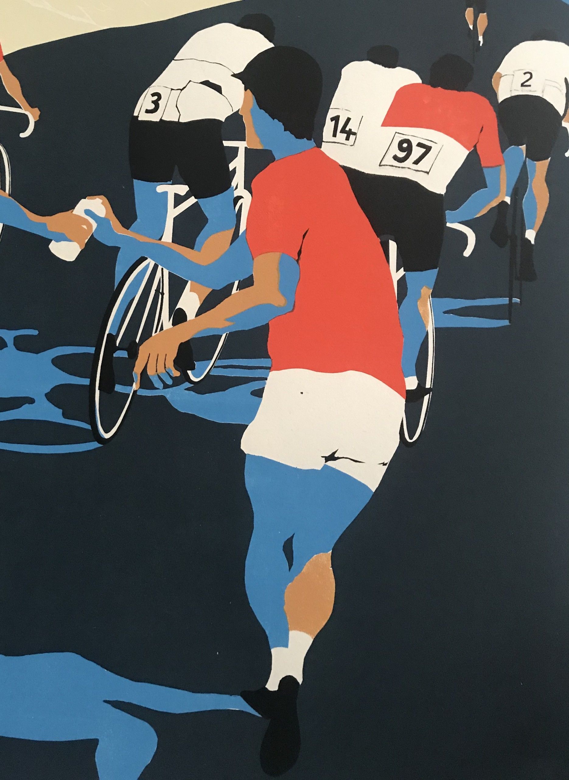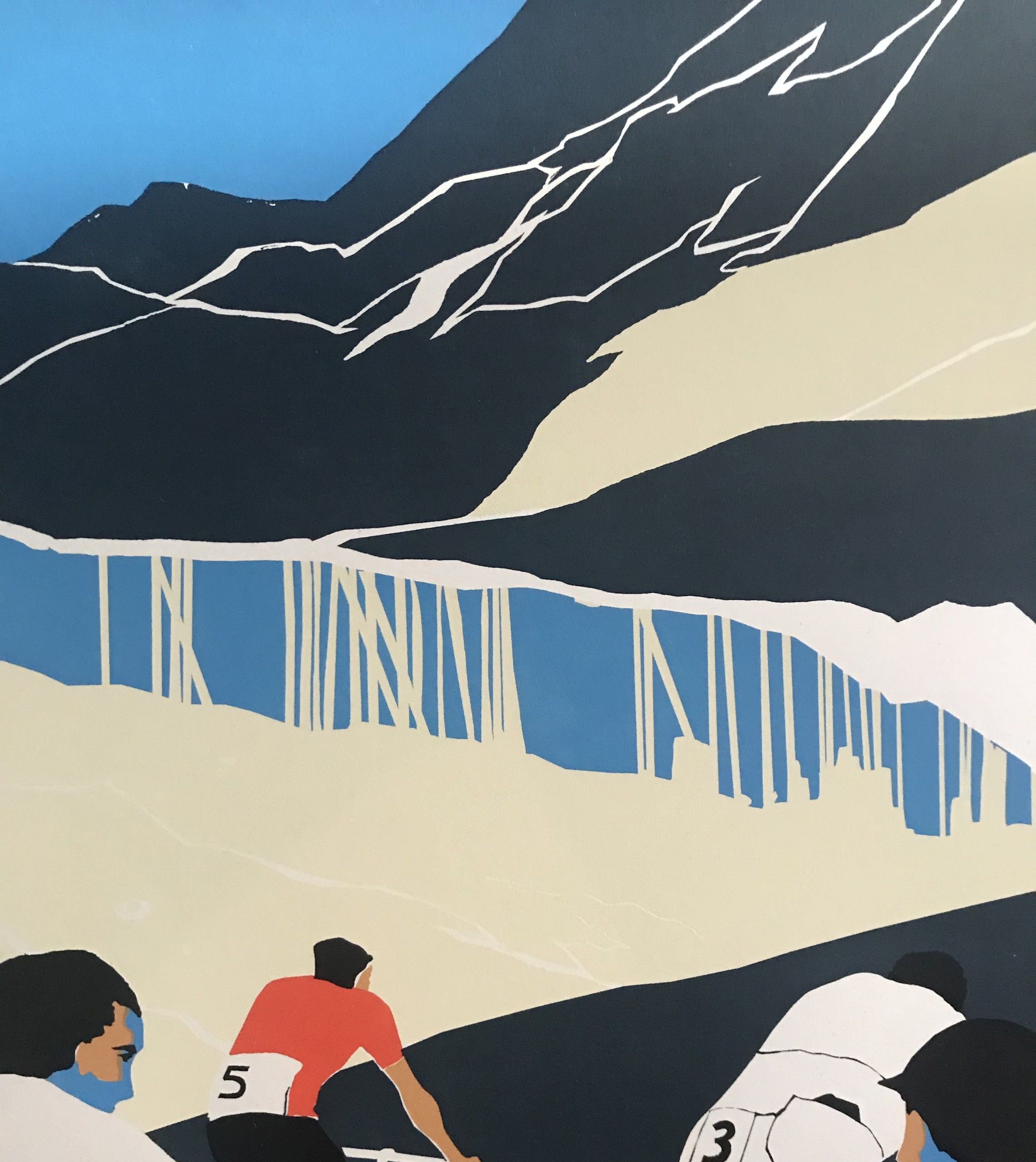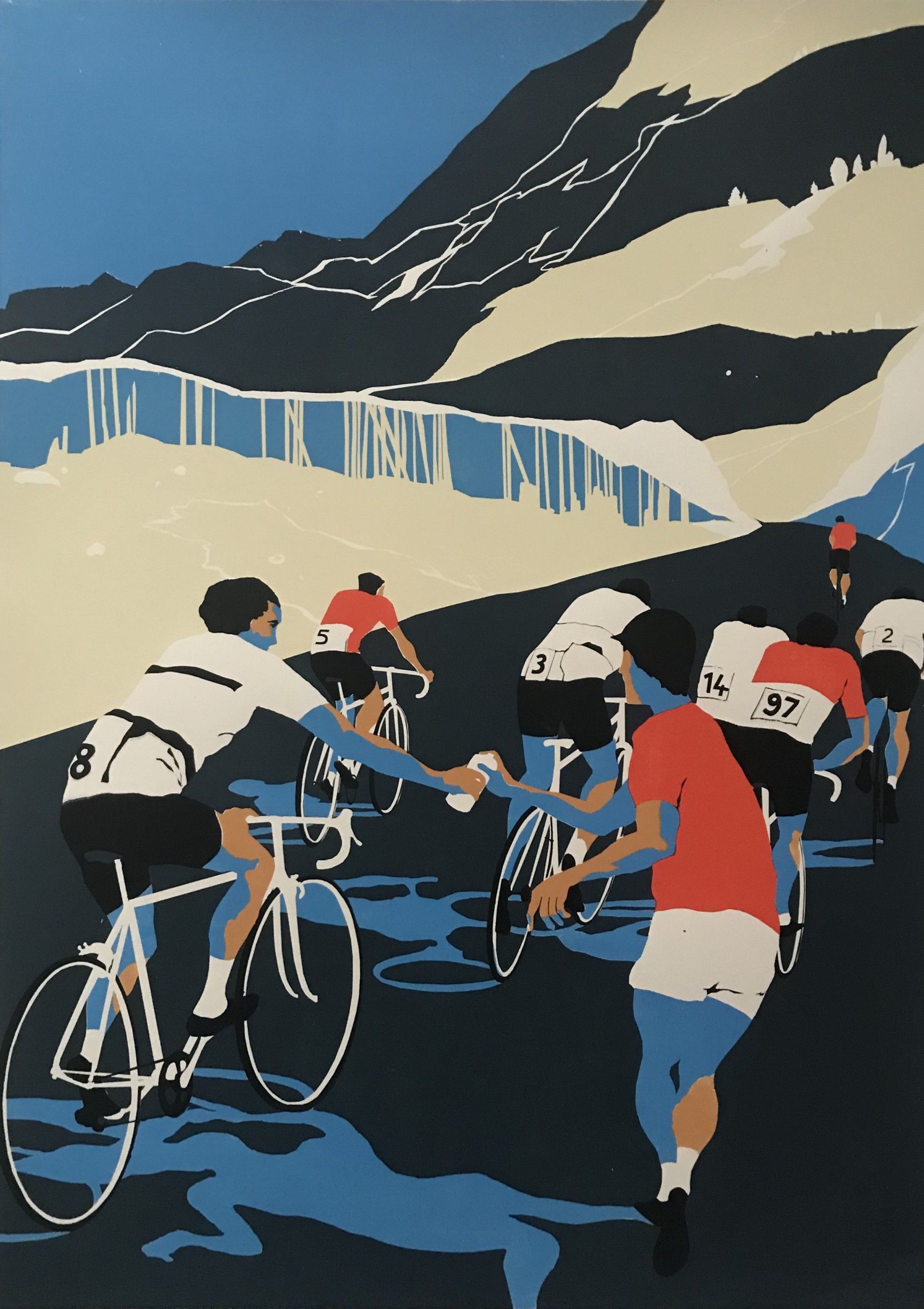 Eliza Southwood Helping Hand Limited Edition Screen Print Edition of 25 and an Artists Proof Image Size: H 64cm x W 47cm Sheet Size: H 70cm x W 50cm x D 0.5cm Signed Sold Unframed Eliza Southwood cycling prints available for sale with Wychwood art online and in our Deddington art gallery. Eliza Southwood is a former architect,