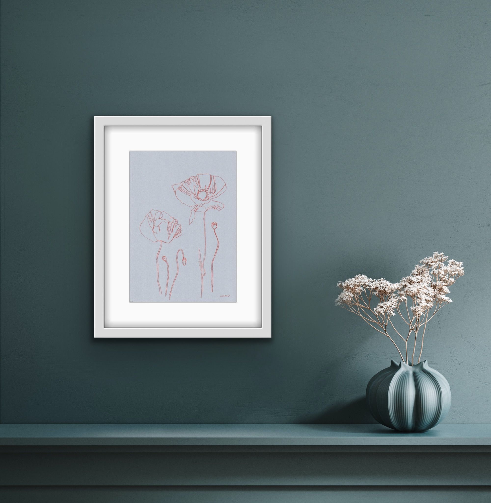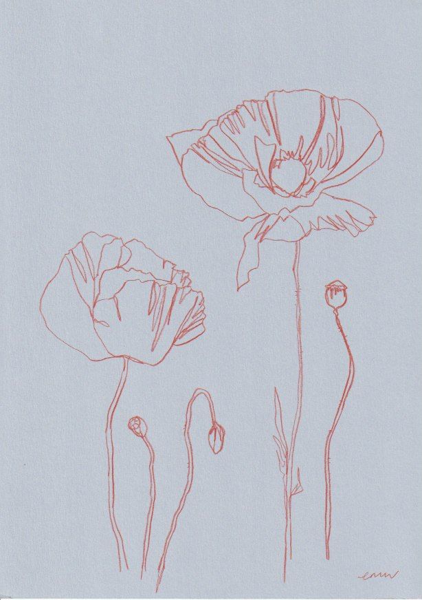 Ellen Williams Poppy II Original drawing Pencil on 150gsm Paper Image Size: H 30cm x W 20cm Sold Unframed (Please note that in situ images are purely an indication of how a piece may look). This drawing is one in a series of botanical line drawings depicting the seasonal flowers of English gardens and the countryside. Flower, illustration,