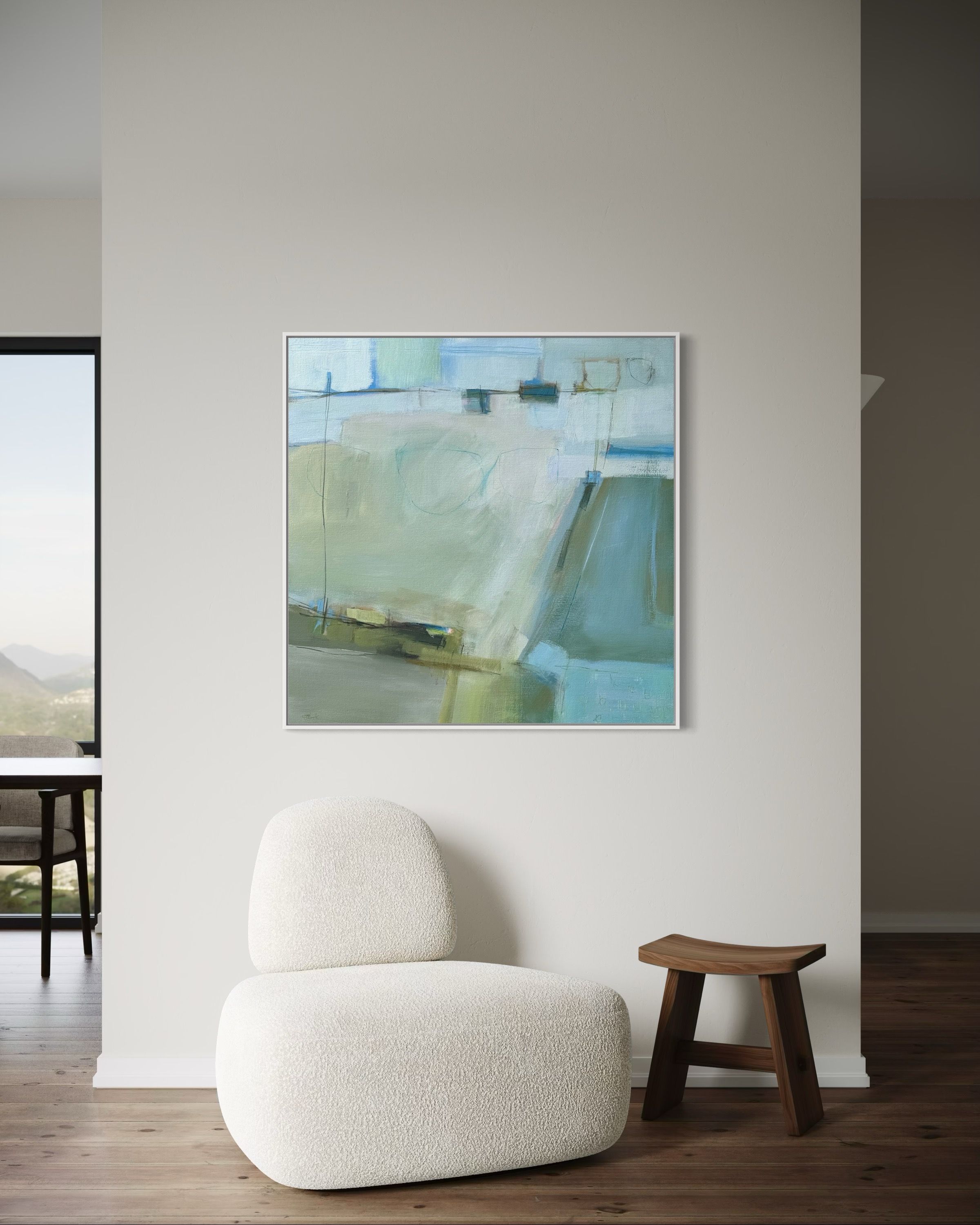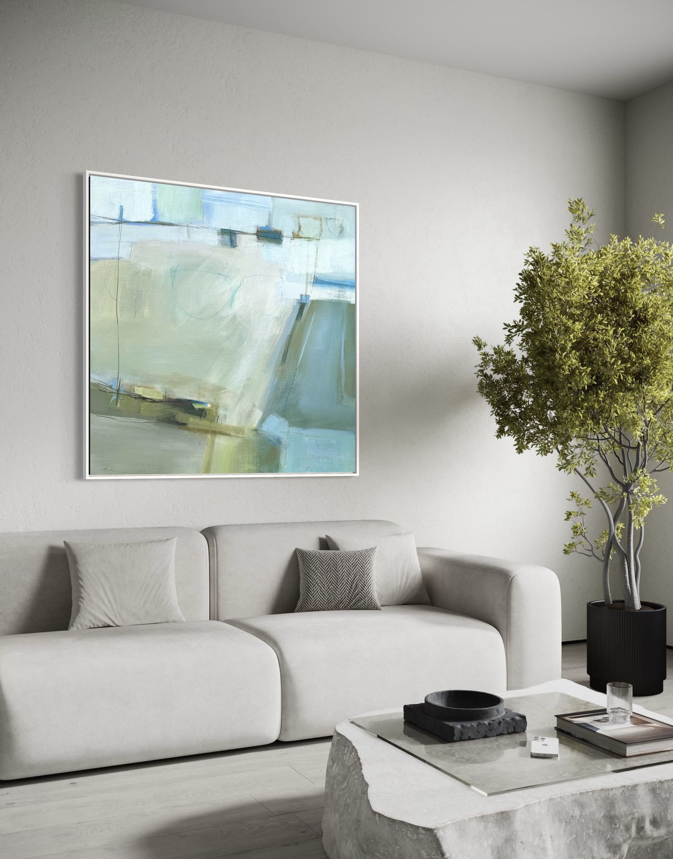 CAMILLA CLARK - My abstract paintings are often an expression of a feeling or an emotion and using the paint to describe on the canvas. ENTIRE OF ITSELF- Original acrylic and mixed media (often charcoal, ink, pastel and pencils) this painting is ready to hang in a contemporary white wooden