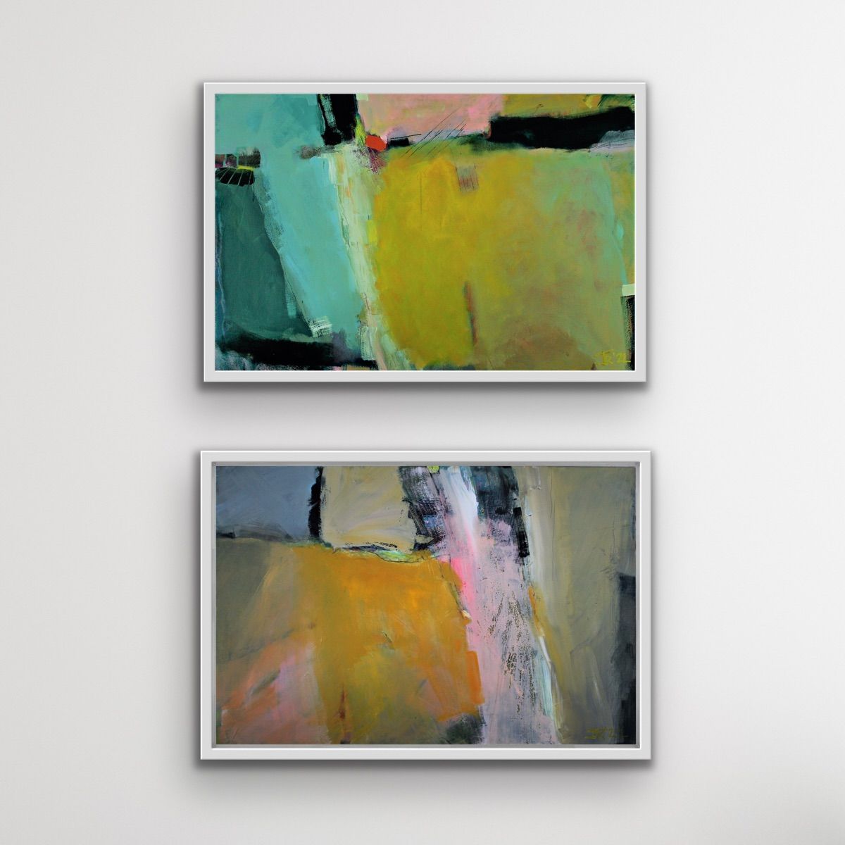 Jon Rowland - Estuary #2 and #3. This completely abstract series of paintings sums up the emotional winter response of a Scottish coast.