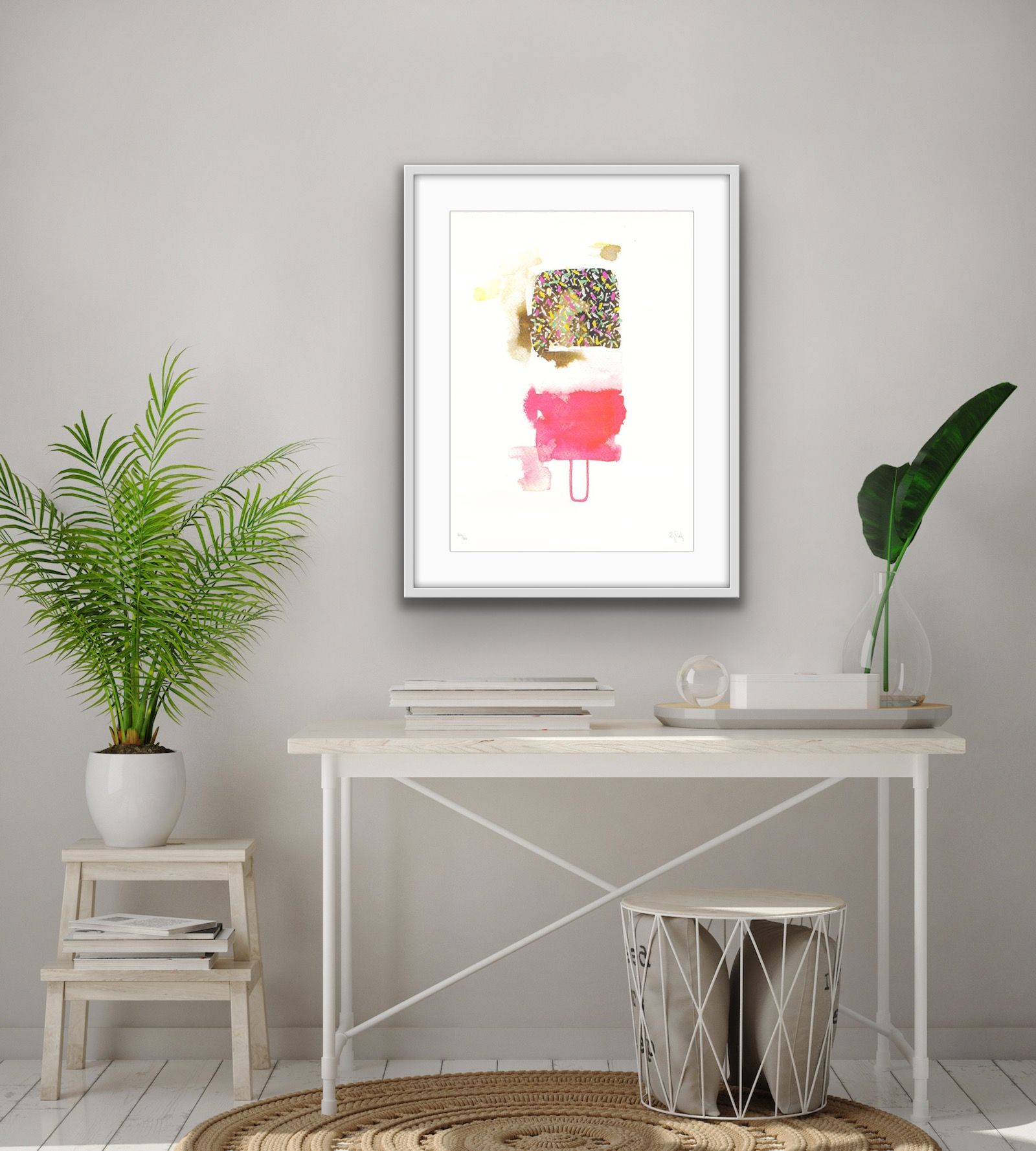 A four layer CYMK elegant and colourful screen print. Signed 50cm x 70cm on Fabriano paper 310 gsm with a deckled edge. Edition of 100. Signed and numbered.