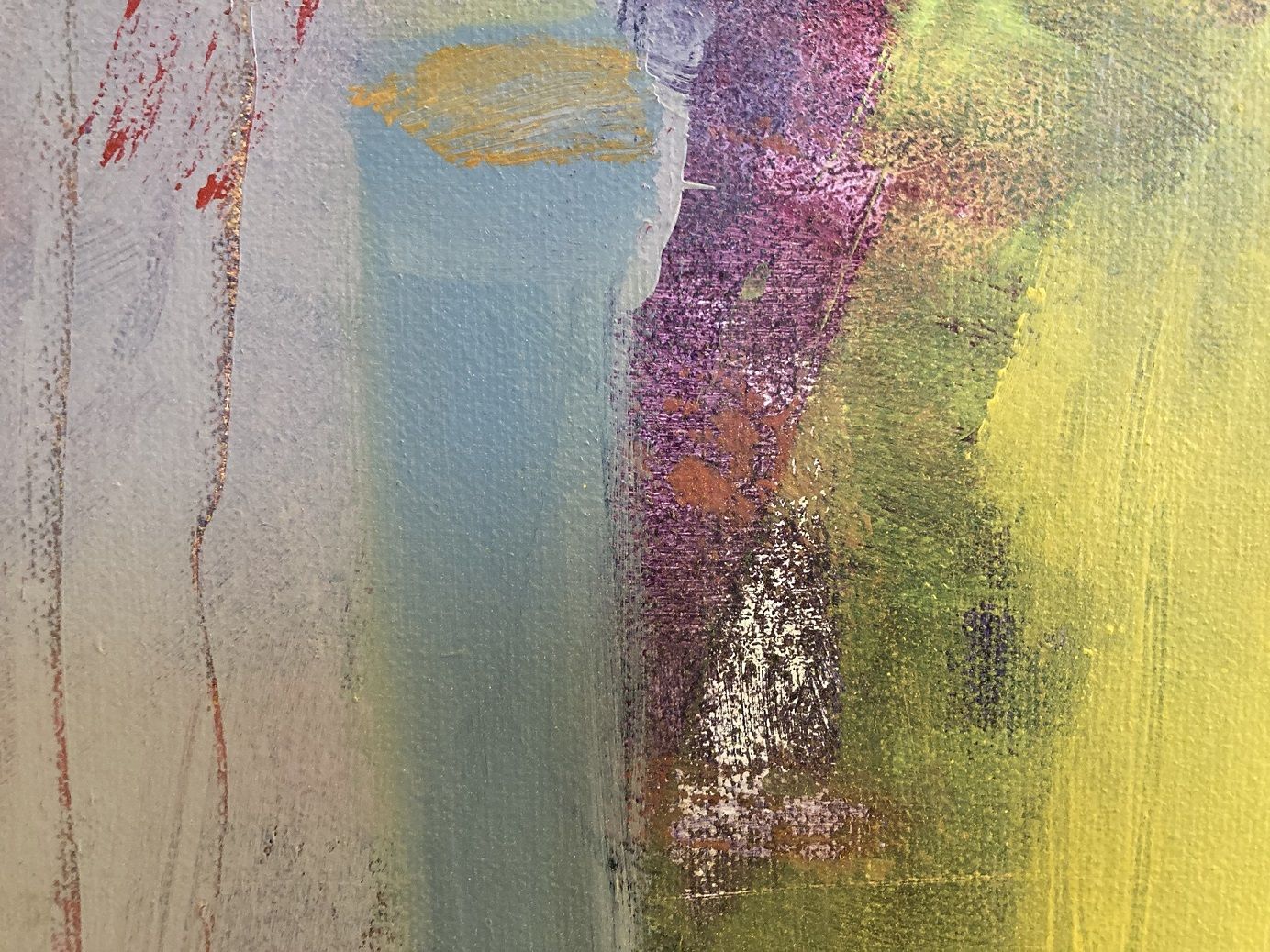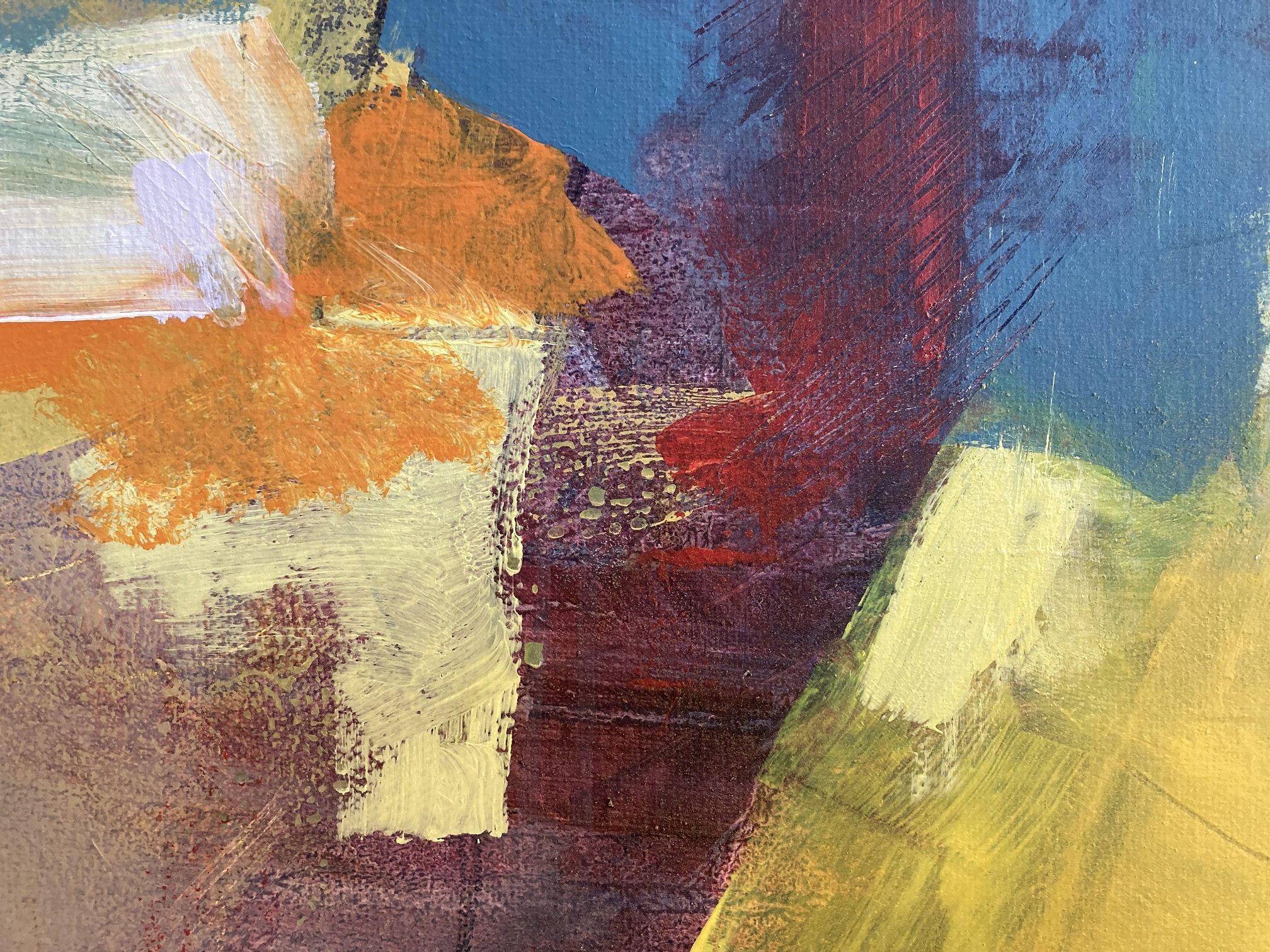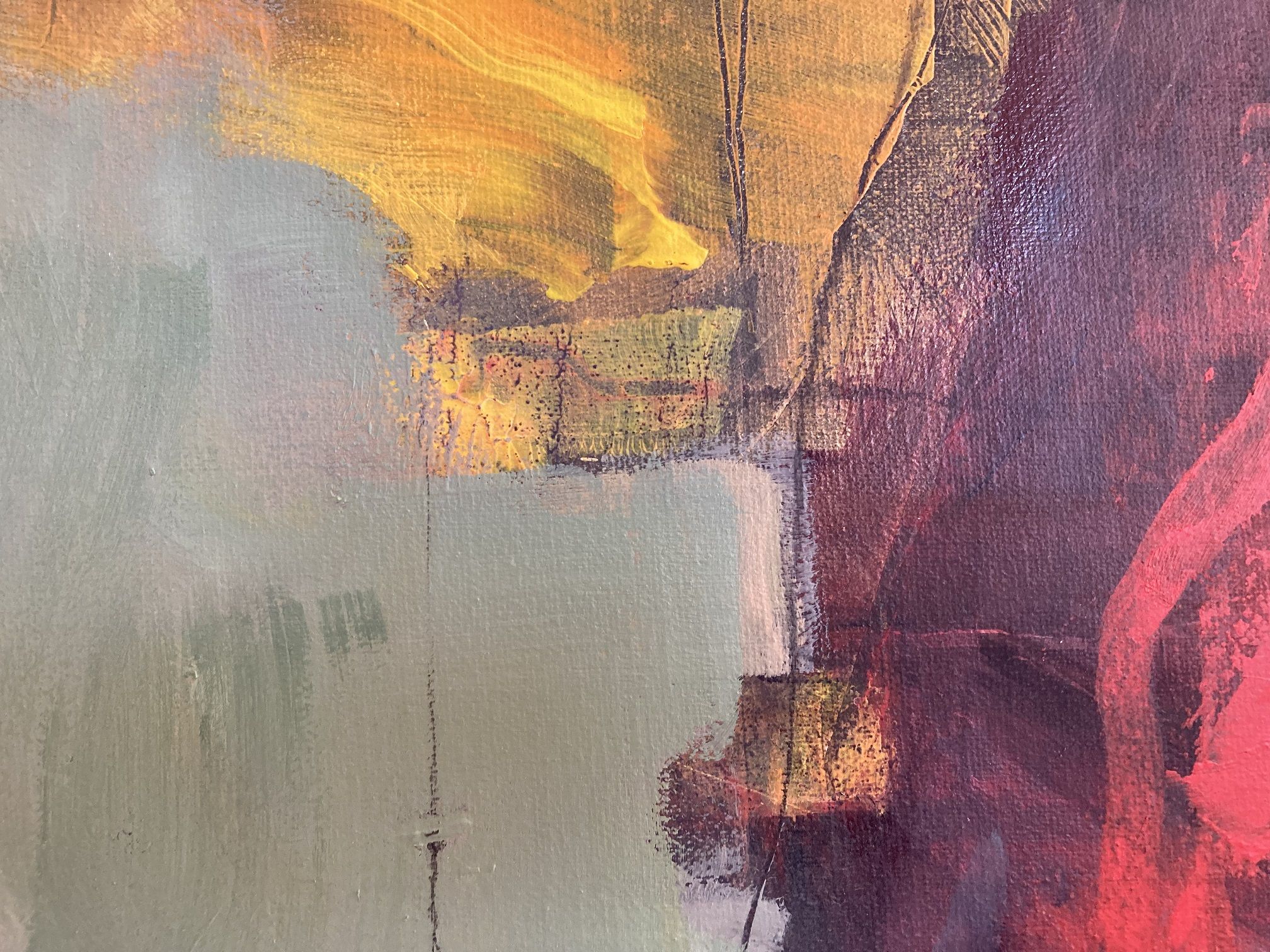 The blood-red of the flash brought to mind Shakespeare and his statement about love. So this is about the different emotions one feels about love, and its changing orbit. Cool, hot, physical and passionate. Yet always there is the need to record this sensation in paint. I have tried to