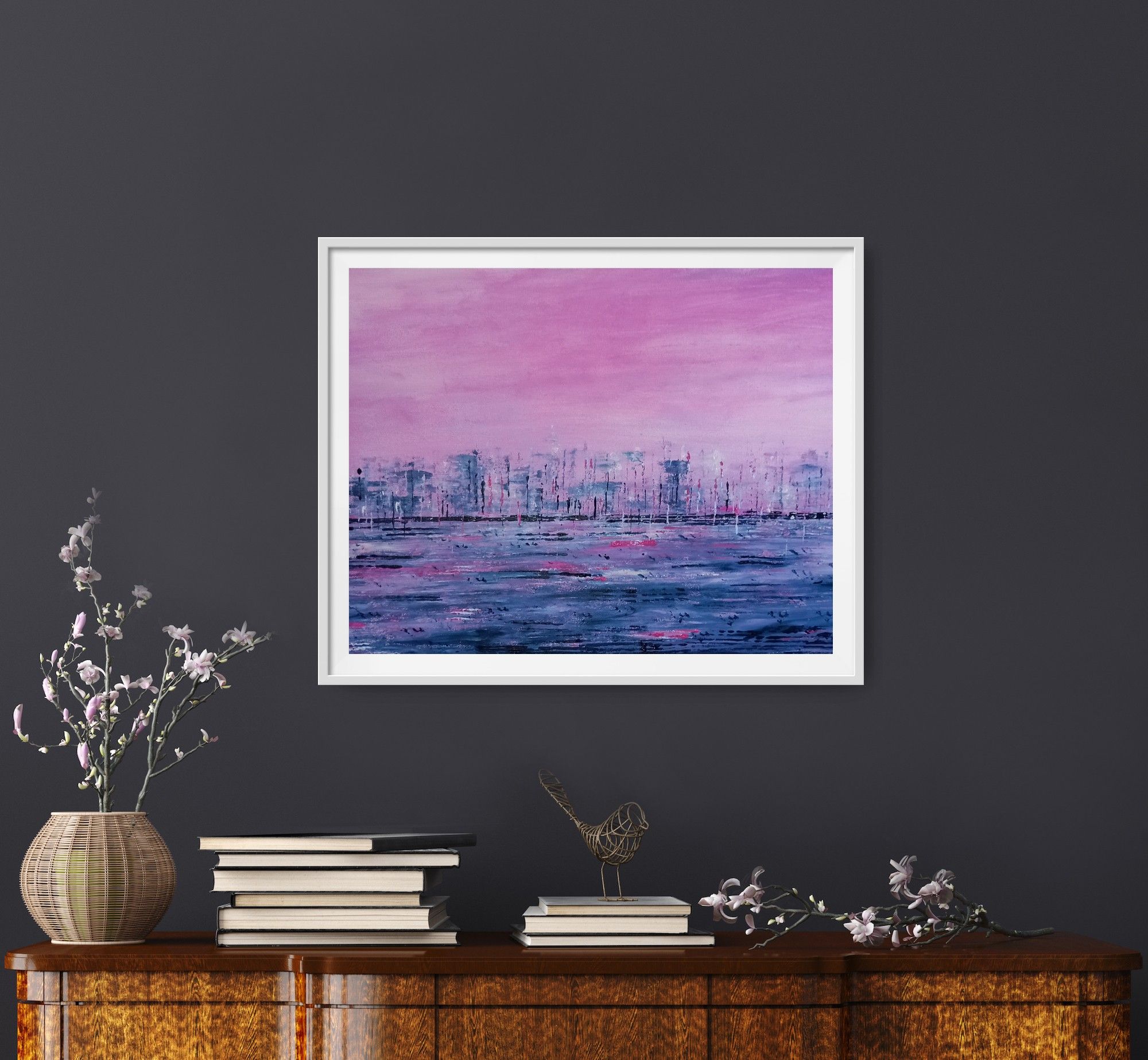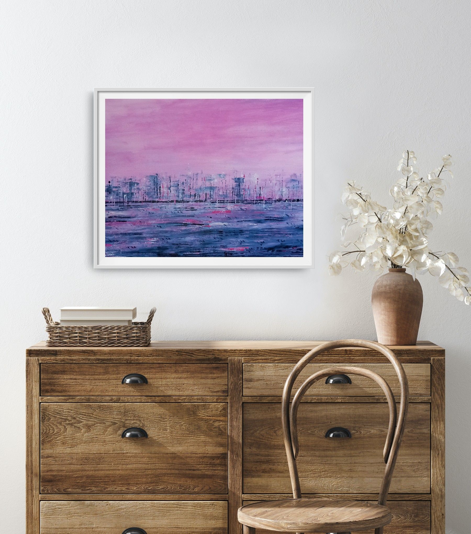The pinks pop in this summer vibes piece. Imagining flamingos.