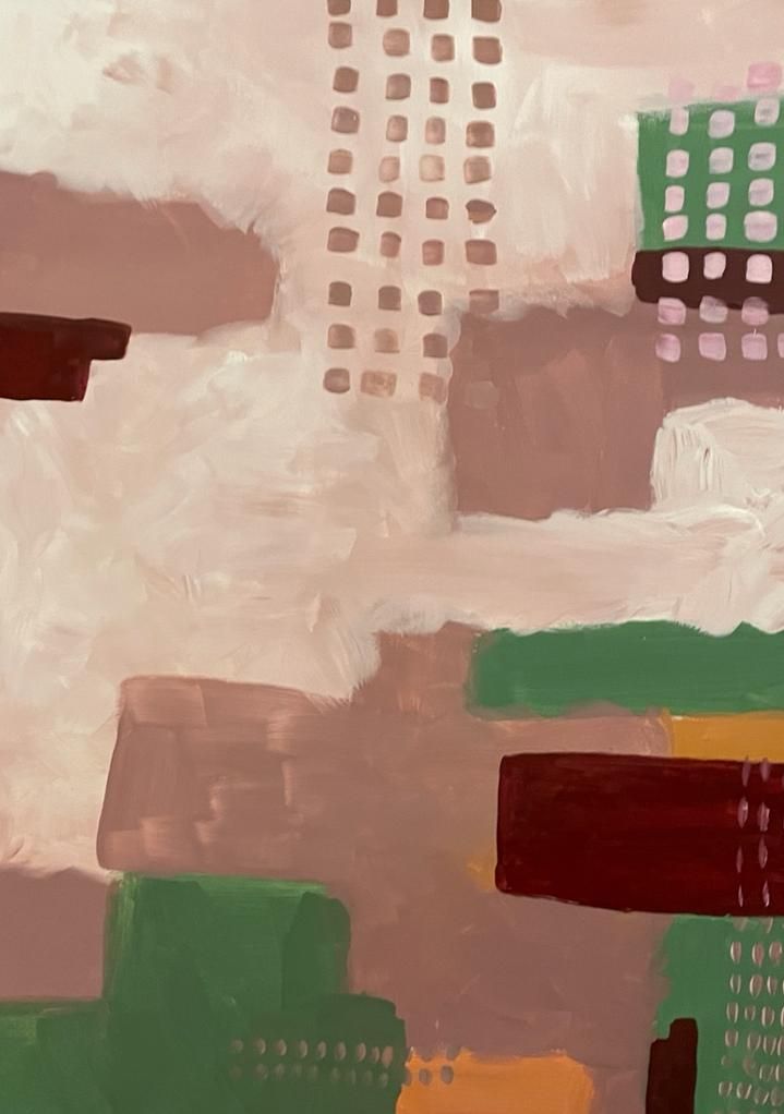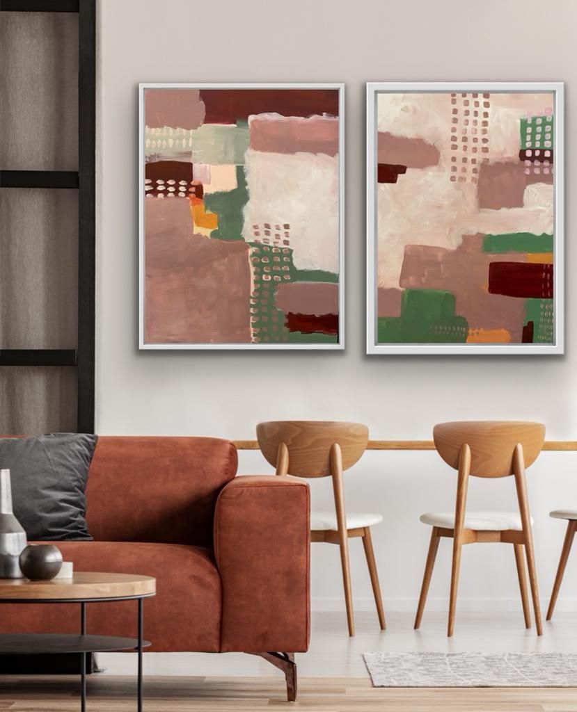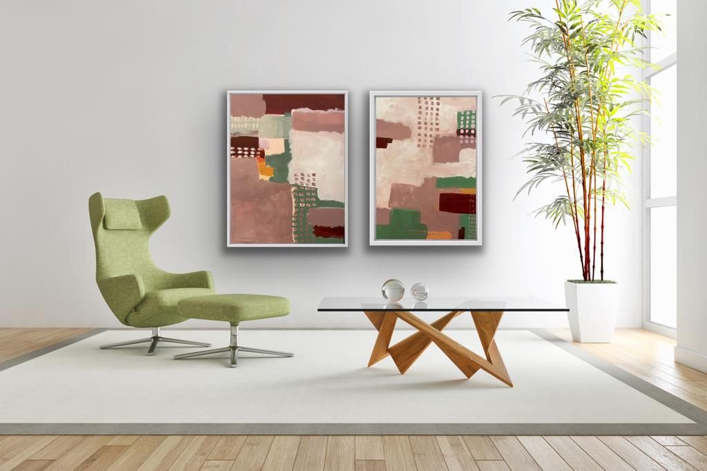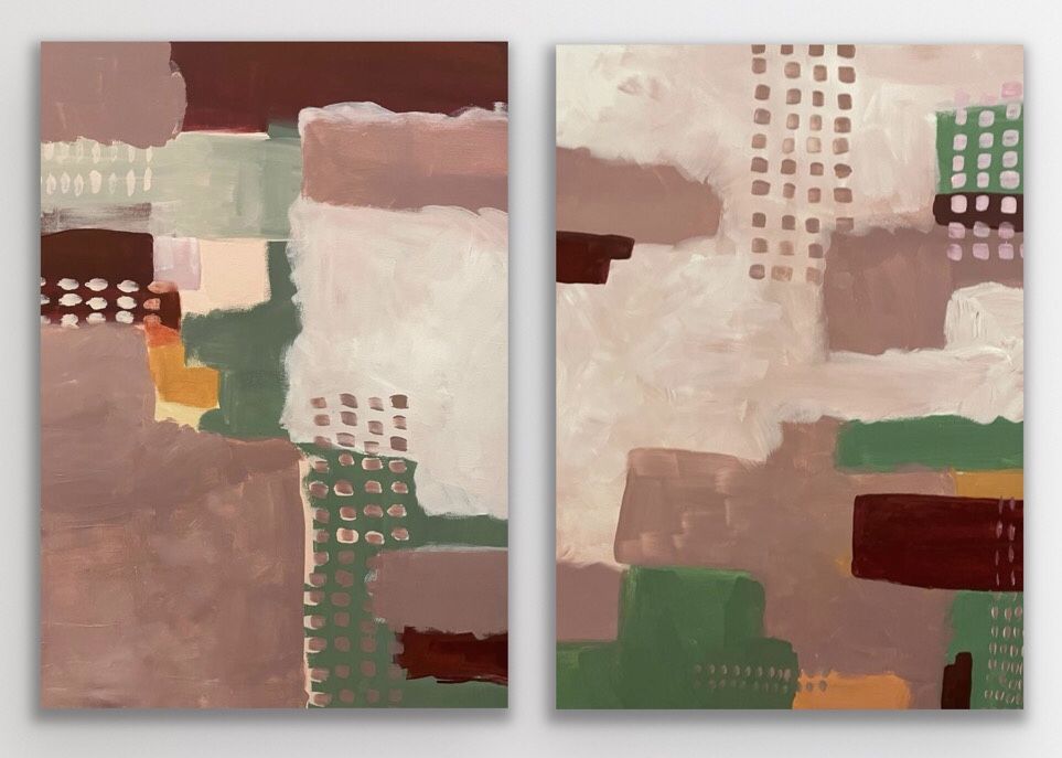 A diptych of Landscape vs City 1 and Landscape vs City 2. Fleur Parks art is influenced by the push and pull of her country life vs her old city life. The juxtaposition of these two is seen in most of her work. The fields that surround her in her