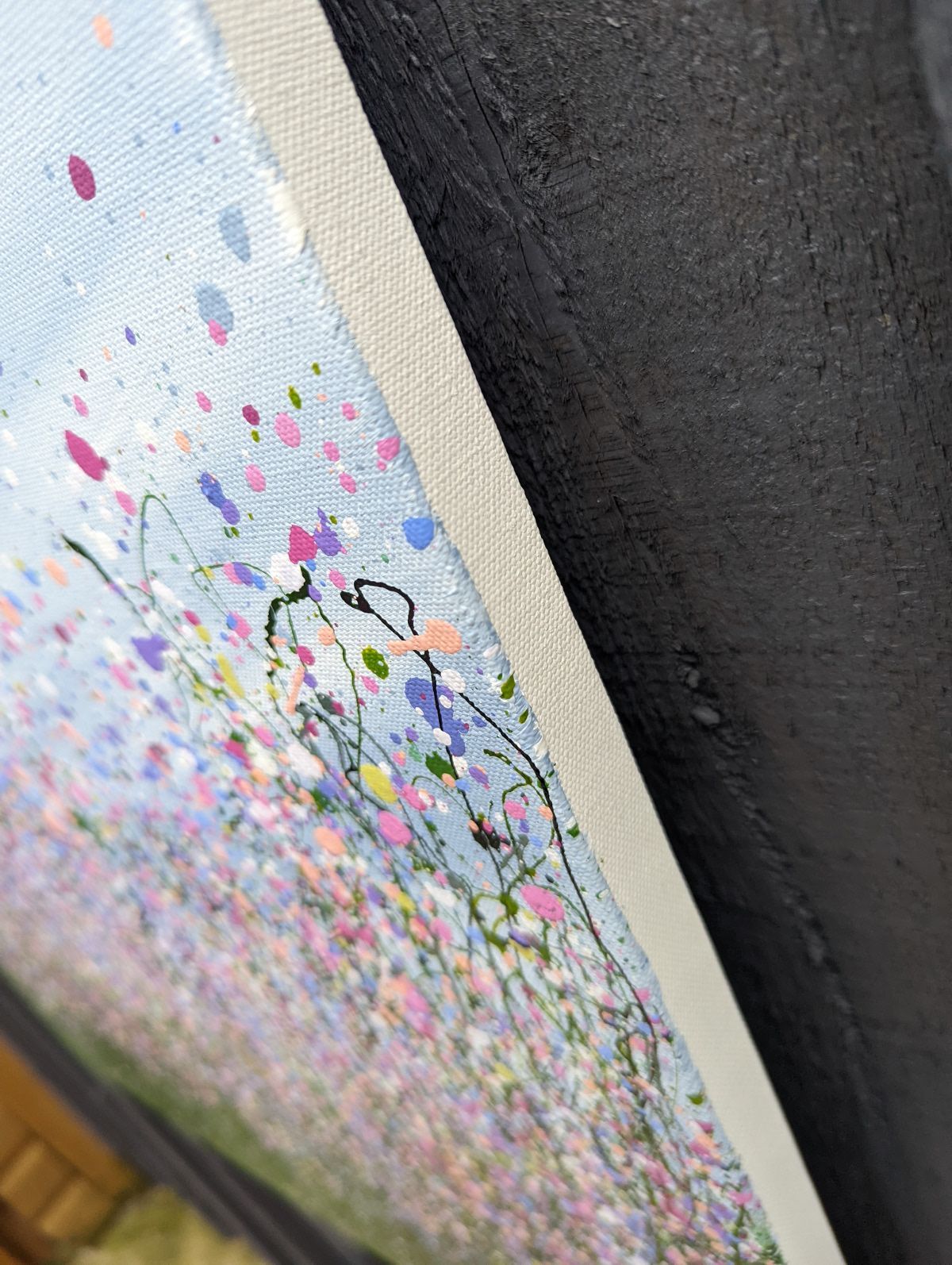 Flourish In Paradise - An Original semi-abstract painting by Lucy Moore. Using her signature string grass technique and a muted palette Lucy has created a semi-abstract twist to her classic meadow paintings, This piece would brighten any home or office, bring a little of the outside inside. We love Lucy
