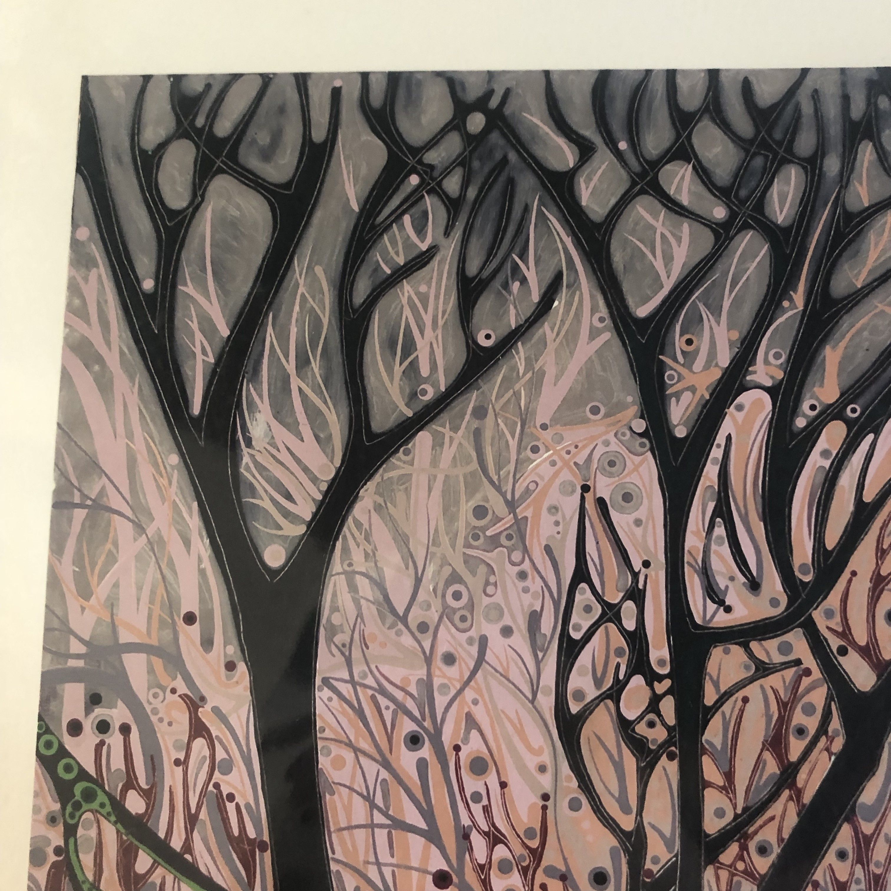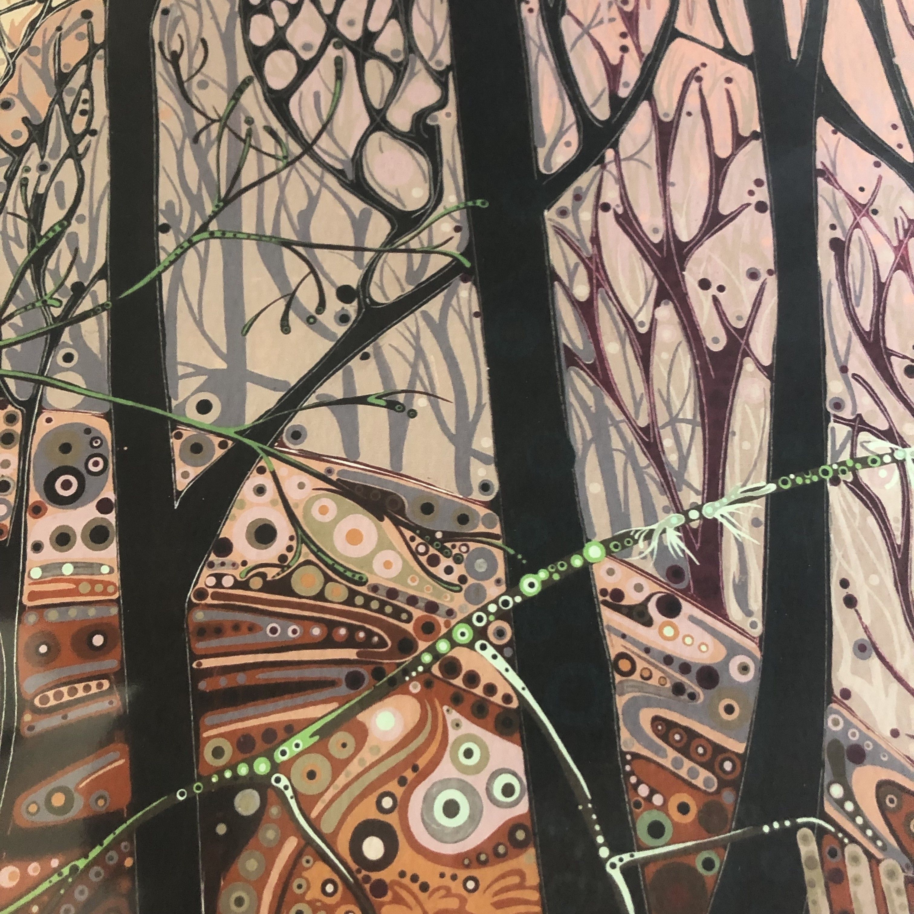 Katie Allen Fox Hill Limited edition giclee print Katie’s artwork is based on the natural world, their changing seasons and shades, which she transforms into a rich textile of patterns, forms and colours. Her paintings when viewed as a whole are of recognisable landscapes and natural forms – trees and plants, insects