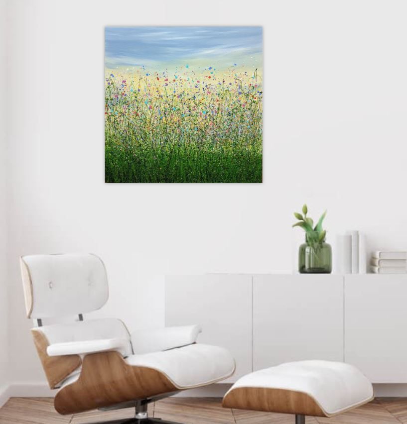 From Now To Eternity - An Original semi-abstract painting by Lucy Moore. Using her signature string grass technique Lucy has created a semi-abstract twist to her classic meadow paintings. This piece would brighten any home or office, bring a little of the outside inside. We love Lucy Moore's original meadow