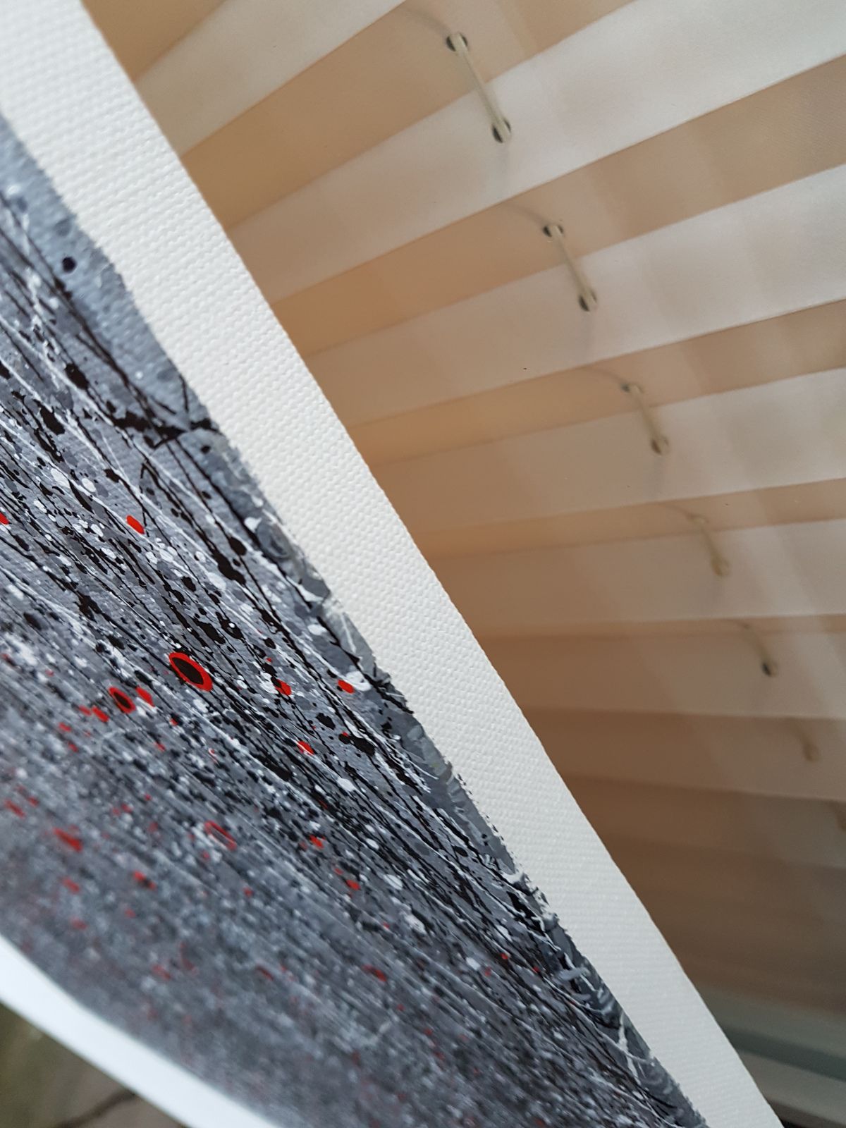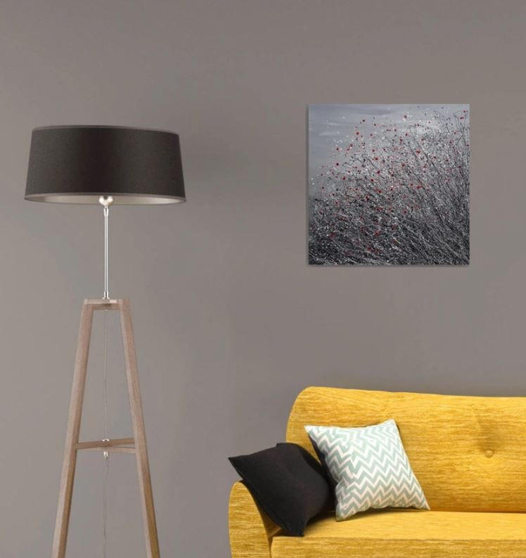 From The Darkness There Is Light #3 - An Original semi-abstract painting by Lucy Moore I really like the contrast of the monochrome back ground against the vibrant pop of poppies. I love painting abstract landscapes, using my techniques to put movement into the painting bringing it to life Wychwood Art comments