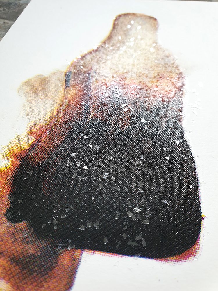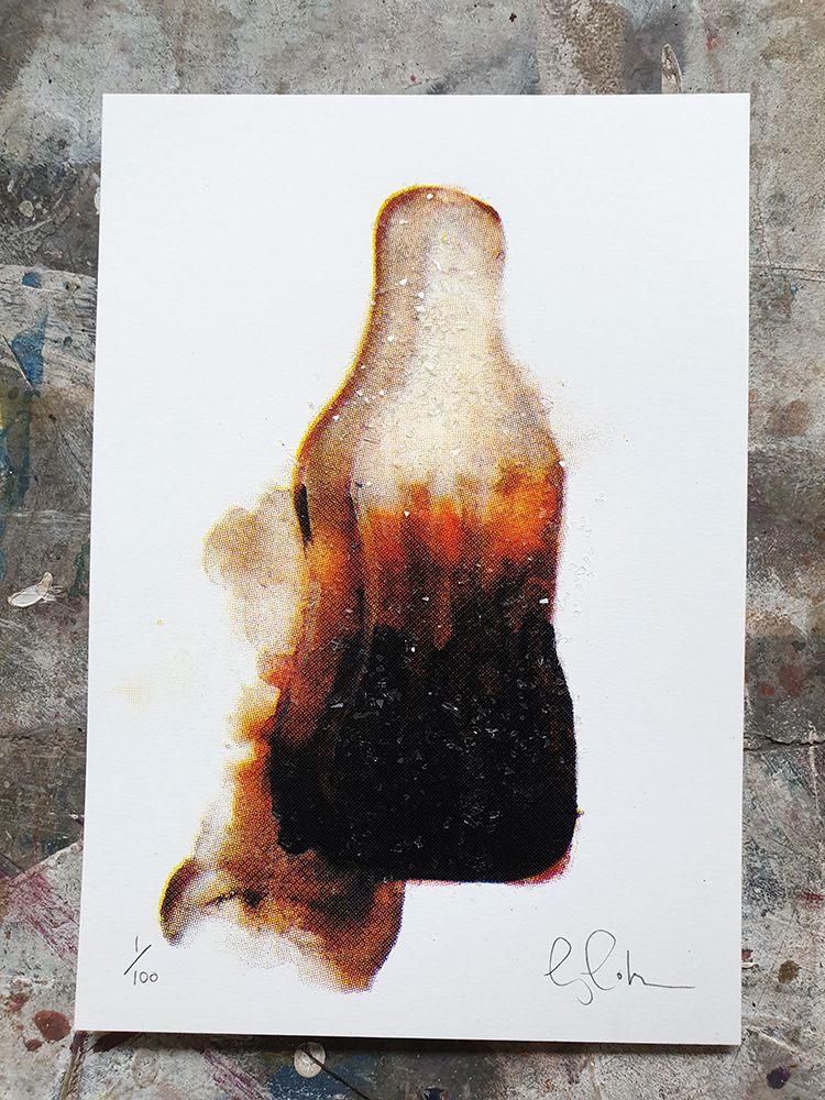 A hand crafted five layer screen print of a painted illustration by the artist this retro classic candy on heritage white paper. With a final layer of diamond dust.