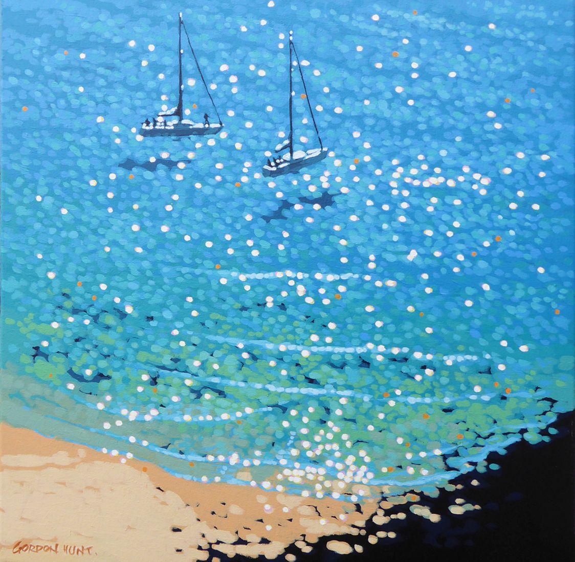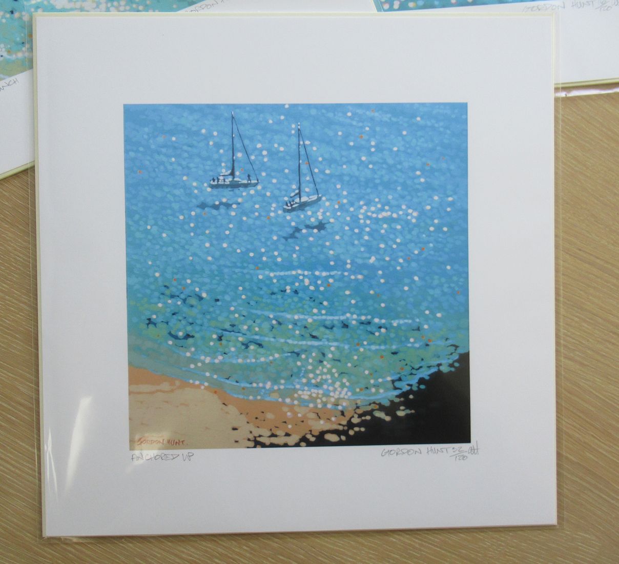 Gordon Hunt Anchored Up Limited Edition print Giclee Print Limited edition of 120 Images Size: H 20cm x W 20cm Sheet Size: H30cm x W 30cm x D 0.1cm Other sizes available from the same limited edition of prints Sold Unframed Turquoise Bay is a limited edition sailing print by Gordon Hunt. The impressionist style and bright turquoise