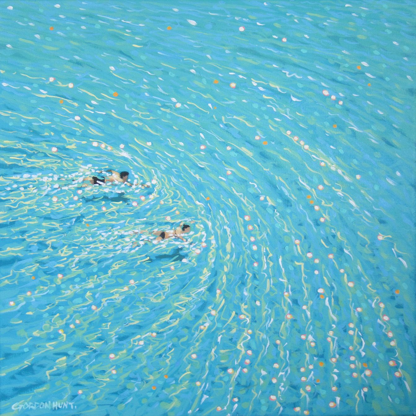 Gordon Hunt Into the Blue II Original Seascape Painting Oil Paint on Canvas Canvas Size: H 50cm x W 50cm x D 4cm Sold Unframed The turquoise waters of Cornwall are a continual source of inspiration, trying to capture the translucent colour and bright sparkle of the water is a challenge. With these studies I keep