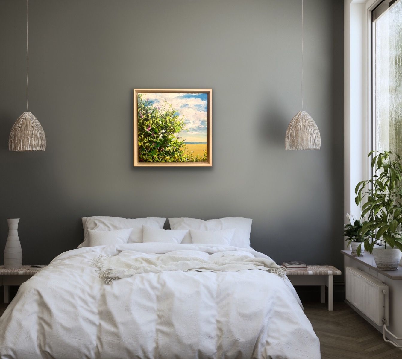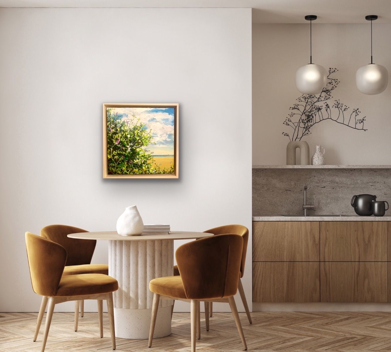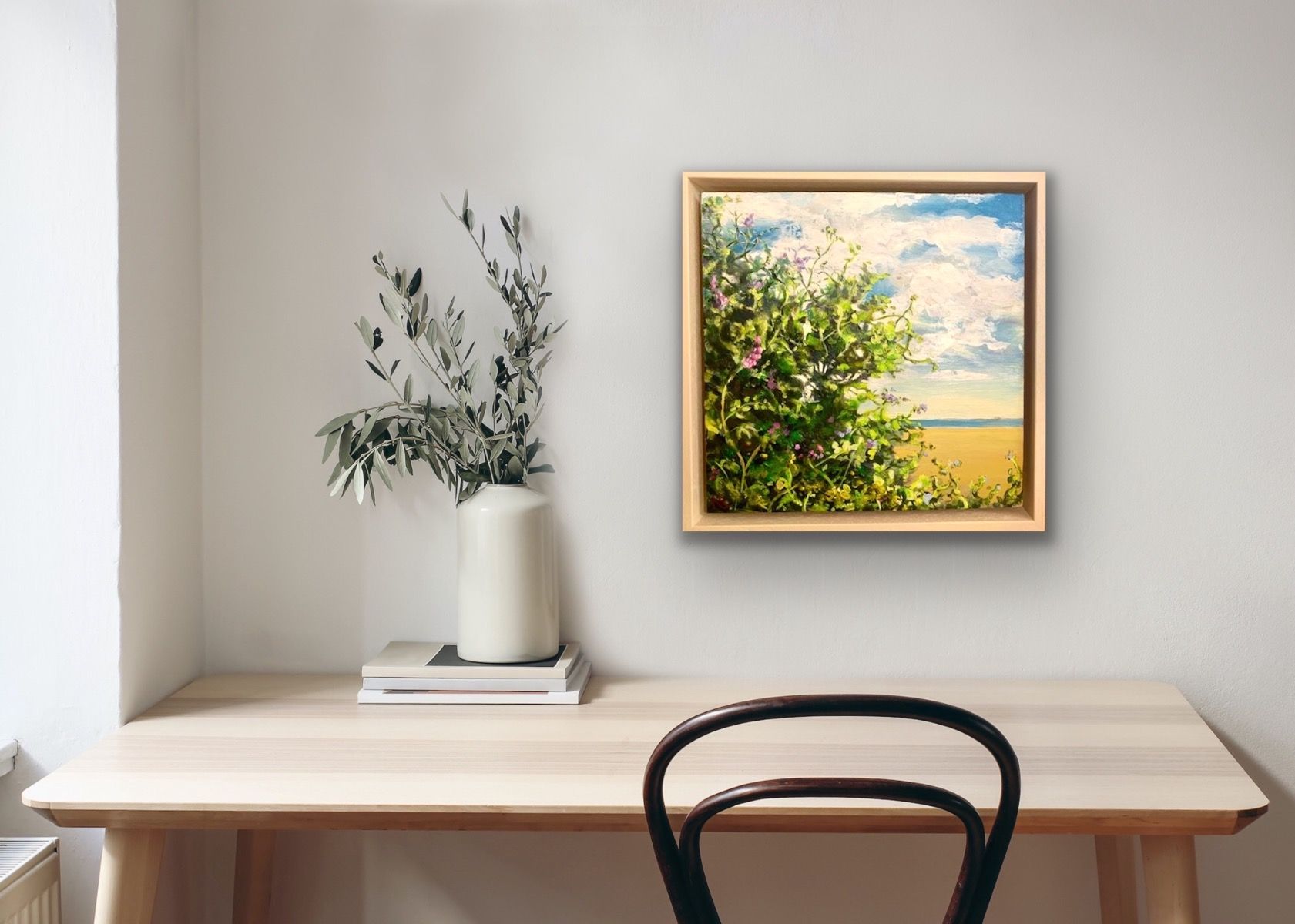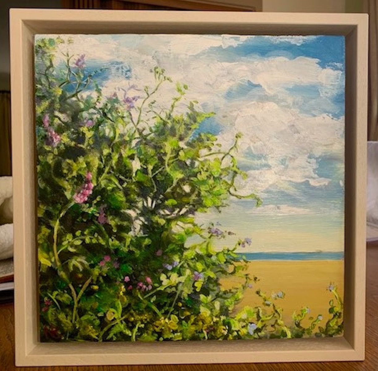 On a wild, windy afternoon along the coastal walk I was amazed by the light through the hedgerow and how the flora dazzled like jewels against the deserted beach. The sea was right out and the clouds were racing across the sky - so I sat in the shelter of