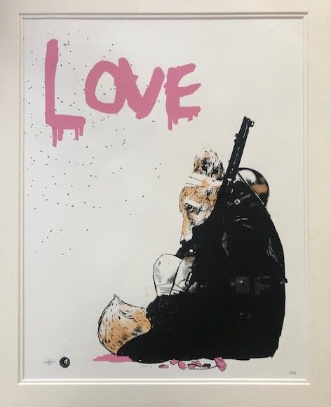 Harry Bunce Love Wars Series, Frontline Limited Edition Hand Pulled Silkscreen Image Size: H 63cm x W 49cm x D 0.1cm Mounted Size: H 73cm x W 59cm x 0.5cm Sold Unframed Love Wars Series, Frontline is a limited edition silkscreen print by Harry Bunce. Each print is unique. Bunce has shot at each print with a Bore