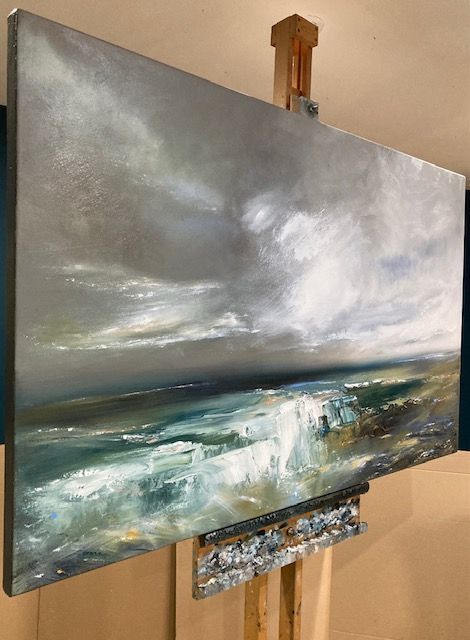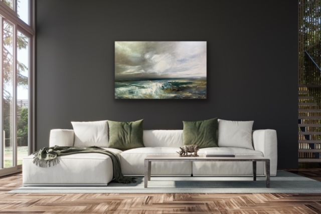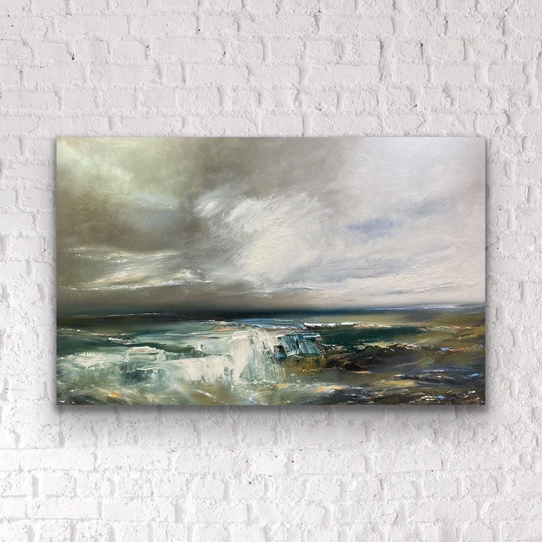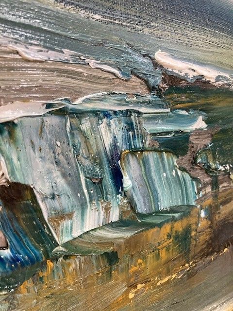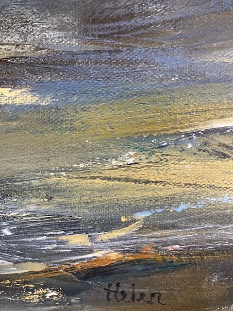 “Ever Changing Day” is an original seascape painting by Helen Howells. It was inspired by the emotional responses and memories of walks, taken along the Welsh coastline. It is not of any specific place, but is a combination of many, that have calmed my mind, and awakened my soul. ADDITIONAL INFROMATION: Oil