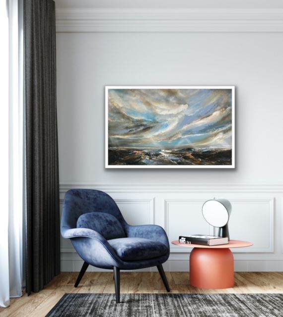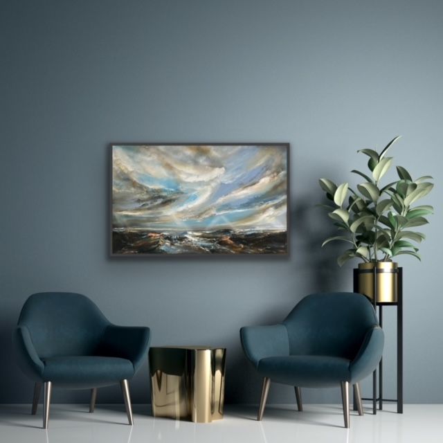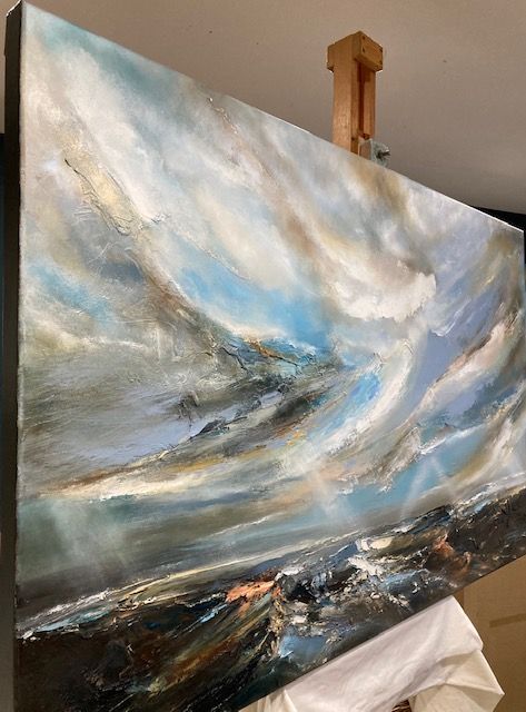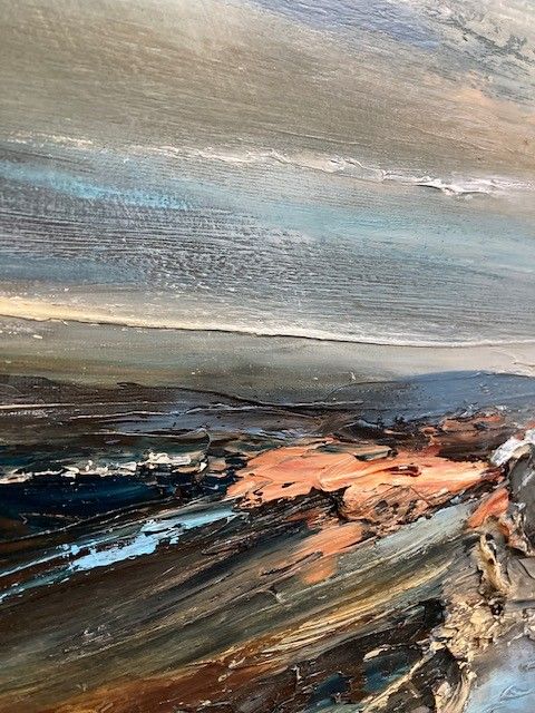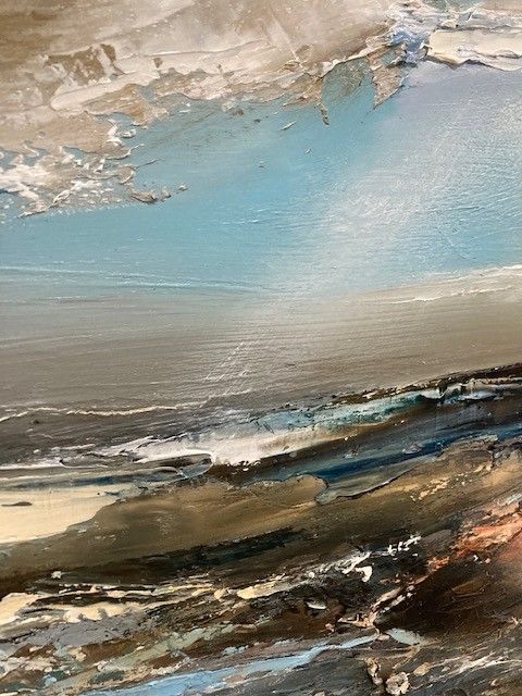 Half Tide is an original seascape by Helen Howells. It was inspired by the emotional responses, and memories of walks along the coastline of South Wales. The artist has endeavoured to capture the ever changing relationship of the coastline and the sea. Helen Howells is an artist living and working