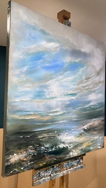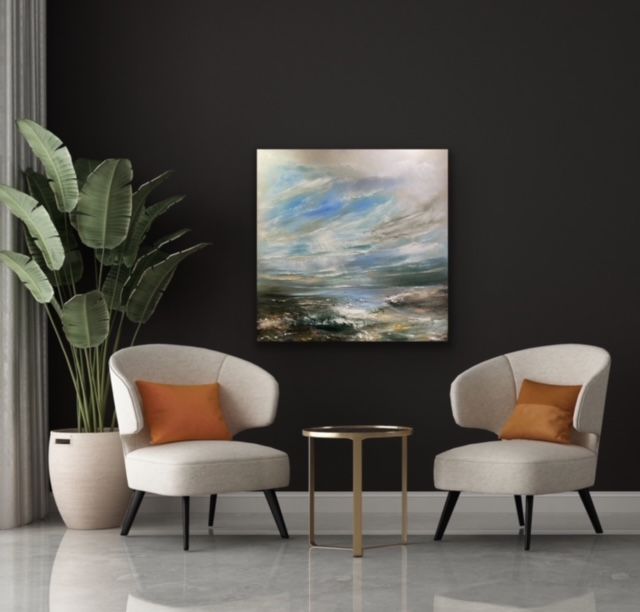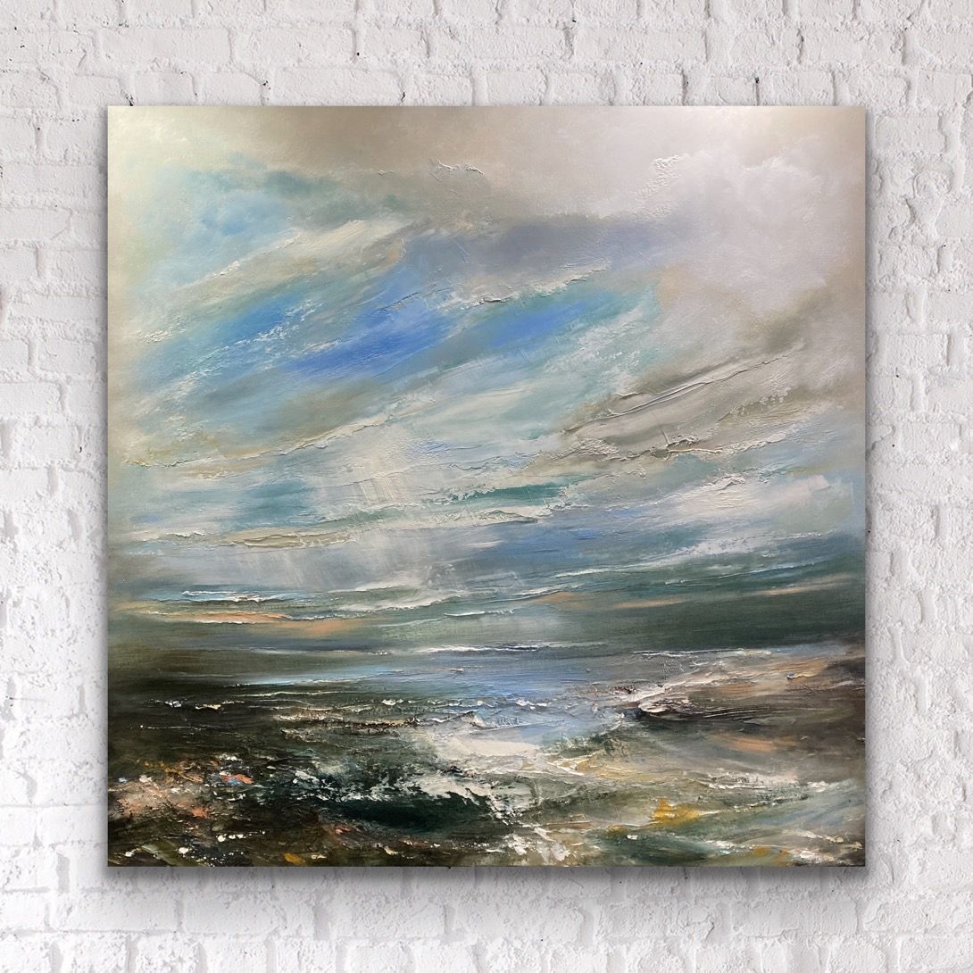 “Hidden Shores” is an original seascape painting by Helen Howells. It was inspired by the emotional responses and memories of walks, taken along the Welsh coastline. It is not of any specific place, but is a combination of many, that have calmed my mind, and awakened my soul. Helen Howells