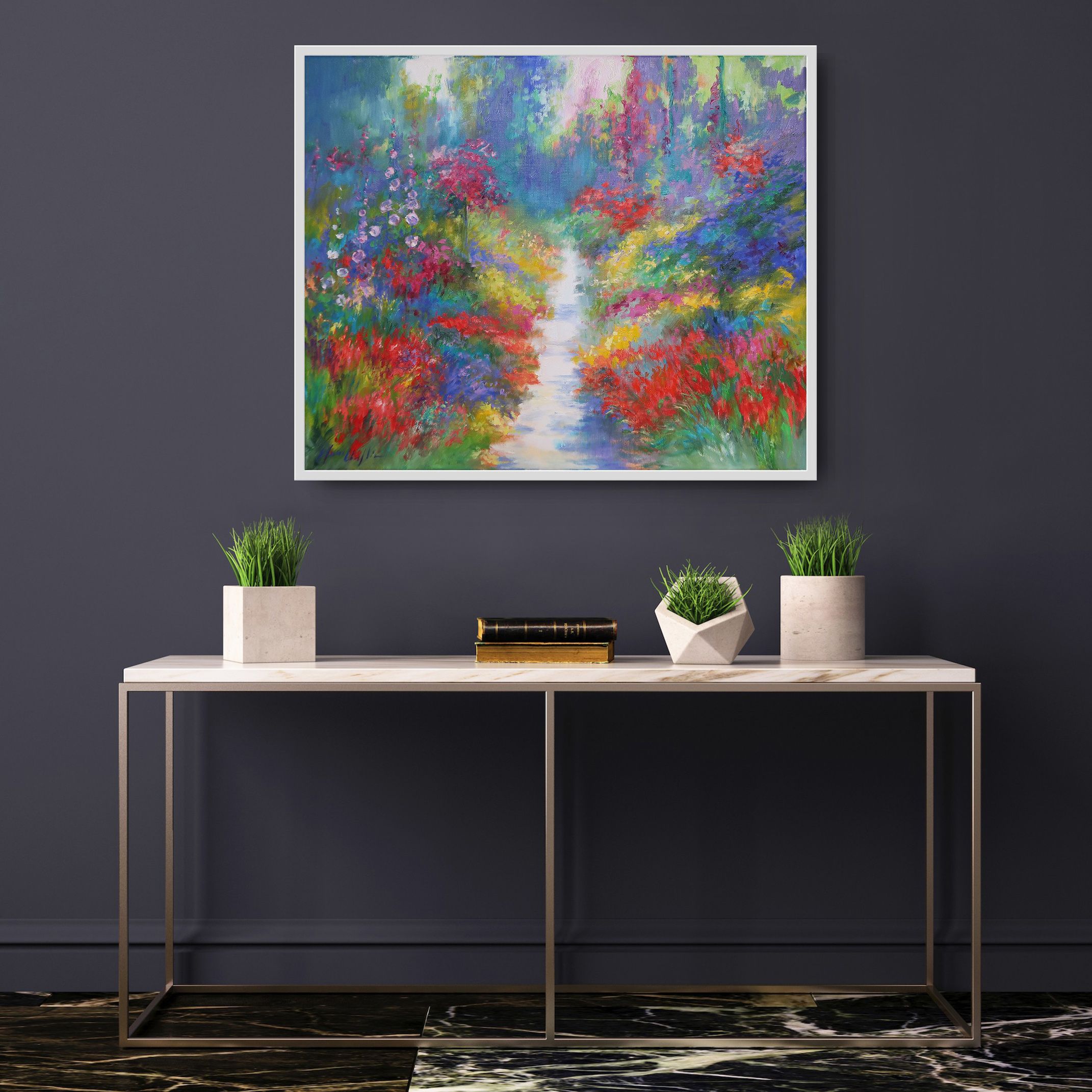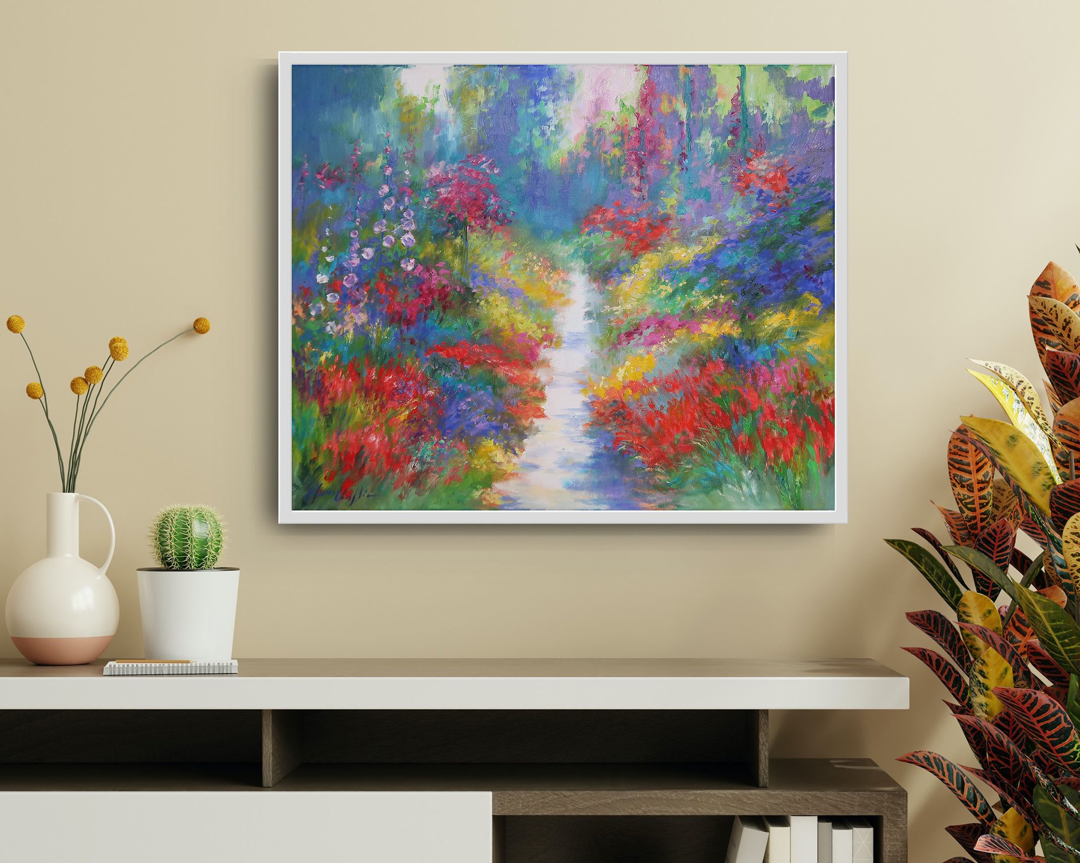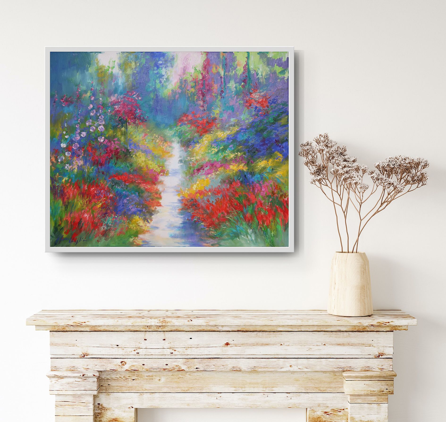 Hollyhocks season at Monet’s Garden in Giverny This is one of Mary Chaplin favourite gardens that she visits regularly, always different flowers to see. A constant changing tapestry of colour, movement and scent, a wonderful landscape. She specially loves the paths that seem to bustle with flowers, insects and perfume.