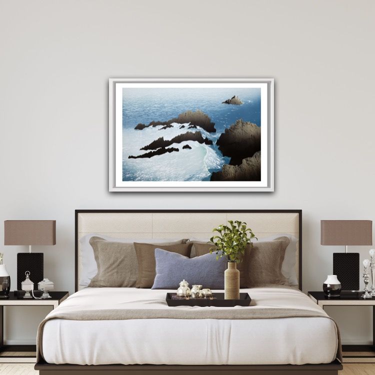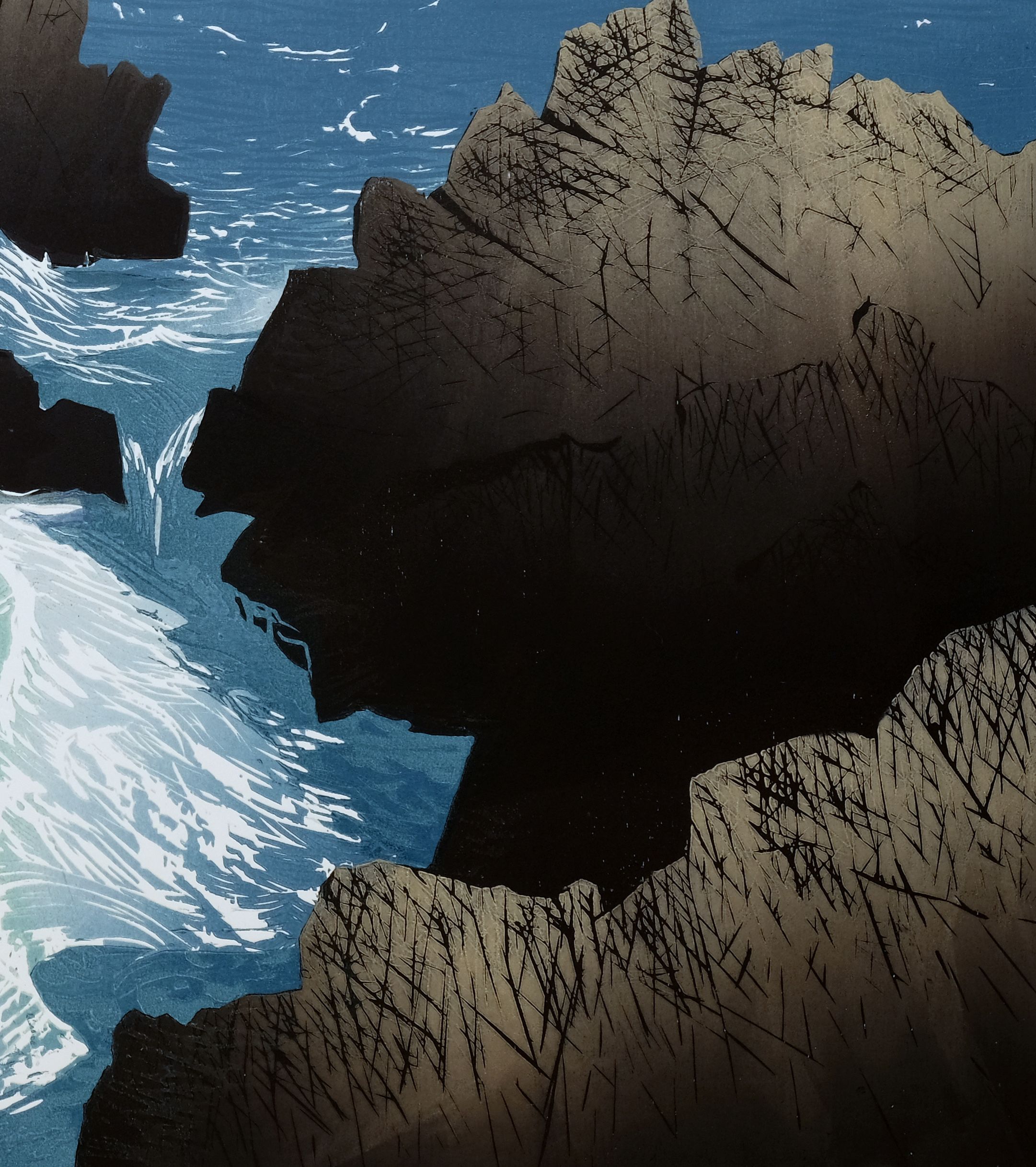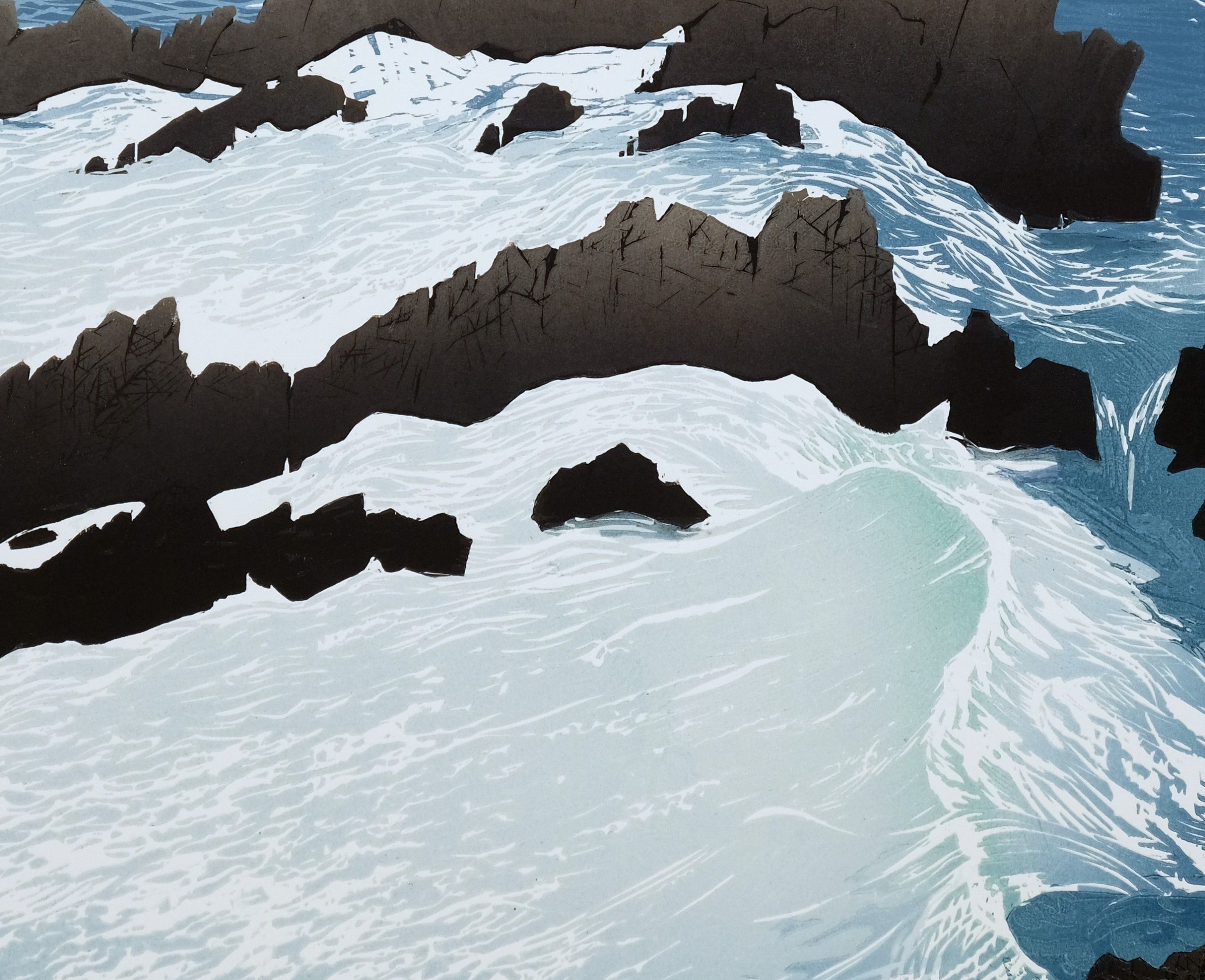 Ian Phillips Catching the Light Limited Edition Linocut Print on Paper Edition of 12 Image Size: H 83cm x W 122cm x D 0.01cm Sold Unframed Free Shipping Please note that in situ images are purely an indication of how a piece may look. Catching the Light is a limited edition seascape print by Ian Phillips. The light