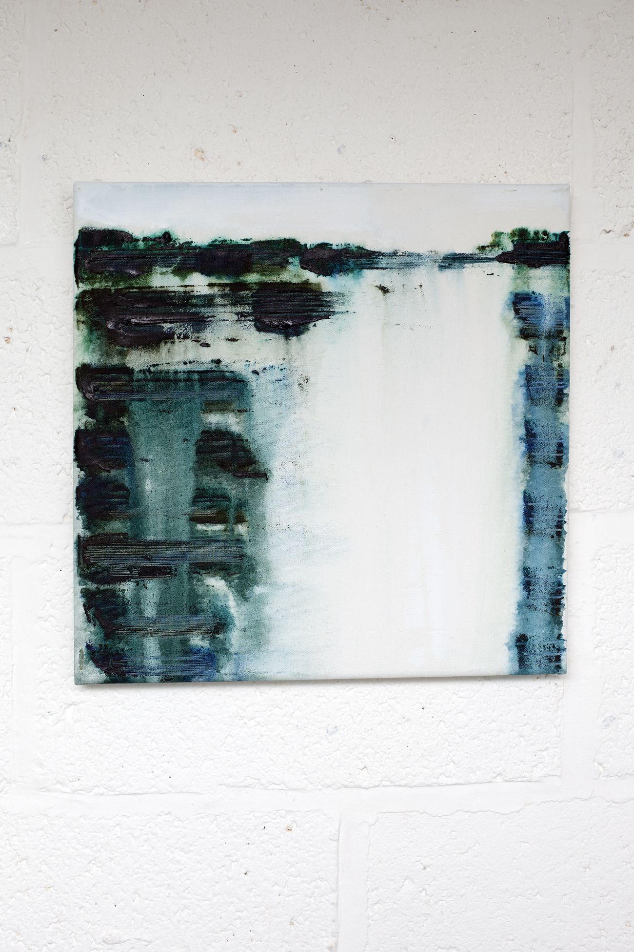Original contemporary abstract landscape oil painting from Gina Parr's series Spatial history. Spatial history, is a series of autobiographical landscapes, with emotional, personal connection to significant place identity and the passage of time for the Artist. Familiar loved places, loved ones, events and the passage of time, leaves an atmosphere of