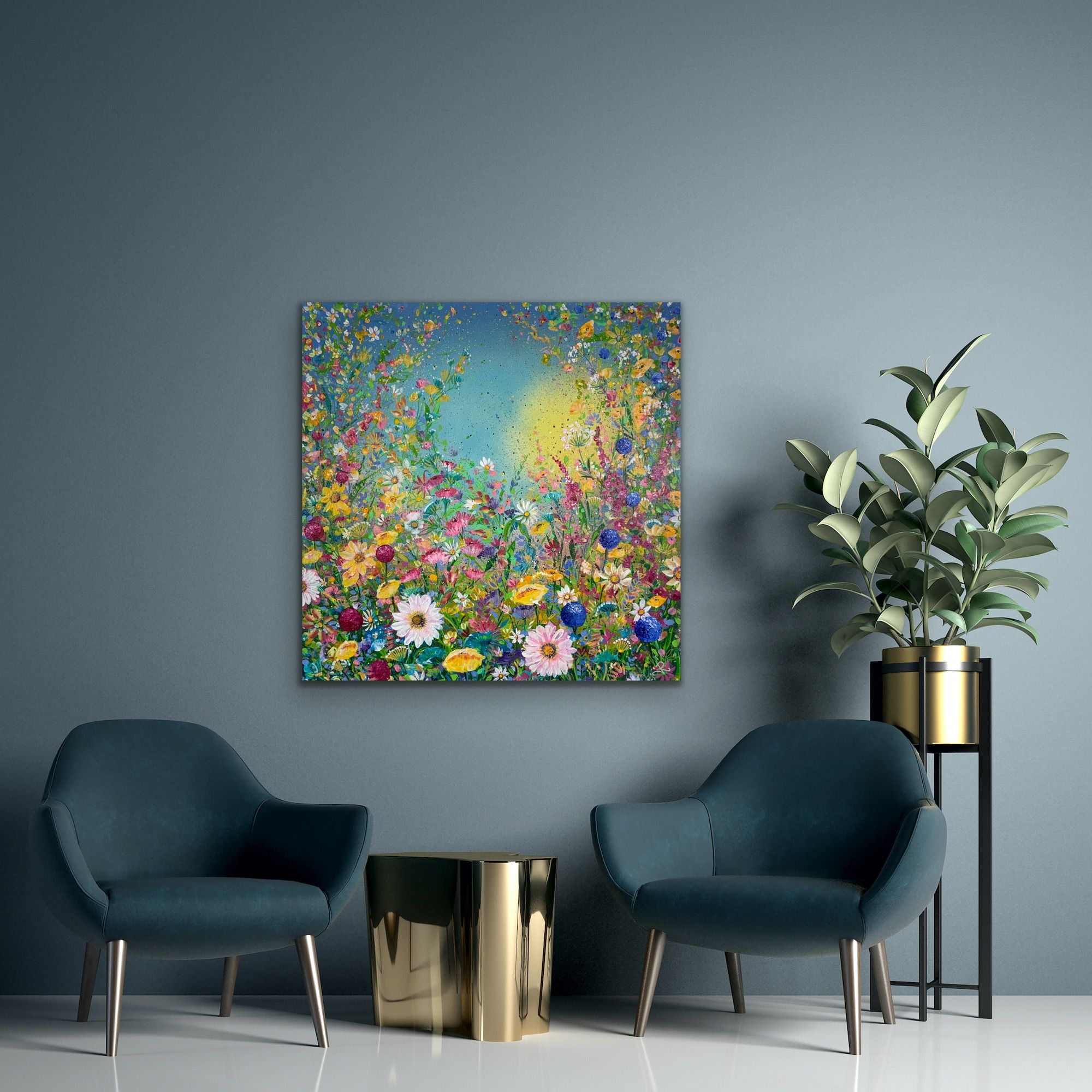A vast array of Spring flowers, gloriously colourful and joyful. Contemporary and bold. Inspired by my love of flowers and pattern. Painted using gold standard acrylics onto a top quality canvas. Sealed with acrylic varnish to seal and protect the surface.m