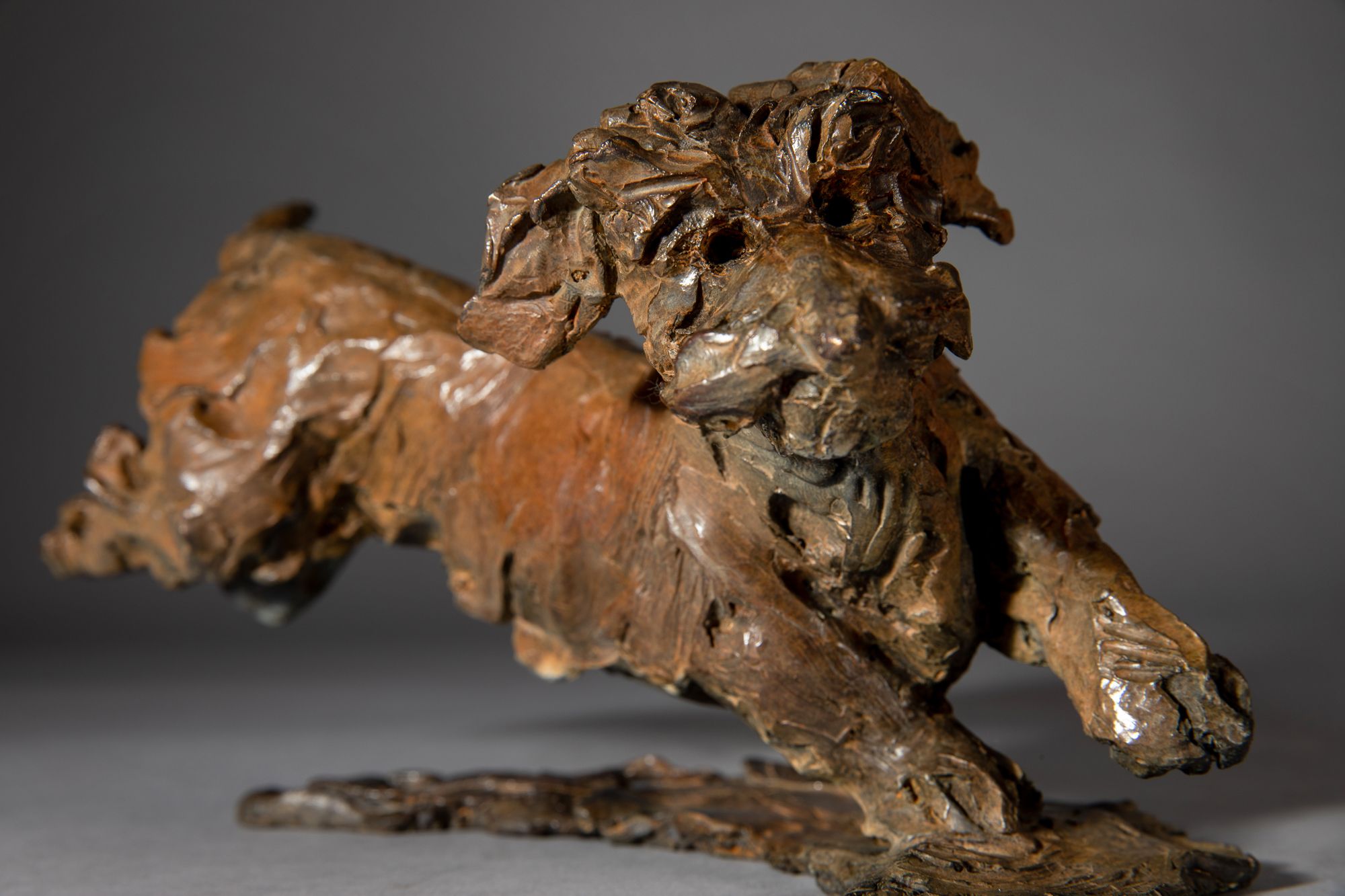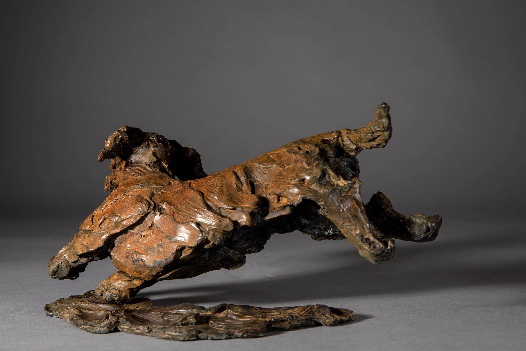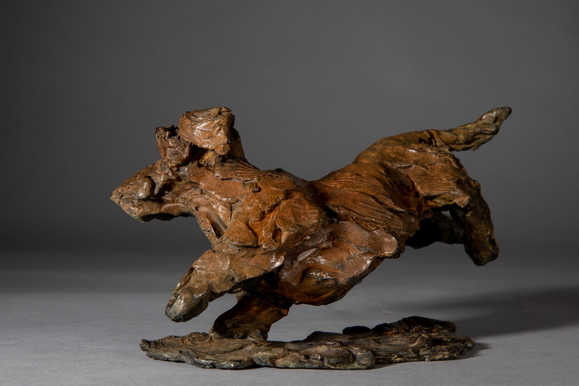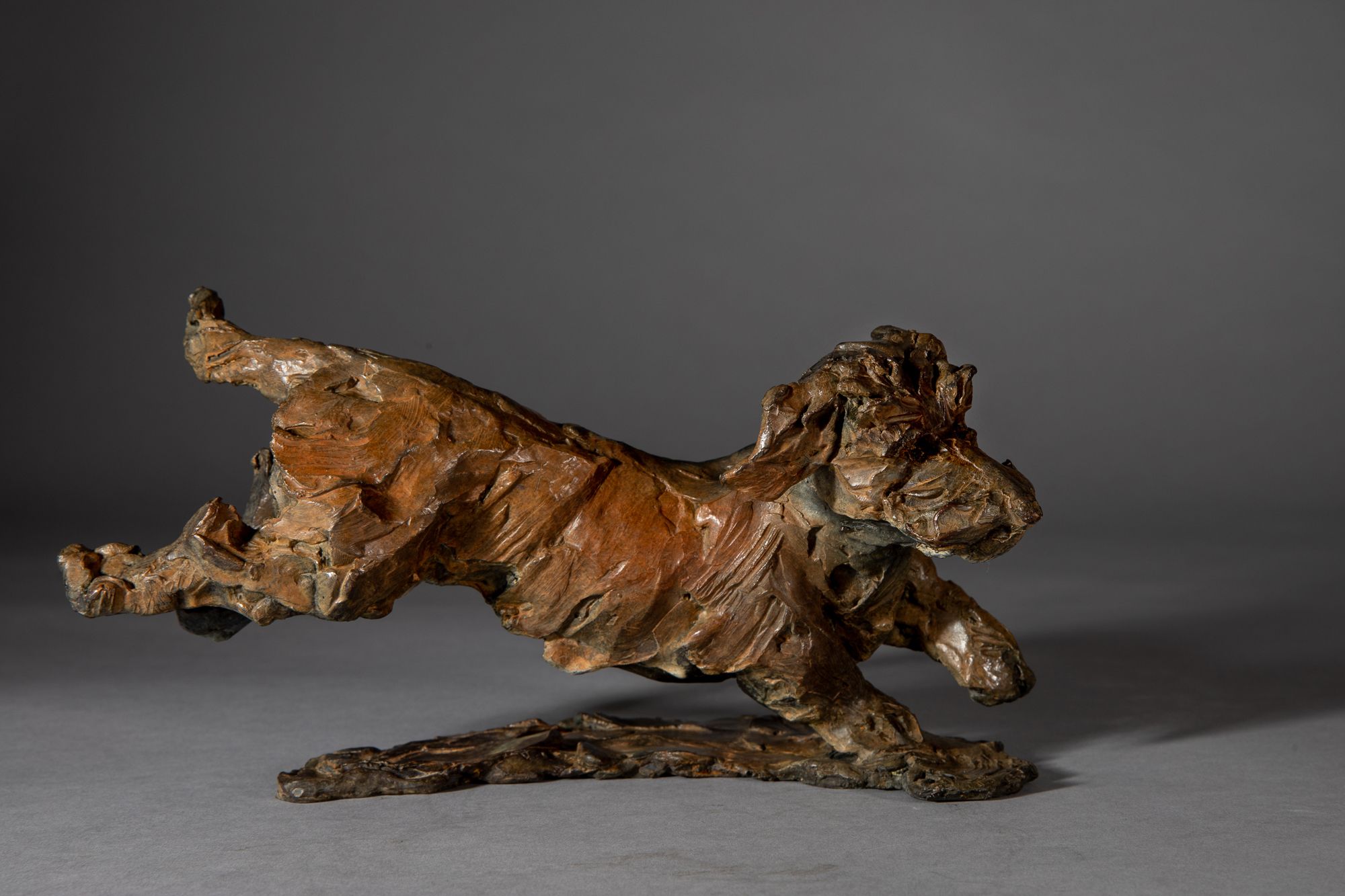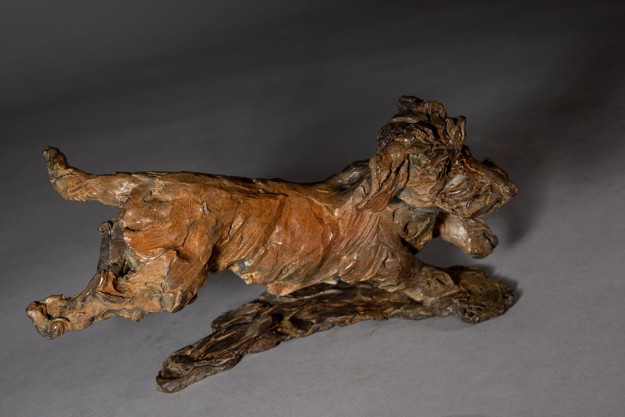 Jane Shaw Happy Miniature Wire-haired Dashchund Limited Edition Bronze Sculpture Edition of 9 Size: H 13 cm x W 6 cm x D 13 cm Please note that in situ images are purely an indication of how a piece may look. Happy is a limited edition bronze of a Miniature wire-haired Dashchund by Jane Shaw. After completing a
