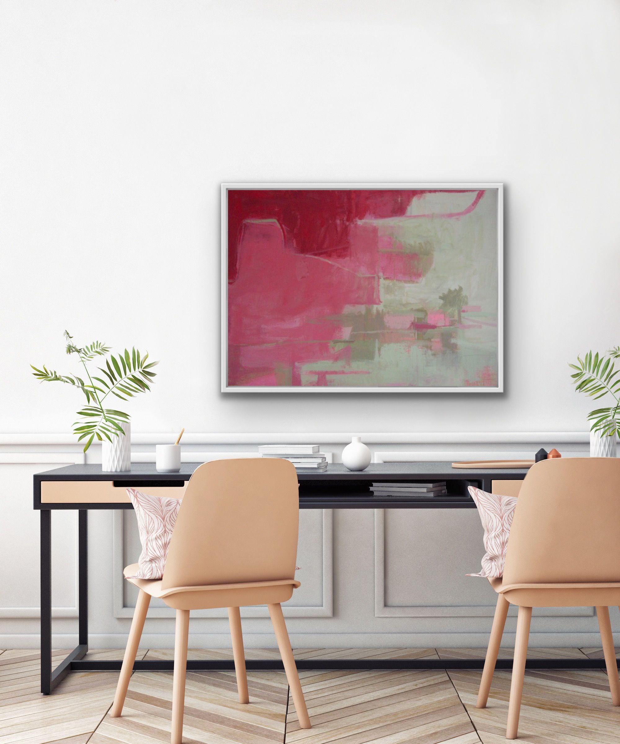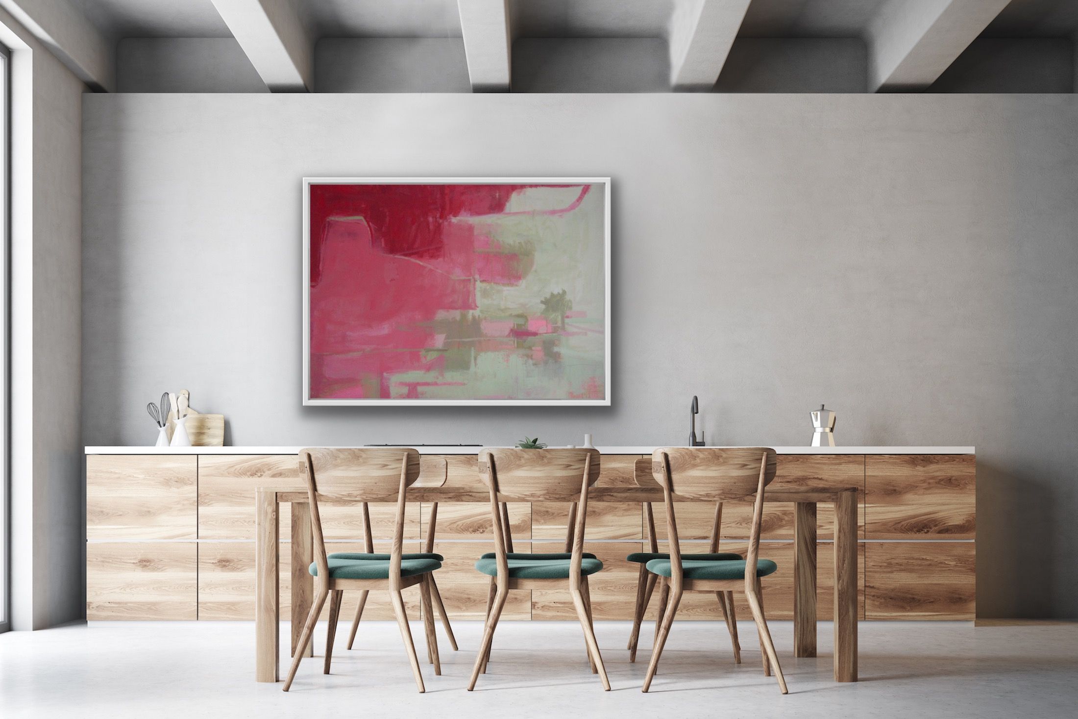 Janet Keith Ruby Nights Original Semi Abstract Landscape Painting Acrylic on Board Image Size: H76 cm x W101 cm x D 0.30 cm Sold Unframed Free Shipping Please note that in situ images are purely an indication of how a piece may look. Ruby Night is an original semi abstract landscape painting by Janet Keith. The painting