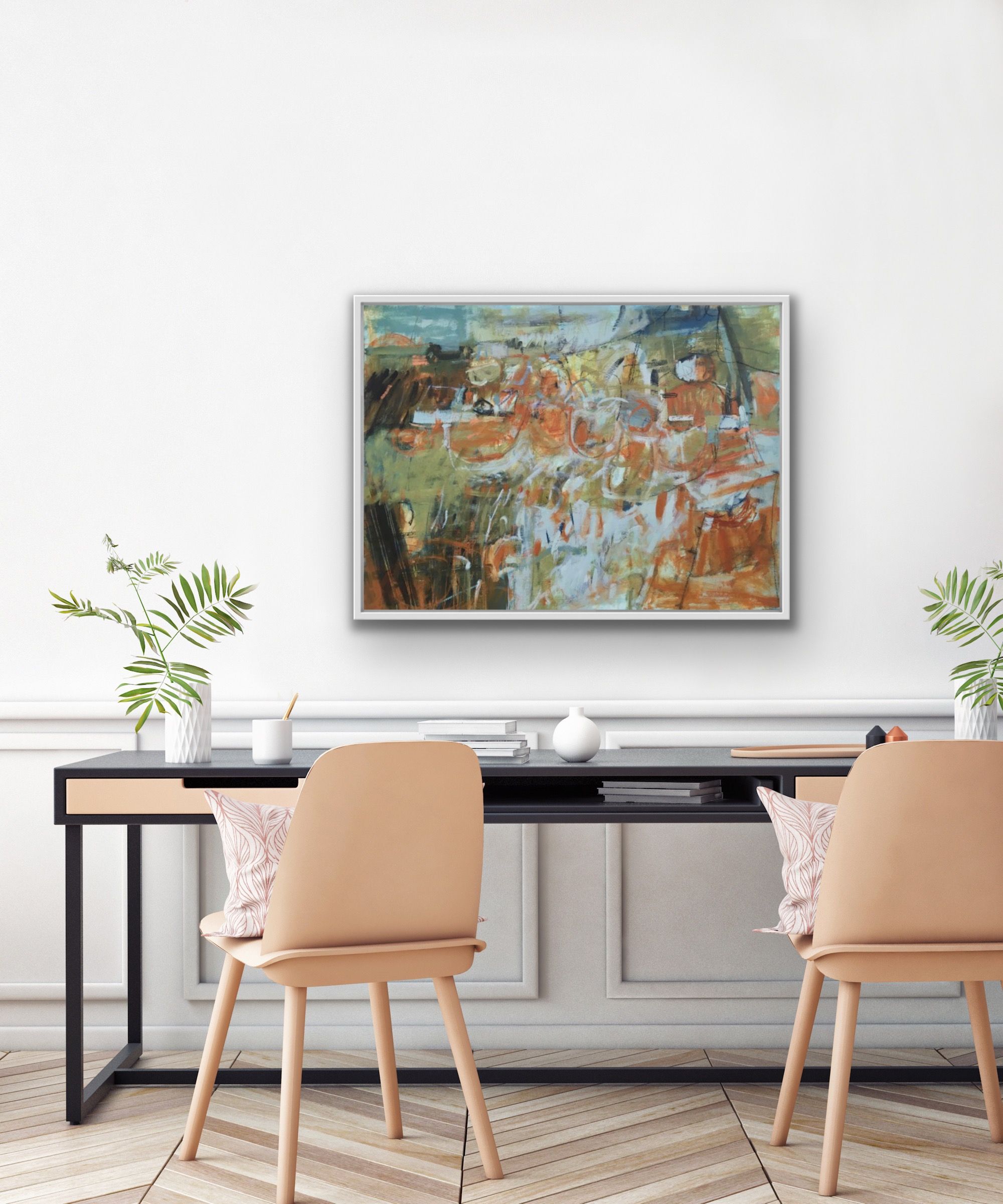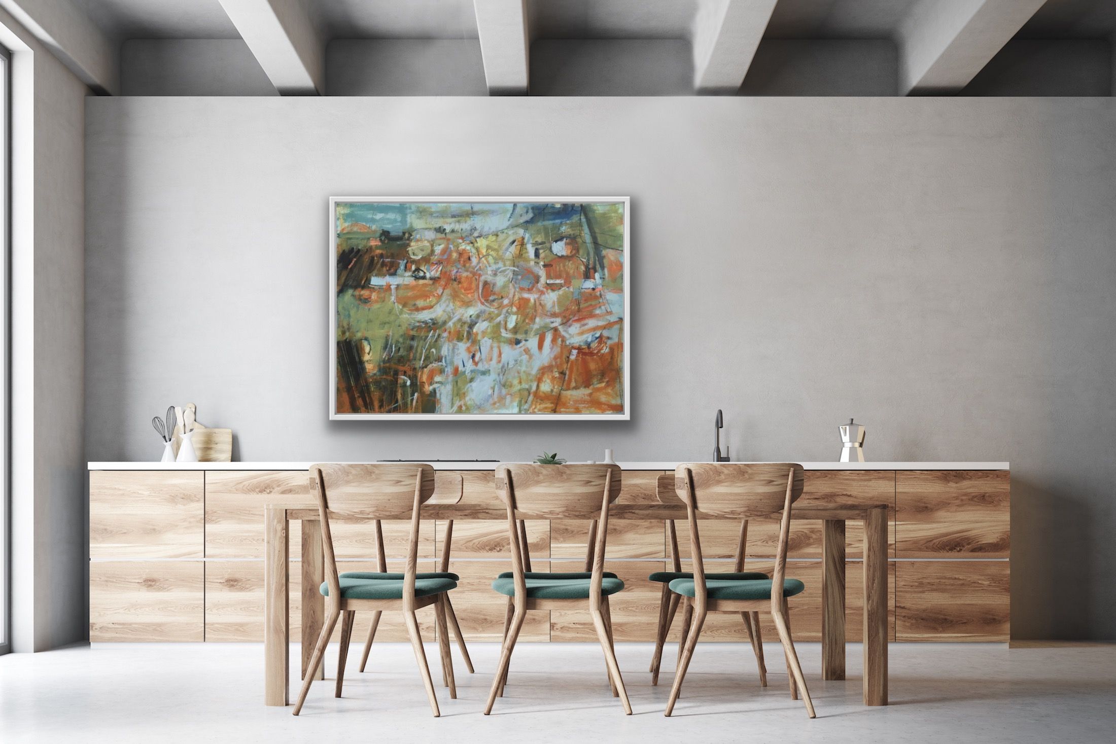 Janet Keith The Birds are Singing Again Original Abstract Expressionist Landscape Painting Acrylic on board. Image Size: H76 cm x W101 cm x D 0.30 cm Sold Unframed Free Shipping Please note that in situ images are purely an indication of how a piece may look. The Birds are Singing Again is an original abstract and expressive landscape