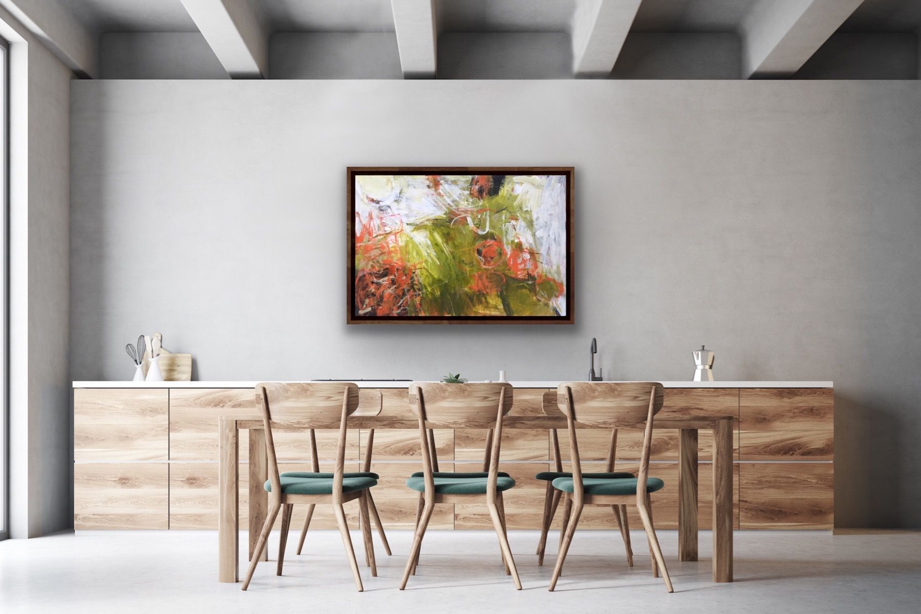 Janet Keith Warm Garden Original expressionist abstract painting Acrylic paint on board Image Size: H51 cm x W76 cm x D 0.30 cm Sold Unframed Free Shipping Please note that in situ images are purely an indication of how a piece may look. Warm Garden is an original abstract and expressionist painting by Janet Keith. The