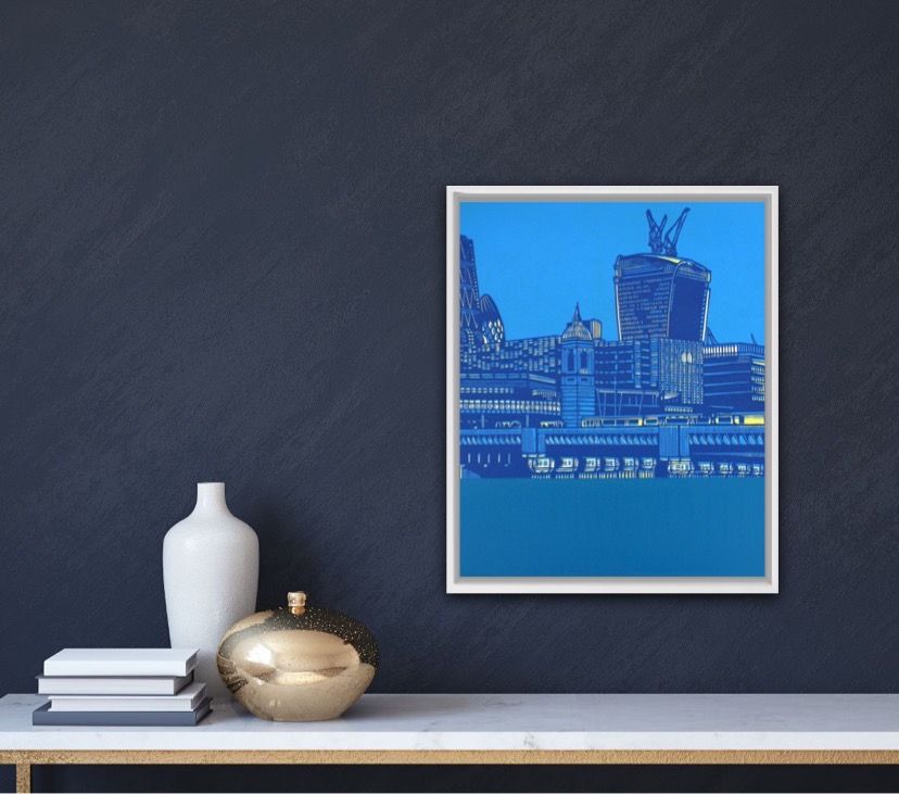 Cannon Street return is an original limited edition Reduction linocut by Jennifer Jokhoo a Surrey Hills based Printmaker/Painter. This London