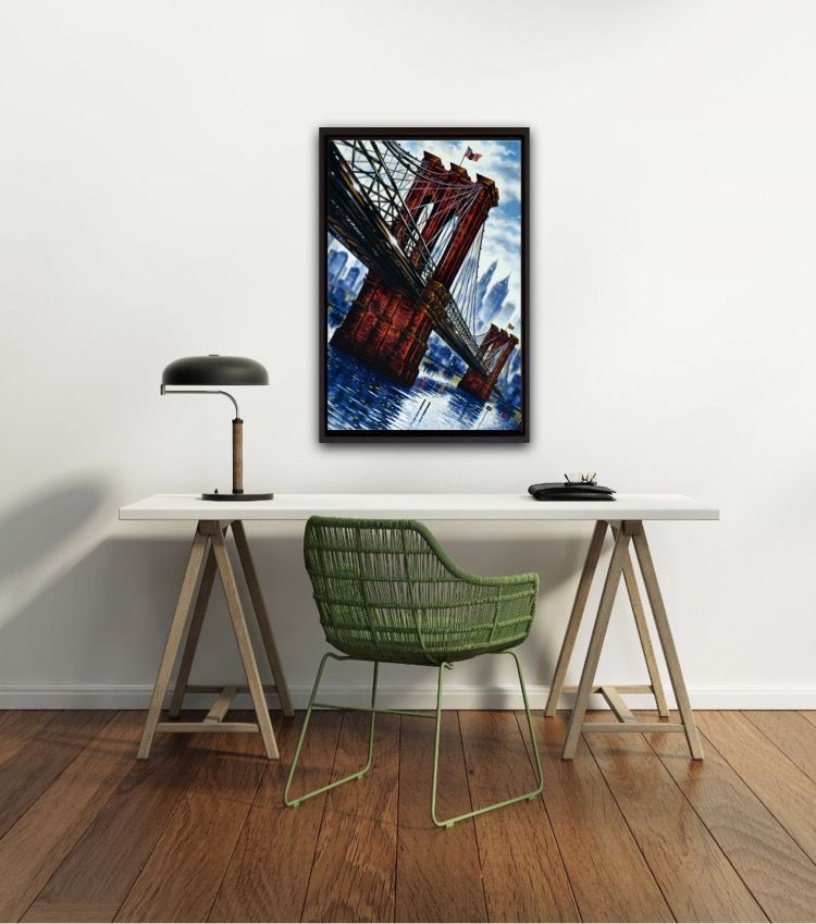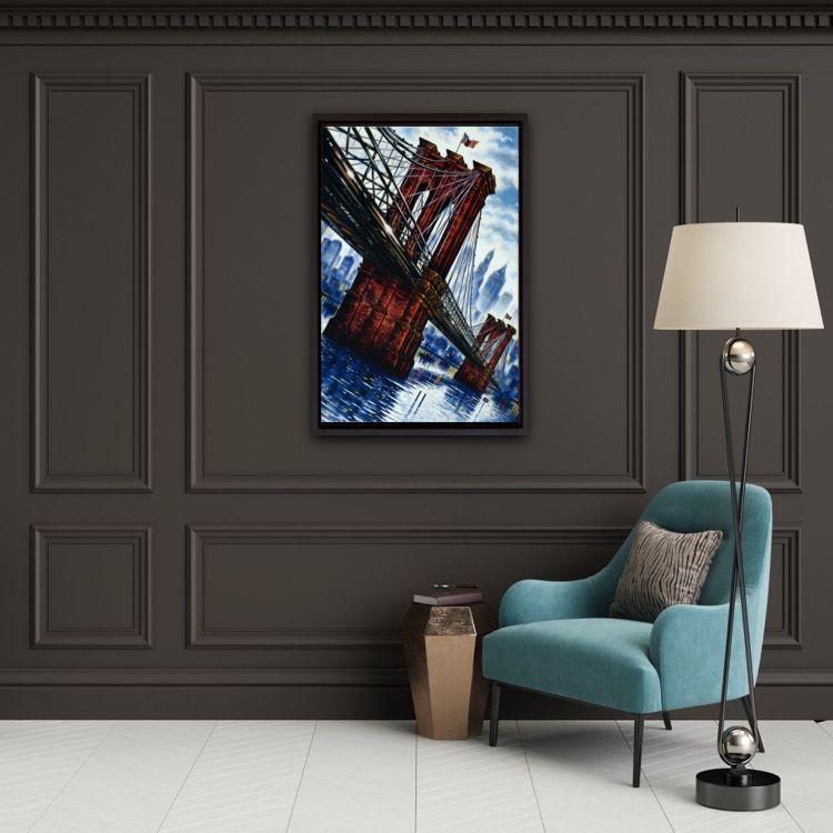 John Duffin Brooklyn Bridge Original Cityscape Painting Oil Paint on Canvas Canvas Size: H 76cm x W 56cm x D 3cm Framed Size: H 80cm x W 60cm x D 4cm Sold Framed in a Black Float Frame Please note that in situ images are purely an indication of how a piece may look. Brooklyn Bridge is a