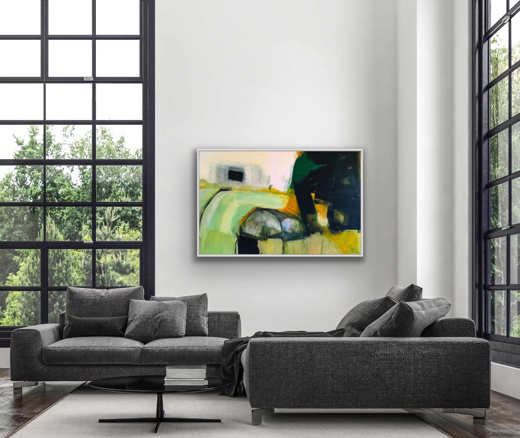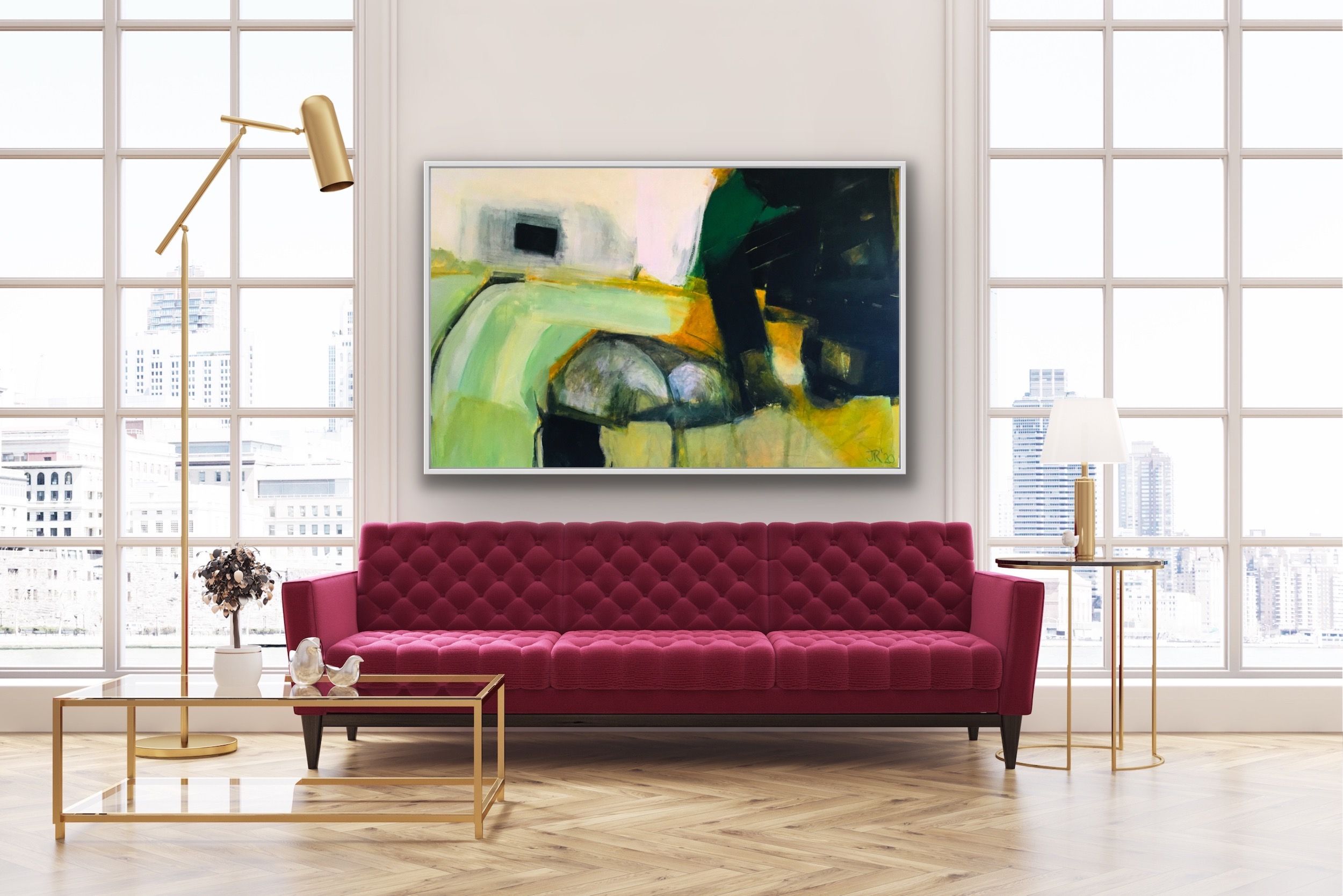 Jon Rowland The Ripe Landscape Original Painting Acrylic and Oil on Canvas Sold Unframed (Please note that in situ images are purely an indication of how a piece may look). Contemporary abstract expressionist landscape This is a major work that has used as its basis sketches of the landscape of south Devon, that were