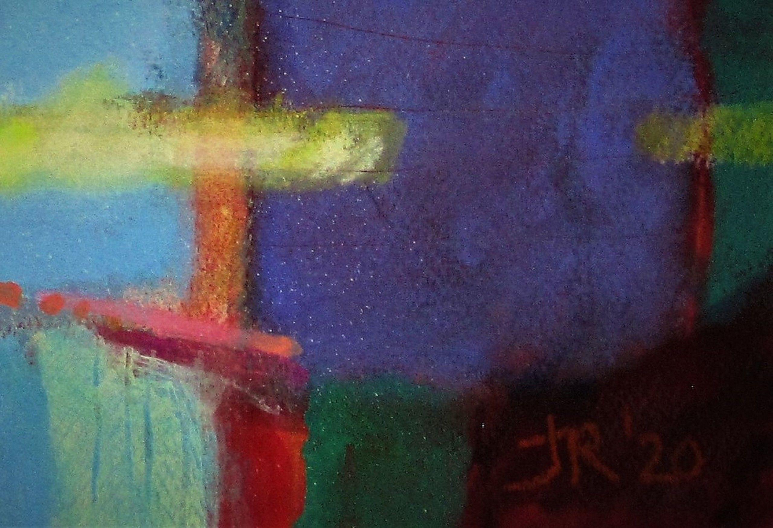 Through the Spring Window' - 2 is one of a series of paintings by Jon Rowland that build on the 'Tree of Love series' but change the colour palette. The bright colours and abstract nature make this a statement piece. This palette echoes the spring colours of woodland areas, and