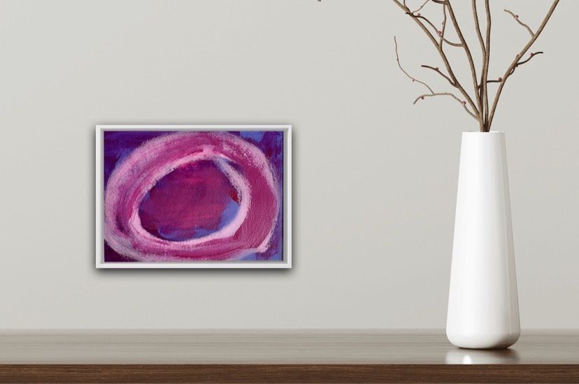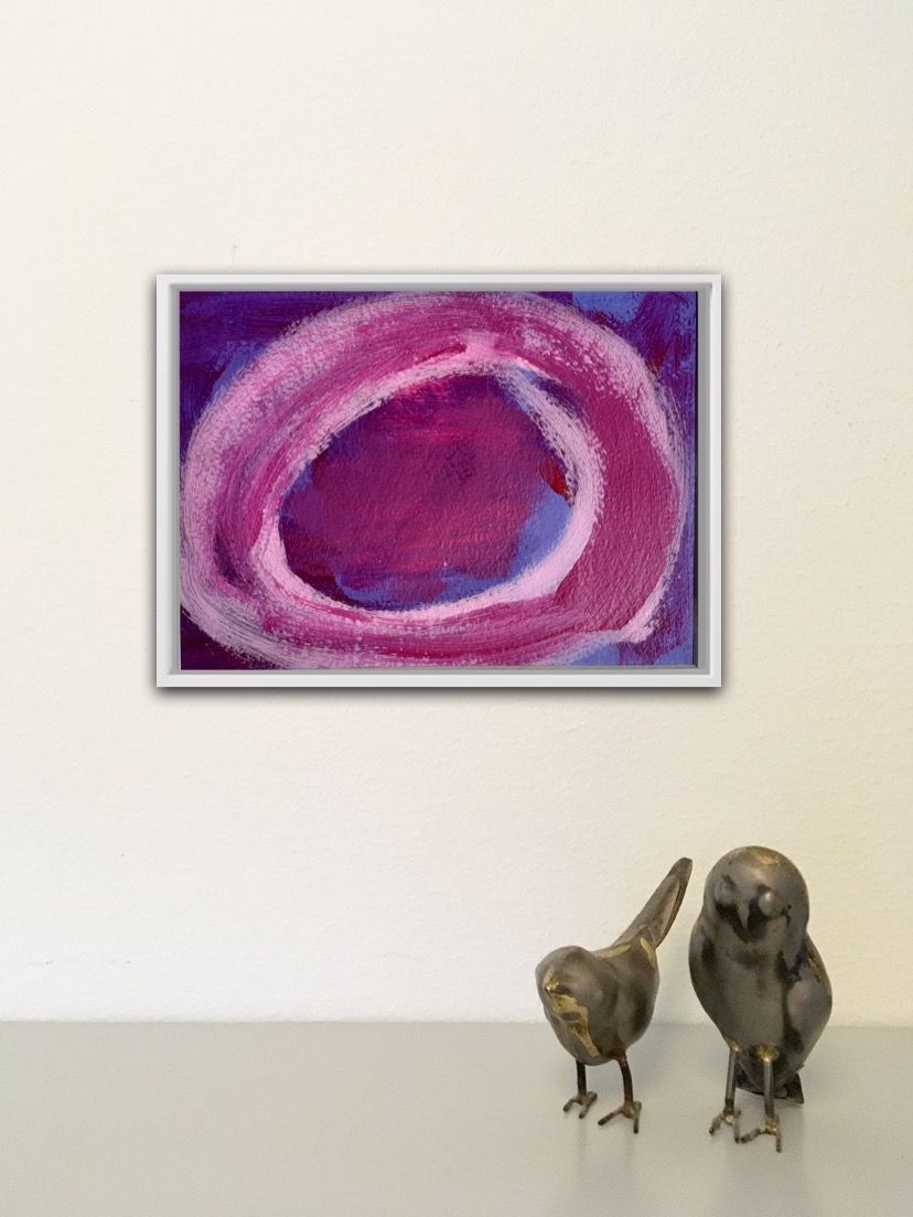 Julia Craig Rosa Acrylic on paper 14.5cm x 19.5cm Sold Unframed (Please note that in situ images are purely an indication of how a piece may look). Julia is an abstract artist whose love of colour is clearly apparent in her vibrant work. She works intuitively - in an improvisatory and spontaneous way, producing work which