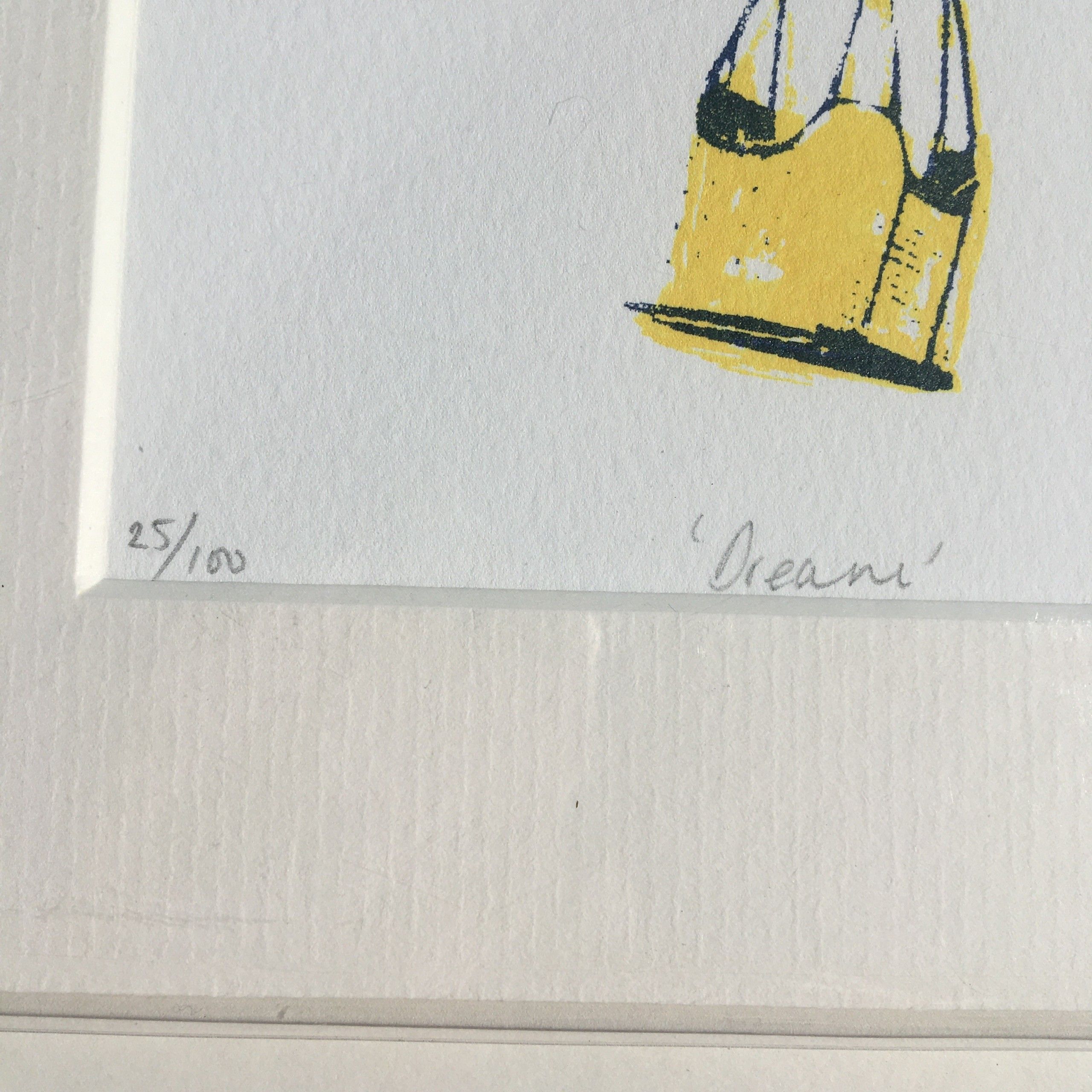 Katie Edwards Dream Limited Edition Handmade Silkscreen Print Edition of 100 Image Size: H 17.5cm x W 12cm Mounted Size: H 23cm x W 18cm x D 0.5cm Sold Unframed Please note that in situ images are purely an indication of how a piece may look. Dream is a limited edition silkscreen print by artist and illustrator, Katie Edwards.