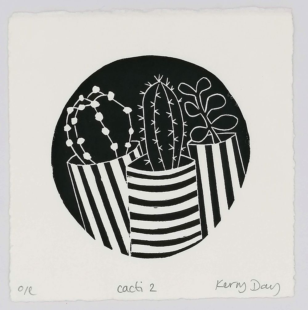 Kerry Day Cacti 2 Open Edition Linocut Print on Somerset Paper Image size: H 10cm x W 10cm Sheet Size: H 14cm x W 14cm Titled and signed by the artist Sold Unframed Please note that in situ images are purely an indication of how a piece may look. Cacti 2 is an open edition linocut print by