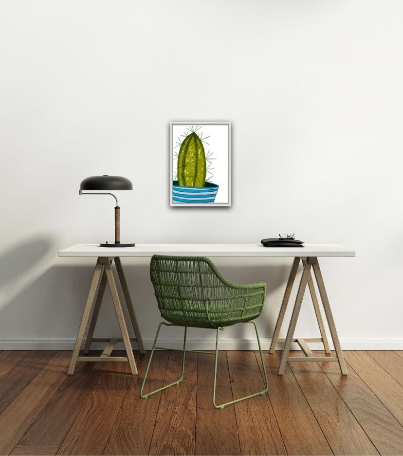 Kerry Day Still Life Art Cactus II Limited Edition Screen Print Edition of 20 Sheet Size: H 42cm x W 29cm x D 0.1cm Sold Unframed Cactus II is beautiful Spiky Still life of a one of many cacti owned by Kerry Day. It is an original varied limited edition, multi layered screen print, printed onto Somerset