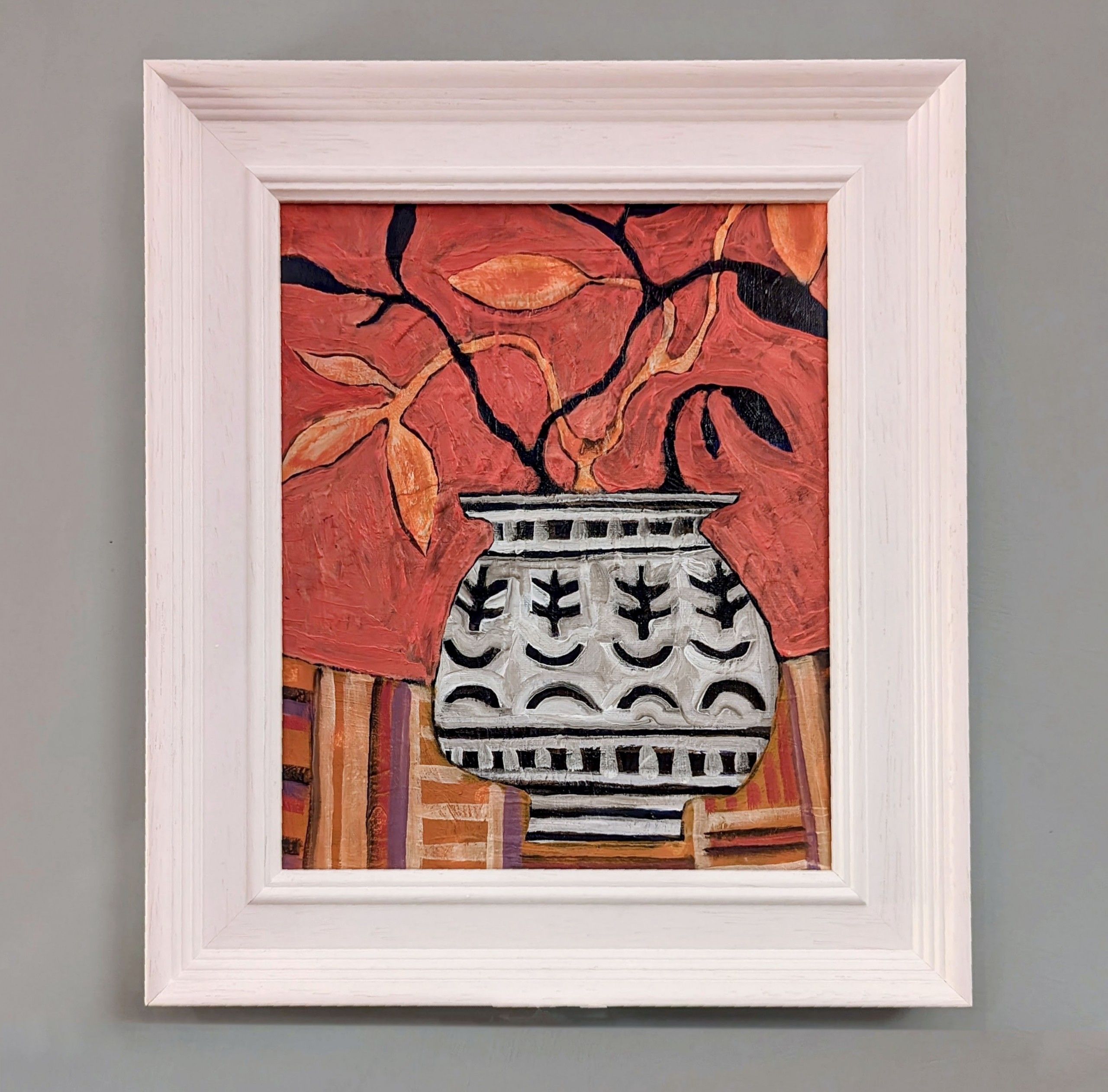 This contemporary still life features a characterful pot (Mum's favourite!) on a patchwork tablecloth. The rich textures and the colour palette of spice tones are perfectly set off by a French style white wooden frame and will add vibrance and warmth to both traditional and modern homes.