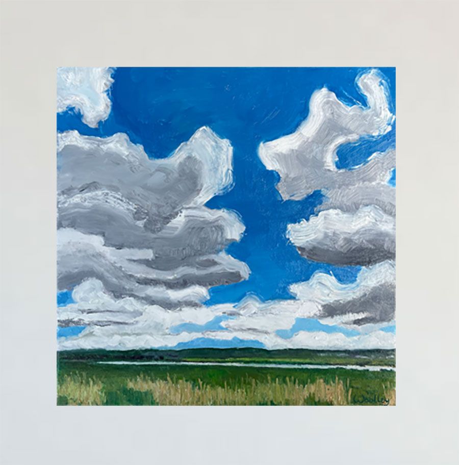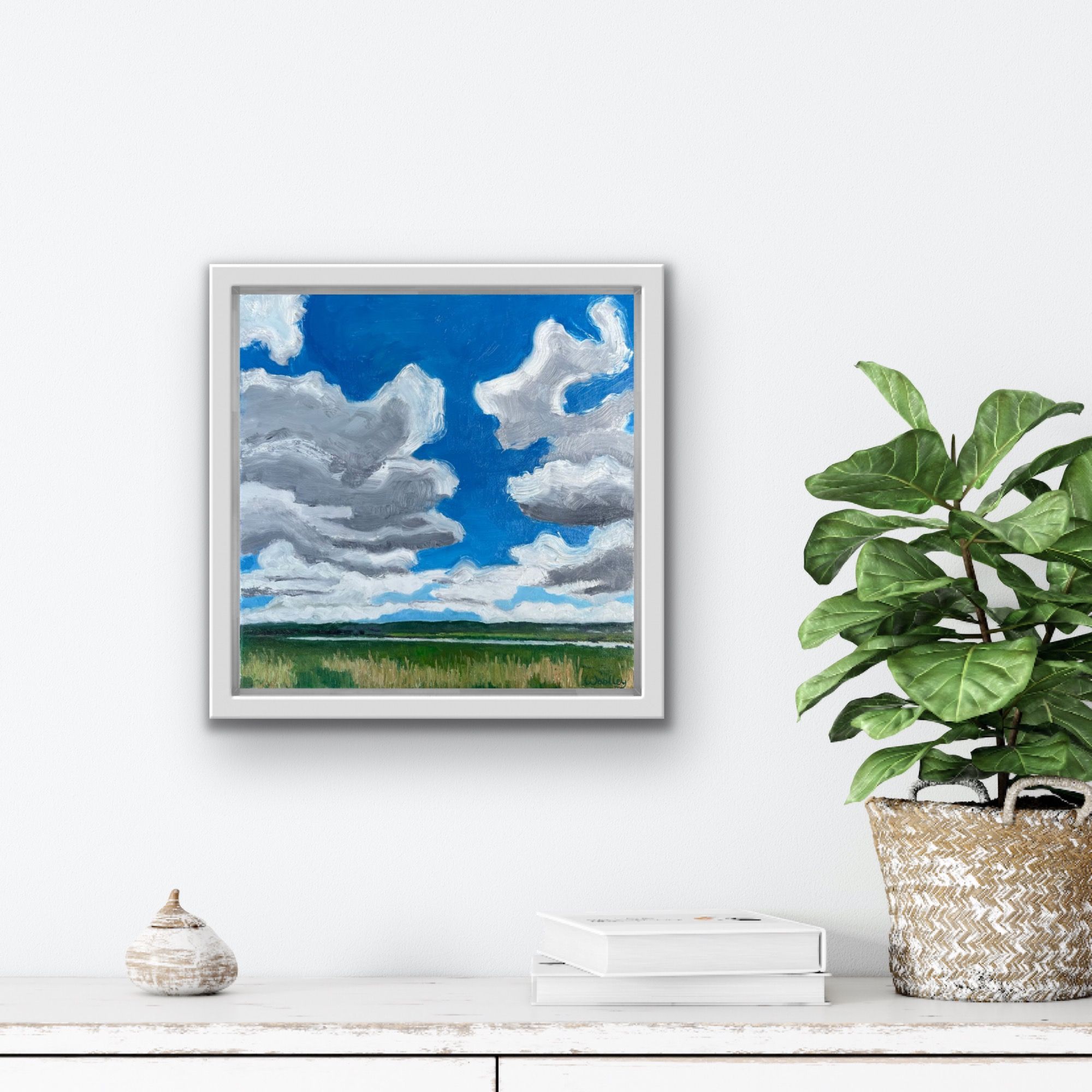 The Kingfisher Hide 5 is an original Oil Painting by Eleanor Woolley. This painting was inspired by the beautiful Gloucestershire views from the Kingfisher hide at Slimbridge Wetland Centre. A lovely sanctuary found hidden away at Slimbridge WWT, looking out onto the huge expanse of marsh and river land. Overlooking